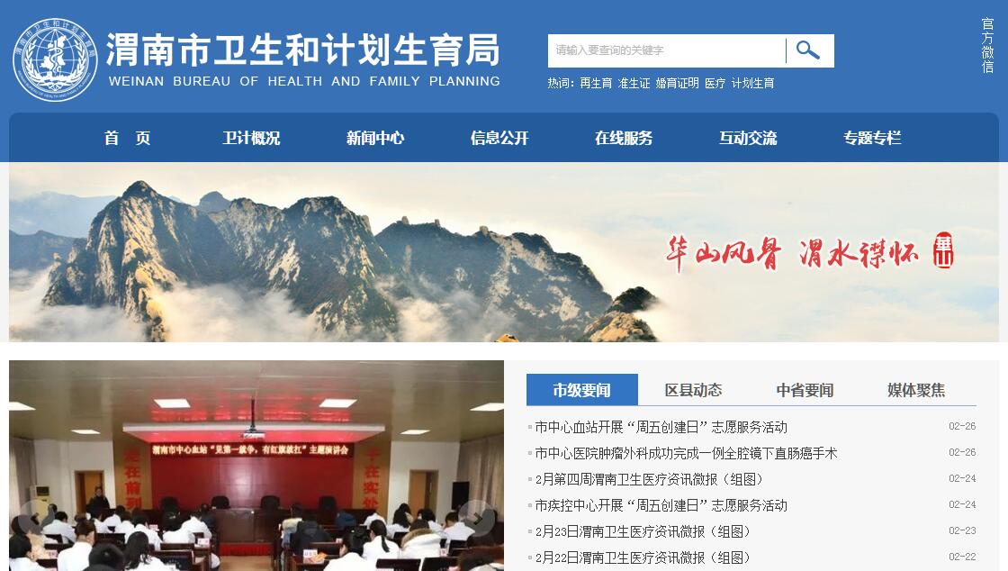 根据《中共陕西省委、陕西省人民政府关于贯彻落实<中共中央、国务院关于地方政府职能转变和机构改的意见>的实施意见》(陕字〔2014〕25号)和渭南市机构编制委员会《关于组建市卫生和计划生育局有关问题的通知》(渭编发〔2014〕2号),设立渭南市卫生和计划生育局,为市政府工作部门。其主要职责:1. 贯彻执行中、省、市关于卫生和计划生育工作的法律、法规和方针、政策。负责起草卫生和计划生育、中医药事业发展的规范性文件。负责协调推进全市医药卫生体制改革和医疗保障,统筹规划全市卫生和计划生育服务资源配置,指导全市卫生和计划生育规划的编制和实施。2. 负责制定全市疾病预防控制规划、免疫规划、严重危害人民健康的公共卫生问题的干预措施并组织落实,根据国家检疫传染病和监测传染病目录,制定全市卫生应急和紧急医学救援预案、突发公共卫生事件监测和风险评估计划,组织和指导全市突发公共卫生事件预防控制和各类突发公共事件的医疗卫生救援,发布法定报告传染病疫情信息、突发公共卫生事件应急处置信息。3. 负责制定职责范围内的职业卫生、放射卫生、环境卫生、学校卫生、公共场所卫生、饮用水卫生管理规范,组织开展相关监测、调查、评估和监督,负责传染病防治监督。组织实施食品安全风险监测、评估,为食源性疾病及与食品安全事故有关流行病学调查提供技术支持。4. 负责组织拟订并实施基层卫生和计划生育服务、妇幼卫生发展规划,指导全市基层卫生和计划生育、妇幼卫生服务体系建设,推进基本公共卫生和计划生育服务均等化,完善基层运行新机制和乡村医生管理制度。5. 负责制定全市医疗机构和医疗服务全行业管理办法并监督实施。组织实施医疗机构及其医疗服务、医疗技术、医疗质量、医疗安全以及采供血机构管理规范,会同有关部门贯彻执行国家卫生专业技术人员准入、资格标准,实施卫生专业技术人员执业规则和服务规范,建立医疗服务评价和监督管理体系。6. 负责组织推进公立医院改革,建立公益性为导向的绩效考核和评价运行机制,建设和谐医患关系。7. 贯彻落实国家药物政策和国家基本药物制度,执行国家药品法典和国家基本药物目录。8. 贯彻落实《中华人民共和国人口与计划生育法》和《陕西省人口与计划生育条例》,组织实施促进全市出生人口性别平衡的政策措施,组织监测计划生育发展动态。实施计划生育技术服务管理制度。实施优生优育和提高出生人口素质的政策措施,推动实施计划生育生殖健康促进计划,降低出生缺陷人口数量。9. 组织实施计划生育利益导向、计划生育特殊困难家庭扶助和促进计划生育家庭发展等机制。负责协调推进有关部门、群众团体履行计划生育工作相关职责,实施与经济社会发展政策的衔接机制,实施稳定低生育水平政策措施。10. 落实流动人口计划生育服务管理制度,推动落实流动人口卫生和计划生育信息共享和公共服务工作机制。11. 组织拟订全市卫生和计划生育人才发展规划,指导卫生和计划生育人才队伍建设。推动全科医生等急需紧缺专业人才培养,贯彻落实国家住院医师和专科医师规范化培训制度。12. 组织拟订全市卫生和计划生育科技发展规划,组织实施卫生和计划生育相关科研项目。落实医学教育发展规划,协调组织指导实施毕业后医学教育和继续医学教育工作。13. 指导全市卫生和计划生育工作,完善综合监督执法体系,规范执法行为,监督检查法律法规和政策措施的落实,组织查处重大违法行为。监督落实计划生育一票否决制度。14. 负责卫生和计划生育宣传、健康教育、健康促进和信息化建设等工作,依法组织实施统计调查,参与市人口基础信息库建设。15. 指导制定全市中医药中长期发展规划,并纳入卫生和计划生育事业发展总体规划和战略目标。16. 承担全市保健对象重要医疗保健任务的协调和指导。17. 承担市爱国卫生运动委员会、市地方病防治领导小组、市深化医药卫生体制改革领导小组、市人口和计划生育领导小组的日常工作。18. 承办市政府交办的其他事项。