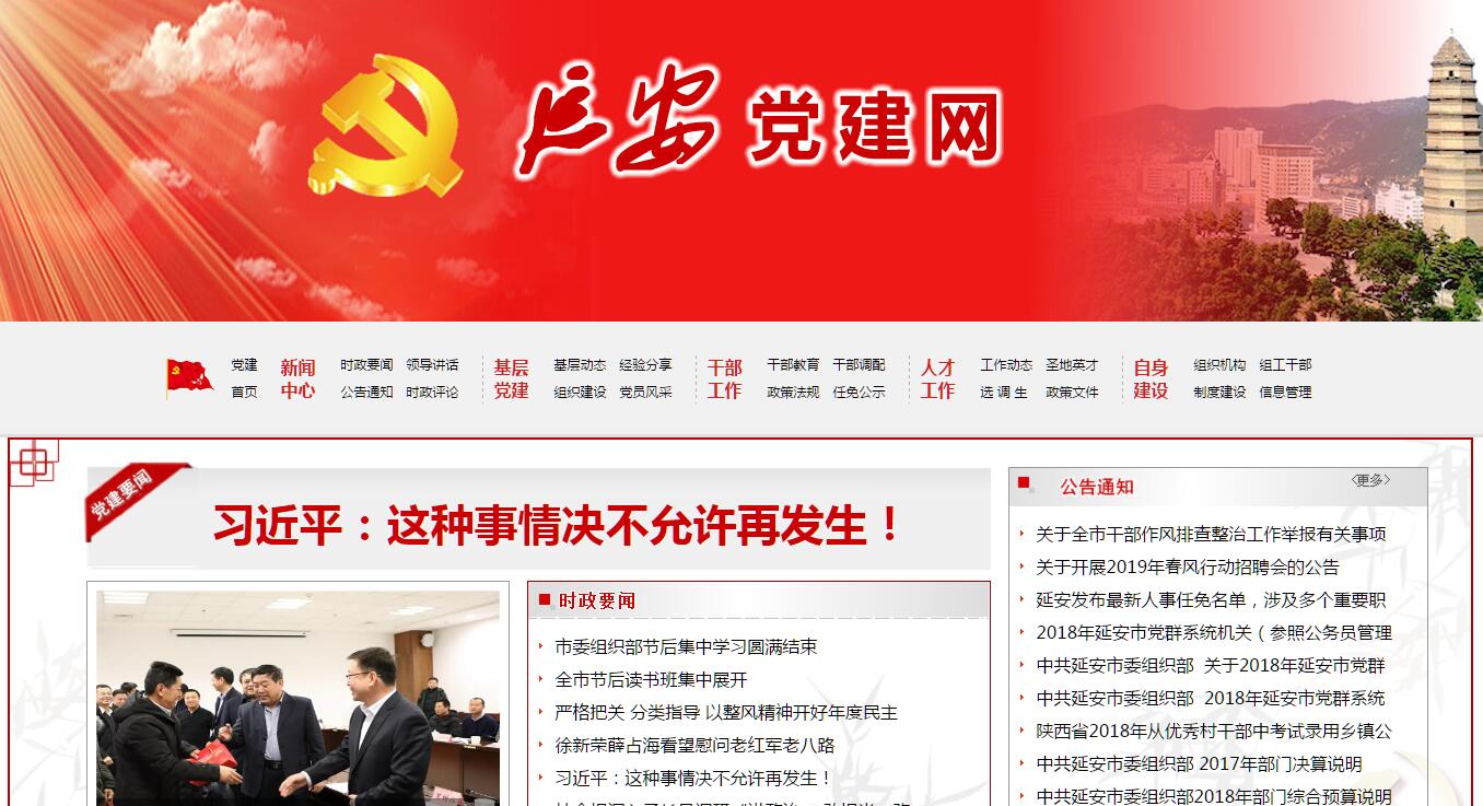 延安党建网由中共延安市委组织部主办。中共延安市委组织部主要职责:(一)贯彻落实党的干部路线、方针、政策,制定或参与制定干部人事工作的有关规定和干部人事制度改革方案;研究制定选拔、考核干部的规定和程序;负责全市干部工作的宏观管理。(二)对市委管理的领导班子和领导干部进行考察了解,提出调整配备的意见和建议;抓好领导班子的思想作风建设;负责办理市委向市人大推荐干部工作;办理市委管理干部的任免、审批手续;承办干部调动事宜;考察审批县区委组织部长、统战部长;负责部分干部的交流工作;办理市管干部工资评定、审批手续和出国出境手续。(三)制定全市干部队伍发展规划,负责后备干部队伍建设和培养选拔年轻干部的指导、管理工作。(四)贯彻落实党的组织工作的路线、方针和政策,对全市各级党的组织建设进行调查研究,提出意见和建议;研究制定加强党的组织工作的措施,并进行宏观指导、督促检查;指导全市党员的管理、教育和发展工作;负责组织员队伍建设。(五)负责市属国有企业领导班子建设工作。(六)对全市干部培训教育工作进行规划指导,对党政干部培训教育工作进行协调、督促和检查,并具体组织市委管理的干部和组织、人事部门负责人的培训。(七)指导全市知识分子工作和人才选拔工作,负责选拔和管理有突出贡献的专家和专门人才。(八)负责全市组织部门干部监督工作的指导、管理,参与制定干部监督工作的政策规定,审理市委管理的领导干部的有关问题。(九)负责市级党委、人大、政协、民主党派、群众团体机关参照《国家公务员暂行条例》管理工作和全市参照管理工作的指导。(十)负责党员、干部的来信来访工作。(十一)负责全市组织系统信息化建设和管理工作;负责市委管理干部的档案管理工作,并对全市干部档案管理工作进行指导;负责全市党群系统公务员统计工作和各级党组织及党员统计工作;负责全市组织系统网络宣传、舆情监测及应对处置工作。(十二)负责全市组织史资料的收集和编写工作。(十三)检查、指导下级组织部门的工作,及时向市委、省委组织部报告全市党的组织、干部、人才工作情况。(十四)负责离退休干部的宏观管理;承办市委管理干部的离退休手续审批工作。(十五)负责全市年度目标责任的组织实施工作;负责对目标任务完成情况进行经常性的督促检查;协调有关部门定期召开联席会议,研究解决考核工作中的具体问题;负责对考核结果的运用提出意见和建议;完成领导小组交办的其它事宜.(十六)完成市委和省委组织部交办的其他任务。