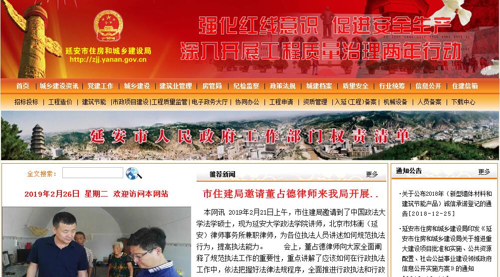 根据省委、省政府关于市政府机构改革有关精神和我市住房和城乡建设工作实际,设立延安市住房和城乡建设局,为市政府工作部门。其主要职责:(一)贯彻执行中、省有关建筑业、住房保障、物业管理、房地产行业管理等法律法规和方针政策,提出地方性管理规定和办法,并指导、监督和组织实施。(二)研究拟定全市城乡建设发展战略、中长期规划和年度计划,并组织实施;指导全市城乡及村镇基础设施建设工作。(三)负责全市建筑业和建筑市场管理;制定建筑市场各方主体行为以及建设监理、建筑安全生产、建筑工程质量和工程风险管理等方面规章制度并监督执行;负责建筑市场准入监督工作;负责建筑施工企业、建设监理单位和相关中介组织监督管理工作。(四)推行国家对工程建设实施阶段的强制性标准、统一定额、行业标准及费率,制定地方性标准并监督执行。(五)监督和管理建筑工程质量安全;负责监督检查建筑工程质量、建筑安全生产;组织或参与工程重大质量、安全事故的调查处理。(六)指导城市规划区内市政基础设施建设、改造方面政府投资或非经营性项目的组织实施工作。(七)负责各类房屋建筑及其附属设施的建造和与其配套的线路、管道、设备安装项目的监督管理;负责全市范围内工业民用建筑及市政基础设施工程项目的招投标管理工作;负责颁发城市规划区建设工程施工许可证和工程建设管理工作;负责建筑有形市场监督管理和从事相关工程项目招标代理机构的资格认定。(八)监督全市城乡建设工程和工业民用建筑抗震设防的设计与实施;负责城市建设工程和工业民用建筑抗震设计的审查与监督。(九)负责城市建筑业劳保统筹基金、新型墙体材料专项费等费用的收缴、管理工作。(十)承办市政府交办的其他事项。