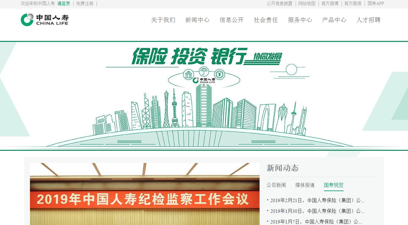 中国人寿保险(集团)公司属国家大型金融保险企业。2017年,集团公司合并营业收入达8125.48亿元,实现高位上的稳定增长;合并保费收入6434亿元,同比增长14.80%;合并总资产达到3.6万亿元。中国人寿保险(集团)公司已连续16年入选《财富》世界500强企业,排名由2003年的290位跃升为2018年的42位;连续12年入选世界品牌500强,2018年品牌价值达人民币3253.72亿元;所属中国人寿保险股份有限公司继2003年12月在纽约、香港两地同步上市之后,又于2007年1月回归境内A股市场,成为全球第一家在纽约、香港和上海三地上市的保险公司。中国人寿保险(集团)公司的前身是诞生于1949年的原中国人民保险公司,1996年分设为中保人寿保险有限公司,1999年更名为中国人寿保险公司。2003年,经国务院和中国保险监督管理委员会批准,原中国人寿保险公司进行重组改制,变更为中国人寿保险(集团)公司,并独家发起设立中国人寿保险股份有限公司。目前,集团公司下设中国人寿保险股份有限公司、中国人寿资产管理有限公司、中国人寿财产保险股份有限公司、中国人寿养老保险股份有限公司、中国人寿电子商务有限公司、中国人寿保险(海外)股份有限公司、国寿投资控股有限公司以及保险职业学院等多家公司和机构。2016年,中国人寿入主广发银行,开启保险、投资、银行三大板块协同发展新格局。中国人寿秉持“成己为人 成人达己”的企业文化核心理念,努力推进“创新驱动 综合经营 国际一流”发展战略,增强发展动力、扩大经营布局、服务国家大局,加快转型升级、提质增效,以“建设国际一流金融保险集团”为企业愿景,薪火相传,砥砺奋进。
