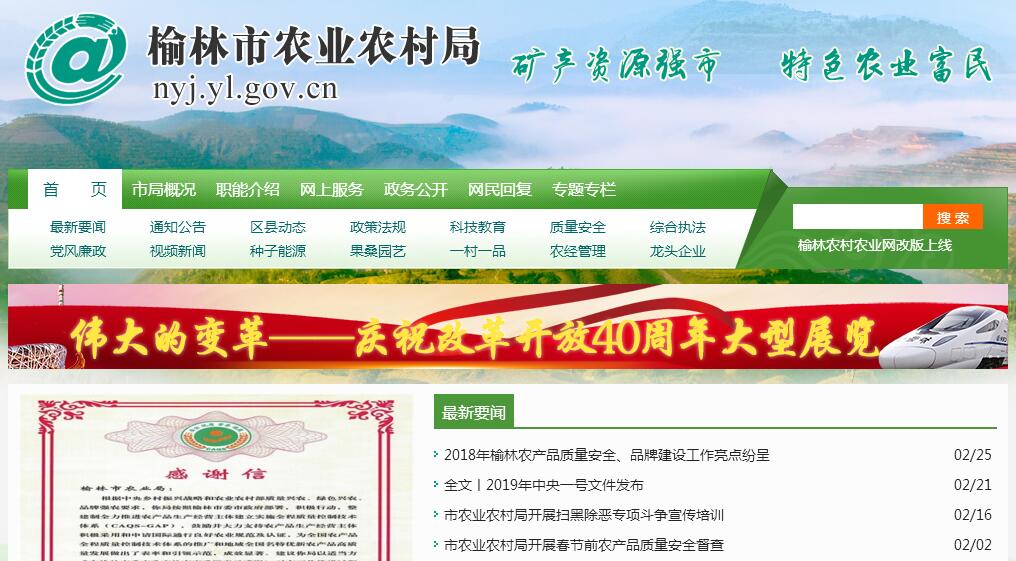 榆林市农业农村局是主管全市农业和农村经济发展的市政府组成部门,承担全市农业和农村经济发展政策落实、行政管理、行政执法、科技服务等职能。其主要职责:(一)提出全市农业发展政策、发展战略和中长期发展规划建议,经批准后组织实施;参与涉农的财税、价格、金融保险的政策制定;编制农业发展规划、年度工作计划和项目管理细则并组织实施;开展农业产业扶贫工作。(二)承担完善农村经营管理体制的责任。提出深化农村经济体制改革和稳定完善农村基本经营制度的政策建议;负责农村土地承包及承包合同管理,指导农村土地承包、耕地使用权流转和承包纠纷仲裁;指导和监督减轻农民负担和村民筹资酬劳工作;指导和监督农村“三资”管理。指导、扶持农业社会化服务体系、新型经营主体和农产品行业协会的建设与发展。(三)指导全市粮食、果品、蔬菜、油料、中药材等主要农产品生产,组织落实促进主要农产品生产发展的相关政策措施,引导农业产业结构调整、农业资源配置和农产品品质改善。会同有关部门指导农业标准化、规模化生产。(四)负责提出农业固定资产投资规模和方向、财政性资金安排的建议,按权限管理全市规划内和年度计划规模内固定资产投资项目,提出扶持农业和农村经济发展的财政政策和项目建议,经批准后与相关部门共同制定方案并指导实施。编制部门预算并组织执行。(五)提出农业产业保护政策建议,拟订农业产业化经营的发展规划与政策并组织实施,促进农业产前,产中、产后一体化发展。拟订促进农产品加工业发展的政策、规划,指导农产品加工业结构调整、技术创新和服务体系建设。指导县区农业部门加强对现代农业园区的建设和提质增效;制定全市特色优质农产品市场体系建设与发展规划,提出促进农产品流通的政策建议。培育、保护和发展农产品品牌。(六)提升全市农产品质量安全水平,负责农产品质量监测,指导农业检验检测体系建设,依法开展农产品质量安全风险评估,发布有关农产品质量安全状况信息,负责食用农产品从种植环节到进入批发、零售市场或生产加工企业前的质量安全和农产品“三品一标”监督管理。(七)依法开展农作物种子(种苗、菌种、蚕种)、农药肥料等农业生产资料的监督管理。依法实施对农业相关造法案件查处并负责县区农业行政处罚案件的复议,组织农业行政处罚听证.负责核发在全市范围内从事除《中华人民共和国种子法》第三十一条第一、二款规定以外的其他种子生产经营活动的生产经营许可证。(八)负责农作物重大病虫害防治。组织、监督对市内植物的检疫工作,发布疫情并组织扑灭,承担农业防灾减灾的责任,监测、发布农业灾情,提出生产救灾资金安排建议,组织实施紧急救灾和灾后生产恢复。(九)负责全市农业信息体系建设和农业信息服务工作,监测分析农业和农村经济运行,发布农业和农村经济信息,开展相关的农业统计工作;负责拟订农业相关产业技术标准并监督实施。(十)拟订全市农业科研、农技推广的规划和有关政策,会同有关都门组织全市农业科技创新体系和农业产业技术体系建设。实施科教兴农战略,按分工组织实施农业科研重大专项。组织实施农业领域的高新技术和应用技术研究,农业科技成果转化和技术推广,负责农业科技成果管理,组织引进农业先进技术指导农技推广体系改革与建设;负责农业转基因生物安全监督管理。(十一)会同有关部门拟订全市农业农村人才队伍建设规划并组织实施,指导农业教育和农业职业技能开发工作,承担农村实用人才培训工程,参与农村劳动力转移就业培训和职业农民培育工作,会同有关主管部门依法实施农业农村人才专业技术资格和从业资格管理。(十二)指导农用地,农业生物物种资源的保护和管理,拟定耕地及基本农田质量保护与改良政策建议并指导实施,制定农产品产地污染防治与保护规划,提出划定或调整禁止生产区的建议,经批准后设立,变更或除标示牌,拟定农业生态建设规划,指导节水农业、生态农业、循环农业发展。指导农村可再生能源综合开发与利用,指导农业生物质产业发展和农业农村节能减排。(十三)负责全市农机管理和农机安全监理工作,推进农业机械化发展。(十四)负责全市农垦工作。(十五)负责职责范围内有关行业、领域的安全生产工作监督管理。(十六)承办市政府交办的其他事项。