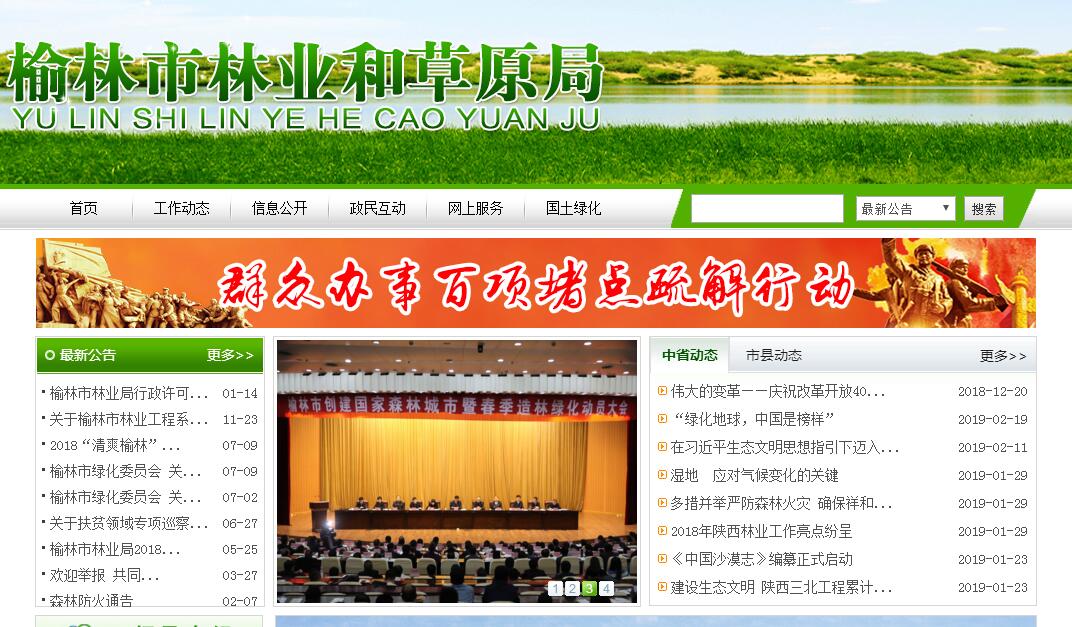 榆林市林业和草原局主要职责:(一)贯彻执行中、省关于林业及其生态环境建设、森林资源保护和国土绿化的法律、法规、规章、政策;拟定全市林业发展战略、规划并组织实施。(二)依法管理和利用森林资源和林业用地;起草有关林业的政府规范性文件草案及发展规划并组织实施;负责全市林业行政处罚和执法稽查工作;开展普法宣传教育。(三)审核、指导全市林业系统的基本建设和技术改造项目;管理、监督全市各项林业资金;负责全市林业基金的筹集、管理和使用。(四)负责植树造林、退耕还林(草)、封山育林,组织实施天然林保护工作、防护林体系建设工程、防沙治沙工程等国家生态建设重点工程,负责以植树等生物措施防治水土流失和防沙、治沙工作;组织指导全民义务植树,承办市绿化委员会的工作。依法实施对林木种子的管理,指导全市林木种子苗木基地建设和全市林业生态文明建设的相关工作。(五)负责全市森林资源(含经济林、薪炭林及其他特种用途林)的管理;组织全市森林资源调查、动态监测和统计;审核并监督森林资源的使用;组织编制森林采伐限额,并对执行情况进行监督检查;监督林木的凭证采伐与运输;组织、指导林地、林权管理,负责管理市级国有森林资源资产。(六)组织实施陆生野生动植物资源、湿地的保护和合理开发利用;在国家、省、市自然保护区的区划、规划原则的指导下,指导森林和陆生野生动物类型自然保护区和湿地的建设和管理;指导和监督濒危物种进出口和国家保护的野生动物、珍稀树种、珍稀野生植物及其产品出口工作,组织、指导全市森林病虫鼠害的防治、检疫工作。(七)负责全市森林公安和森林防火工作。组织、指导、监督查处破坏森林资源的重大案件。(八)提出全市林业发展的建议;监管全市国有林业资产;审批重点林业建设项目。(九)指导各类商品林(包括用材林、经济林、薪炭林、药用林、特种用途林)和风景林的培育。(十)负责全市林业科技、教育和外事工作。(十一)对全市木材加工、林产化工、林业机械、森林旅游、林木花卉、林业多种经营等林业产业实施指导、协调和宏观管理。(十二)承担全市林业改革,维护农民经营林业合法权益的责任,贯彻执行省政府和市政府关于集体林权制度、国有林场等重大林业改革意见并组织实施;指导监督全市农村林地承包经营、林权流转、林地纠纷调处;负责指导国营林场(苗圃)、森林公园和基层林业工作机构的建设和管理。(十三)承办市政府交办的其他事项。