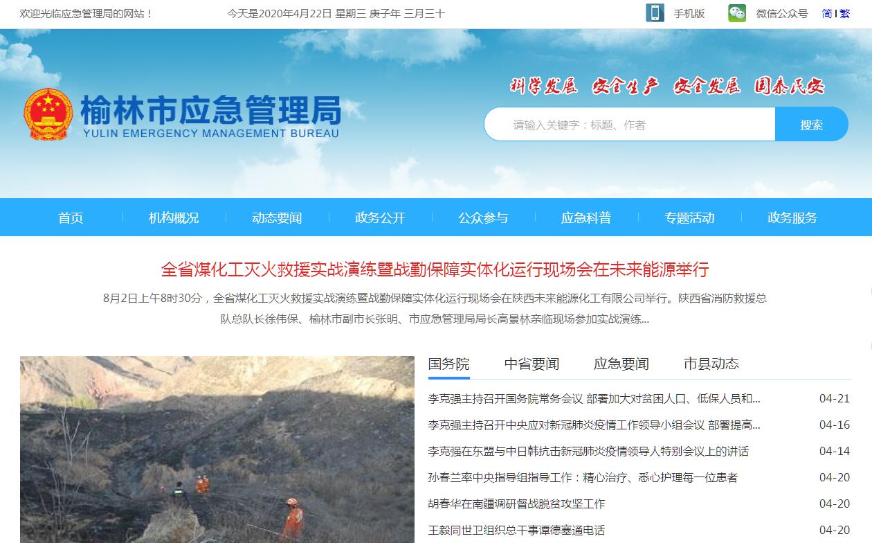 榆林市应急管理局是市政府工作部门,为正县级。榆林市应急管理局贯彻落实党中央、省委、市委关于应急管理工作的方针政策和决策部署,在履行职责过程中坚持和加强党的集中统一领导。其主要职责是:(一)贯彻国家应急管理、安全生产、防灾减灾方面的法律法规和省级地方性法规和规章、规程标准和政策规定等,负责拟订全市相关地方性政策规定,组织编制全市应急体系建设、安全生产和综合防灾减灾规划,并监督实施。(二)负责全市应急管理工作,指导各县市区、各部门应对安全生产类、自然灾害类等突发事件和综合防灾减灾救灾工作。(三)负责全市应急预案体系建设,建立完善事故灾难和自然灾害分级应对制度,组织编制市级总体应急预案和安全生产类、自然灾害类专项预案,指导各县市区应急预案编制,综合协调应急预案衔接工作,组织开展预案演练,推动应急避难设施建设。(四)牵头建立全市统一的应急管理信息系统,建立监测预警和灾情报告制度,健全自然灾害信息资源获取和共享机制,依法发布灾情。(五)组织指导协调安全生产类、自然灾害类等突发事件应急救援,承担市应对事故灾害指挥部工作,综合研判突发事件发展态势并提出应对建议,协助市委、市政府指定的负责同志组织较大灾害应急处置工作。(六)统一协调指挥全市各类应急专业队伍,建立应急协调联动机制,推进指挥平台对接,衔接驻榆解放军、武警部队和预备役队伍参与应急救援工作。(七)统筹全市应急救援力量建设,负责消防、森林和草原火灾扑救、抗洪抢险、地震和地质灾害救援、生产安全事故救援等专业应急救援力量建设,指导地方及社会应急救援力量建设。(八)依法负责全市消防管理工作,督促各行业主管部门依法履行防火职责,指导各级消防监督、火灾预防、火灾扑救等工作。(九)指导协调全市森林和草原火灾、水旱灾害、地震和地质灾害等防治工作,负责自然灾害综合监测预警工作,指导开展自然灾害综合风险评估工作。(十)组织协调灾害救助工作,组织指导灾情核查、损失评估、救灾捐赠工作,管理、分配中、省、市救灾款物并监督使用。(十一)依法行使全市安全生产综合监督管理职权,指导协调、监督检查各县市区人民政府和市级有关部门、榆林高新区、榆神工业区管委会安全生产工作,组织开展安全生产巡查、考核工作。(十二)负责安全生产综合监督管理和工矿商贸行业、非煤矿山、危险化学品、烟花爆竹安全生产监督管理工作,负责全市铁路道口安全管理工作。(十三)按照分级、属地原则,依法监督检查工矿商贸行业、非煤矿山、危险化学品和烟花爆竹领域生产经营单位贯彻执行安全生产法律法规情况及其安全生产条件和有关设备(特种设备除外)、材料、劳动防护用品的安全生产管理工作,依法指导有关部门实施安全生产准入制度。(十四)依法组织指导全市范围内生产安全事故的调查处理,监督事故查处、责任追究和整改措施落实情况,组织开展自然灾害类突发事件的调查评估工作。(十五)制定全市应急物资储备和应急救援装备规划并组织实施,会同市级有关部门建立健全应急物资信息平台和调拨制度,负责应急救灾物资统一调度。(十六)负责应急管理、安全生产、防灾减灾等宣传教育和培训考核工作,组织指导应急管理、安全生产、防灾减灾的科学技术研究、推广应用和信息化建设工作。(十七)承担市人民政府防汛抗旱指挥部、市抗震救灾指挥部、市森林防火指挥部、市安全生产委员会、市消防安全委员会、市防灾减灾委员会办公室的日常工作。(十八)负责开展应急管理方面的对外交流与合作。(十九)完成市委、市政府交办的其他任务。