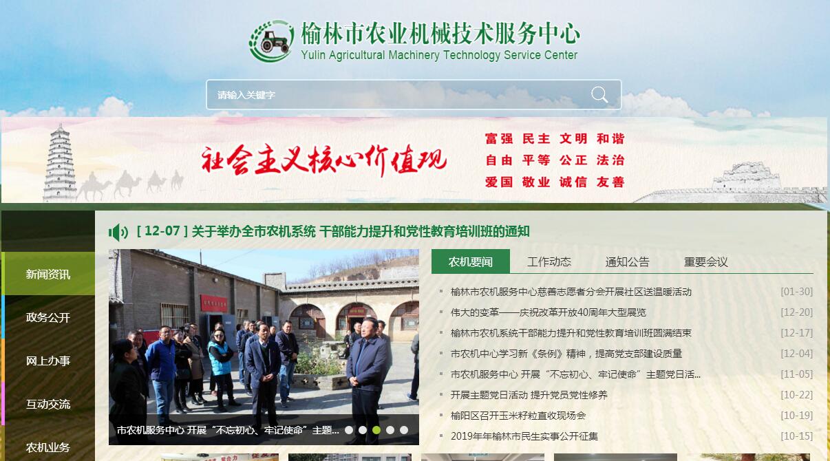 榆林市农业机械技术服务中心原名为榆林市农业机械管理局,成立于1978年,1995年机构改革时改为“榆林地区农业机械技术服务中心”,属事业性质并赋予原农机局的全部行政职能;2002年机构改革时改为“榆林市农业机械技术服务中心”。其主要职责是:(一)贯彻执行国家、省委、省政府和市委和市政府有关农机化发展的方针、政策和法律、法规。(二)研究制定榆林市农业机械化的发展规划、区域规划和年度计划,并监督实施。(三)依据有关法律法规,履行行政审批职责(拖拉机驾驶培训许可、联合收割机及驾驶员牌照证照核发、农业机械维修技术合格证书核发),指导行业执法体系建设。(四)负责实施现代特色农业机械化生产,组织开发实施农机化工程项目。(五)负责农机购机补贴政策的组织实施工作,制定市级政府支持推广的农机产品目录并监督实施。(六)负责农机化科研、教育、宣传、信息工作。(七)负责组织农机工业新产品示范、推广、普及、技术改造工作。(八)负责农机安全管理工作。负责拖拉机、联合收割机等农业机械的安全技术检验、注册、核发牌证及农机驾驶操作人员考试、考核发证工作的监督管理,指导违章行为查处、事故处理、行风建设等工作。(九)对行业的产品质量和安全生产进行监督,对农机产品的制造质量、销售质量、使用质量进行管理。(十)研究制定农机服务体系建设政策措施,指导基层农机服务体系建设,指导农机维修管理工作,开展农机行业职业技能鉴定工作,制定管理规范和技术措施并监督实行。负责全市农机维修网点审定发证。负责下属企事业单位技术职称评聘工作。(十一)管理直属事业单位。(十二)指导农机化管理系统信息网络建设,负责农机化统计工作。组织农机化信息收集、分析、处理、发布工作,为农村经济服务。(十三)指导农机使用管理及驾驶操作人员的教育培训工作。 (十四)承办市委、市政府和省农机局交办的其它工作事项。