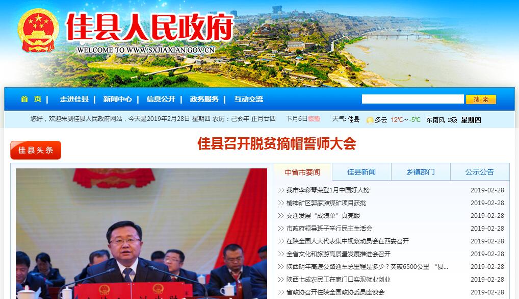 佳县,古称葭州,因境内佳芦河两岸芦苇丛生而得名,1964年改称今名,佳县是颂歌《东方红》的故乡,是毛泽东率党中央转战陕北时生活战斗过的地方,也是中国红枣名县。佳县位于陕西省东北部,黄河西岸,毛乌素沙漠南缘。东隔黄河与山西临县相望,南邻绥德县、吴堡县,西连米脂县,西北接榆阳区,北以秃尾河与神木为界,距榆林市71千米。总土地面积2029.82平方公里。全县辖12镇1个街道办事处,324个行政村,辖区户籍10.39万户,人口26.95万人,其中城镇常住人口5.0929万人,城镇化32.1%。佳县地势西北高,东南低,可分为3个地貌差异明显的区域:北部风沙区,西南丘陵沟壑区和黄河沿岸土石山区。主体山脉有两条:一条由西北自榆阳区入境,沿佳芦河岸向东南延伸120公里于县城落脉;另一条始于榆阳区、米脂县,分布于本县西北、西南境内。两条山脉中,沟、涧、坡、梁、峁纵横交错,地形复杂。境内海拔最高点位于方塌镇马能峁村寨则梁顶,海拔1339.5米。最低点位于螅镇刘家坪村,海拔675米。境内主要自然灾害有干旱、冰雹、霜冻、洪涝、大风、阴雨等。境内已探明的矿藏有:岩盐、煤、天然气、陶瓷粘土、砂、石等。岩盐境内90%的区域均有贮藏,已探明储量1000亿吨以上,预测储量8000亿吨,分别占全市储量的13.5%和11.5%,盐层厚度在80~110米之间,埋藏深度2400~2600米之间,堪称中国“盐谷”。佳县耕地面积47.02 万亩,人均1.77 亩。可利用草地107.8 万亩,林地面积174 万亩。粮食作物以玉米、谷子、薯类、大豆、绿豆等为主。畜牧业以大家畜、生猪、羊子、家禽等为主。经济林以枣树为主,是全国唯一的绿色、有机双认证红枣生产基地,产量居全国各县之首。枣树历来被本县农民视为“铁杆庄稼”、“保命树”、“致富树”。目前,佳县初步形成了以农产品加工、盐化工、新能源产业为主的工业体系。重点打造的榆佳工业园区列入陕西省新型工业化产业示范基地。境内居民饮食、宗教活动等乡土气息浓郁,独具特色。佳县境内地方传统风味小吃主要有马蹄酥、酥饺、碱饼等,制作工艺讲究,口感上乘。地方特色民间艺术有道教音乐、秧歌、唢呐、剪纸、木雕、面捏、枣编等,其中白云山道教音乐列入国家非物质文化遗产保护名录,木雕、剪纸列入省非物质文化遗产保护名录。