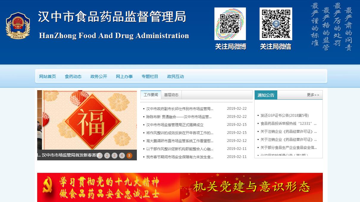 | 网站简介: 汉中市食品药品监督管理局为市政府工作部门,加挂市食品安全委员会办公室牌子,下属4个事业单位:汉中市食品药品稽查支队(副县级)、汉中市食品药品检验检测中心(副县级,加挂汉中市药品不良反应监测中心牌子)、汉中市食品药品信息投诉举报中心(正科级)、汉中市经济技术开发区食品药品监督管理分局。我局承担的主要职责如下:1、贯彻落实国家有关食品、药品、医疗器械、化妆品、保健用品监管管理的法律法规和方针政策,履行食品安全监管职责,组织实施和监督检查食品药品重大信息直报制度。2、负责生产、流通、餐饮消费环节食品安全监督管理。3、负责对药品、医疗器械、化妆品和保健用品的行政监督和技术监督。4、依法开展食品生产、流通、消费及药品、医疗器械生产、经营方面的行政许可工作。5、落实食品、药品、医疗器械、化妆品、保健用品监督管理的稽查制度,组织查处重大违法行为。6、负责全市食品药品安全事故应急体系建设,组织和指导食品药品安全事故应急处置和调查处理工作。7、组织实施食品药品安全科技发展规划、信息化建设、宣传教育培训、信息发布。8、承担市食品安全委员会日常工作。 |