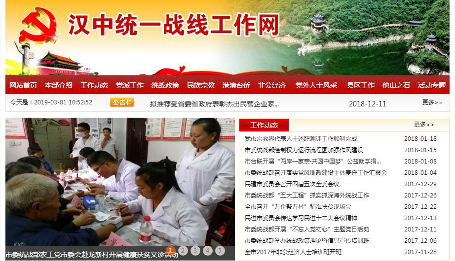 根据中共陕西省委、陕西省人民政府批准的《汉中市党政机构改革方案》,设置中共汉中市委统一战线工作部(简称市委统战部)。市委统战部是负责本市统一战线工作的市委主要工作机构,是市委在统战工作方面的参谋和助手。其主要职责是:1、组织贯彻执行中省和市委关于统一战线的方针、政策;向市委反映统一战线全面情况,提出开展统战工作的意见和建议;检查统战政策执行情况,协调统一战线各方面的关系。2、负责联系市级各民主党派和无党派代表人士,及时通报情况,反映他们的意见和建议;贯彻党领导的多党合作和政治协商制度;落实市委关于发挥民主党派和无党派代表人士参政议政和民主监督作用的工作,为市委同党外人士进行政治协商做好组织联系工作;受市委委托,向民主党派、无党派人士通报中省和市委有关重要会议或文件精神;支持、帮助各民主党派加强自身建设,选拔培养新一代代表人物;协助有关部门帮助民主党派改善工作条件。3、负责调查研究全市贯彻民族和宗教工作的方针、政策问题;联系少数民族和宗教界的代表人物;协助有关部门做好少数民族干部、宗教界代表人士的培养和举荐工作;加强新时期民族宗教工作的理论研究和实际工作的调查研究,及时向市委提出有关问题的建议。4、负责开展以祖国统一为重点的海外统战工作;联系香港、澳门和海外有关社团及代表人士;负责台湾有关团体、党派来访接待工作;做好在汉台胞、台属的有关工作;做好新移民和海外归国留学人员的联络工作。5、负责党外人士的政治安排;会同有关部门做好培养、考察、选拔、推荐、安排党外人士担任政府、政府部门和司法机关领导职务工作,做好党外后备干部和新的代表人物队伍的建设工作;协助民主党派、工商联做好干部管理工作;协助有关部门管理县区委统战部长。6、调查研究并反映我市非公有制经济代表人士的情况,协调关系,提出政策建议;团结、帮助、引导、教育非公有制经济代表人士,积极开展思想政治工作。7、调查研究党外知识分子的情况,反映意见,协调关系,提出政策建议;负责指导大专院校、科研院所、国有大中型企业的统战工作;负责新社会阶层代表人士的培养联系工作;联系并培养党外知识分子的代表人物。8、负责开展海内外统一战线的宣传工作。9、负责指导县区党委统战工作和统战部门负责人的培训工作;协调政府各有关部门及有关团体的统战工作;受市委委托,领导市工商联党组,指导市工商联工作;代管市台胞台属联谊会、市黄埔军校同学会;领导汉中社会主义学校党委,指导汉中社会主义学校工作。10、完成中省和市委交办的其他任务。