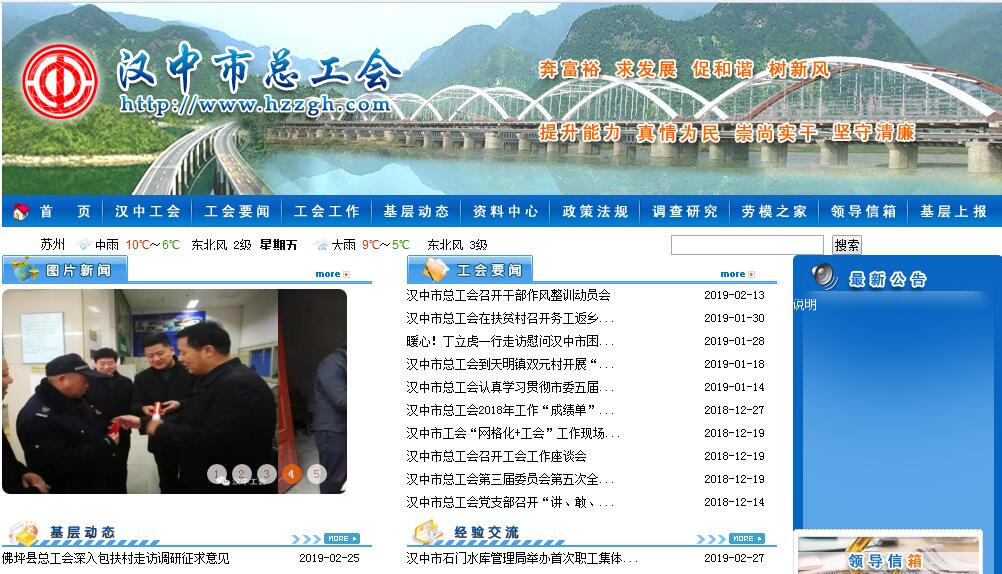 汉中市总工会是汉中市工会领导机关,受中共汉中市委和陕西省总工会领导。目前,汉中市总工会第二届委员会由35名委员组成,设主席1人、常务副主席1人、副主席2人、常务委员13人。汉中市总工会机关内设部室4个,直属事业单位1个。市总工会所属县区总工会11个、市直系统工会工委7个。截止2010年上半年,全市共有工会基层组织4709个,会员 326393人。汉中市总工会的主要职责和工作任务:(一)根据党的各项方针政策,围绕全市工作的大局和工会工作的重点,研究和制定全市工运事业发展和工会工作的指导方针和任务。(二)依照有关法律和工会章程,组织和指导各级工会认真履行各项社会职能;参与涉及本市职工切身利益的有关政策、制度的制定。(三)开展与职工利益密切相关的各种政策措施的调查研究,反映职工队伍的动态和职工的愿望要求,并提出建议和意见;根据下级工会的要求,与相关方面协商解决有关问题;监督检查《工会法》、《劳动法》、《劳动合同法》和《中国工会章程》的贯彻执行情况。(四)研究制定本市工会的各项组织制度和民主制度;负责全市工会组织建设工作;指导和开展全市工会干部的教育培训工作;负责本市各县(区)县总工会、基层工会领导班子的协管工作。(五)组织动员全市职工参与经济建设,指导和推动职工技术协会工作;调查本市职工在劳动中的安全健康和劳动保护的状况,监督检查职工劳动保护、安全生产法规的落实情况,参与职工重大伤亡事故和严重职业危害的调查处理;协助政府做好汉中市劳动模范的推荐、评选工作,承担汉中市劳动模范的管理工作。(六)负责职工代表大会制度、集体协商制度、职工董监事制度的贯彻落实;大力实施送温暖工程和再就业工程,切实维护广大职工特别是困难职工群体的合法权益;指导基层工会建立和完善调整劳动关系、维护职工劳动权益的维权机制建设,参与本市重大劳动争议案件的调查处理;负责指导开展全市工会的信访工作。(七)制定全市工会的宣传教育规划,在职工中开展有关法律政策、劳动技能的培训活动,指导各级工会开展职工教育、文化、体育活动;指导基层工会开展建设"职工之家"活动;指导工会各级女职工委员会开展工作。(八)负责全市工会经费的收缴、上解、回拨以及审计工作;负责市总工会资产的管理工作。(九)承担市委和市政府以及上级工会交办的其它工作任务。