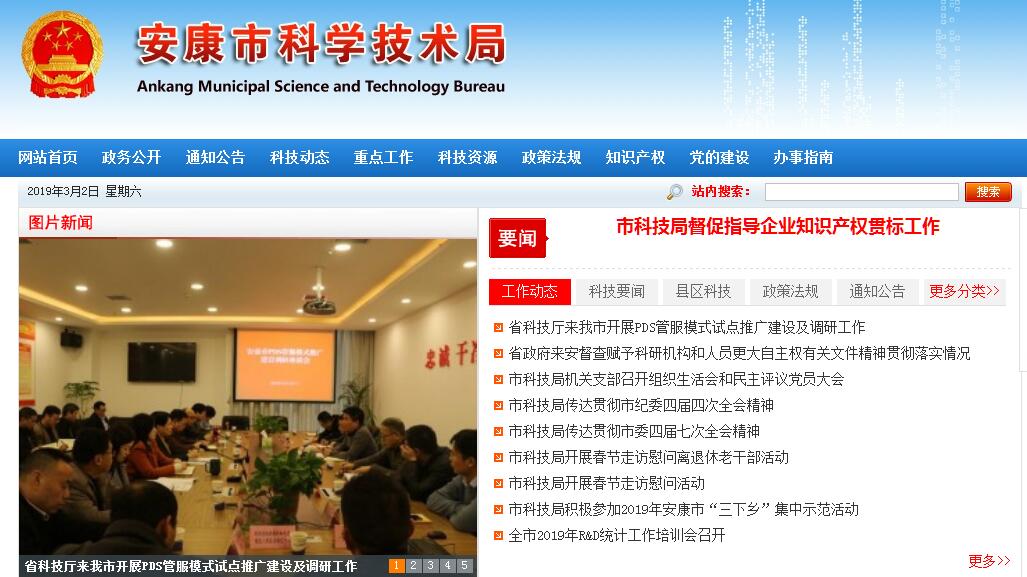 安康市科学技术局主要职责:1 、研究提出全市科技发展的有关政策和地方性科学技术管理的法规、行政规章,研究科技促进经济与社会发展的重大问题,拟定全市科技发展的重大布局、优先发展领域;2 、组织编制、实施全市民用科学技术发展中长期规划和年度计划,组织实施西部大开展大开发省、市科技行动规划和计划;3 、研究抽查全市科技体制改革政策、措施并组织实施,推动建立适应社会主义市场经济和科技自身发展规律的科技创新体制和机制,指导全市科技体制改革工作;4 、研究提出多渠道增加科技投稿的措施,优化科技资源配置,编制归口管理的科学事业费、科技三项费、科技外事经费等有关费用的预算方案,负责全市科技条件管理工作,负责组织协调全市大型仪器设备共用网的建议和管理;5 、负责管理由财政支持的火炬计划、攻关计划、星火计划等科技计划项目,负责属地管理项目的评选、论证、承担单位的选择、项目完成后的验收等管理工作和组织实施工作;6 、研究制定加强全市基础研究、高新技术发展、科技创新、科技成果转化的相关政策措施;负责自然科学基金、科技攻关、星火、火炬、社会发展、科技合作、成果技术鉴定验收、成果推广、重大科技产业化和软科学等计划的制定与组织实施;7 、研究拟定全市高新技术及产业化发展规划,负责高新技术产业化和应用技术的开发、推广工作,归口管理高新技术产业开发区的规划和组织实施工作,负责全市高新技术企业和产品的认定,科技型中小企业创新基金项目、科研单位与科技型企业自营进出口权的初审和申报工作,负责出资入股高新技术成果的认定;8 、协调管理在安的中、省科技基地的建设,编制和实施本市工程技术研究中心、重点实验室等科技基地的建设计划;9 、研究拟定科技人才资源的合理配置和充分发挥科技人员作用的相关政策,负责科技新星的选拔培养,协同有关部门做好优秀中青年专家选拔、科技副县(区)长选派工作,负责全市民营科技企业和局属、归口单位专业技术职称评审申报和管理工作,负责全市科技培训工作;10 、负责管理全市科技外事和政府双边、多边及有关国际组织之间的科技合作与交流,审核与协调重要民间科技合作交流项目,负责全市科技考察、学术会议、科技展览、科技合作与交流、出国团组及外国人来安科技访问的审批;11 、负责全市软科学研究计划项目管理和组织实施工作,负责全市科技培训规划、计划及组织实施工作;12 、归口管理全市技术市场、技术产权交易、科技中介服务机构、科技成果、科学技术奖励、科技保密与知识产权保护工作,制定科学技术普及工作规划,推动科普工作发展,促进科技咨询、招标、评估等社会中介组织的发展,推动科技服务体系建设;13 、负责全市科技型企业认定的初审、年度复核与评定过程中的日常工作,选拔推荐省级科技型企业,协调落实有关科技型企业优惠政策,根据《陕西省民营科技企业条例》的规定,负责民营科技企业认定、审批和发展的管理工作,负责科技类民办非企业单位业务管理和登记审查工作;14 、加强农村和农业科技工作研究,合同有关部门制定促进农业新技术革命和农村科技进步的方针、政策,组织和指导农村科技产业、星火技术密集区、农村区域性支柱产业的科技示范与推广、科技扶贫、科技下乡工作,推动农村与农业科技进步;15 、贯彻实施可持续发展战略,组织指导涉及人口、资源、环境、医药卫生等方面的科技工作;16 、指导县区科技管理和全市科研机构的业务工作,协同有关部门审核独立科研机构;17 、负责科技宣传、科技信息、科技统计和科技期刊管理工作;18 、归口管理全市防震减灾工作。