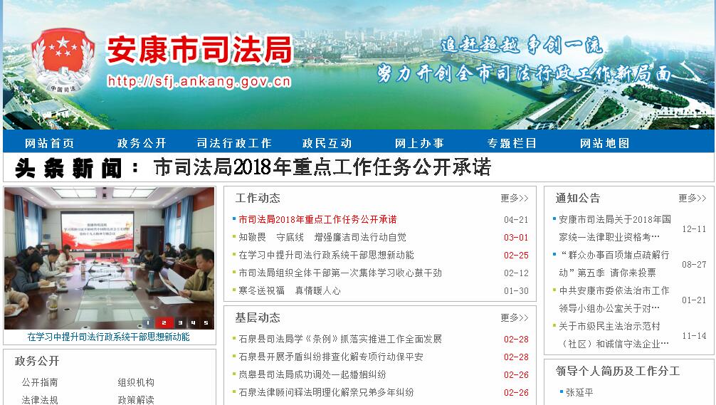 安康市司法局为主管全市司法行政工作的市政府工作部门,内设办公室、人事教育科(监察室)、法治宣传科、公证律师管理科、基层工作科(人民调解指导科)、法律援助中心、社区矫正安置帮教科7个职能科(室),下设1个事业单位安康市公证处,全系统共有县级司法局10个。其主要职责:(一)贯彻执行国家、省有关司法行政工作的法律、法规和 方针、政策,组织拟订全市司法行政发展规划并组织实施;参与行政执法检查工作。指导县(区)司法行政工作。(二)拟订法治宣传、普及法律常识和依法治市规划并组织实施,指导地方、行业和基层依法治理工作。(三)指导、监督全市律师工作、公证工作并承担相应责任。(四)指导、监督和管理全市法律援助工作并组织实施,承担市本级法律援助工作。(五)指导基层司法所工作及基层人民调解、法律服务工作;参与社会治安综合治理工作;指导刑满释放人员的帮教安置工作。(六)指导、管理全市社区矫正工作。(七)负责市人民检察院人民监督员的选任管理工作。(八)监督管理全市面向社会服务的司法鉴定工作。(九)指导全市司法行政队伍建设和思想作风、工作作风建设;负责全市司法行政系统的警务管理和警务督察工作;指导、组织实施全市司法系统干部业务培训工作,协助各县区管理司法局领导干部。(十)组织实施国家司法考试工作。(十一)承担市委依法治市领导小组办公室日常工作。(十二)承办市政府交办的其它事项。