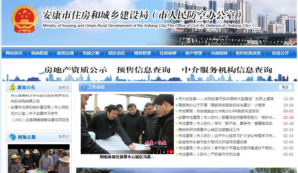 根据《中共陕西省委办公厅、陕西省人民政府办公厅关于印发〈安康市人民政府转变职能和机构改革方案〉的通知(陕办字[2015]50号),设立市住房和城乡建设局,为主管全市住房和城乡建设工作的市政府工作部门。其主要职责:(一)负责全市住房和城乡建设工作,贯彻执行党和国家有关住房保障、城乡建设等方面的方针、政策和法律、法规,并结合实际制定规定、办法和实施细则。(二)负责全市住房保障工作,拟定全市保障性住房的相关政策、发展规划和年度计划并指导实施,组织推进保障性住房建设工作;拟定全市公(廉)租房政策及规划,会同有关部门做好中省市公(廉)租房资金安排,并监督组织实施。指导和组织全市保障性住房建设工作。(三)负责全市棚户区改造工作,拟定棚户区改造政策和规章制度并组织实施。组织编制全市棚户区(城中村)改造规划和年度实施计划;负责棚户区(城中村)改造项目、资金监管和业务指导;负责组织实施安康中心城市棚户区(城中村)改造。会同有关部门做好中省市棚户区改造资金安排。(四)指导全市住房制度改革工作;编制、组织实施房改方案的配套工作;组织拟定公房出售、出租价格和租金标准;负责中心城市公(廉)租房管理;负责房产开发企业的资质管理并指导全市房产交易、抵押、租赁、中介服务、价格评估的管理工作;指导全市国有土地上房屋征收管理工作,负责中心城市国有土地上房屋征收工作。(五)负责全市房地产业的行业管理和房地产市场监督管理。指导和规范房地产市场、制定住宅建设与房地产业中长期规划、政策和规章;负责中心城市商品房预售许可审批及发证工作;组织制定住宅建设、房屋征收、房地产市场、房地产评估、物业管理的规章制度并监督执行。(六)负责中心城市市政建设与发展职责,研究制定城市建设和市政公用事业的发展战略、中长期规划、改革措施、规章并组织实施;负责中心城市内涝防治和管网工程建设项目的报批、组织实施;负责中心城市市政基础设施建设维护、城市道路占用开挖、市容管理、城市户外广告设置审批和监管工作;负责中心城市市政公用事业管理工作。(七)指导全市城市建设;指导城市供水、节水、燃气、热力、市政设施、市容及环卫工作;负责对风景名胜区、园林城市创建审核上报和保护、监督工作。(八)负责全市燃气管理工作;编制燃气行业规划,拟定有关技术标准;负责全市燃气经营和燃烧器具安装维修管理工作;负责中心城市燃气行业监管和指导县区对燃气行业的安全管理工作。(九)指导全市村镇建设;拟定村庄和城镇建设政策并指导实施;指导农村住房建设和危房改造;指导城镇和村庄人居生态环境改善工作及重点镇、文化旅游名镇、新型农村社区建设工作;负责重点镇、文化旅游名镇、宜居小镇宜居村庄、传统村落申报创建和发展保护工作。(十)负责全市城镇无害化垃圾场、污水处理厂建设及运营指导、监管工作。(十一)负责中心城市基础设施配套费的收缴工作。(十二)负责城市绿化工作,负责中心城市绿化建设与管理工作,负责建设项目绿线审批工作,负责绿化园林企业资质管理和审核工作。(十三)负责城市建设监察工作,负责中心城市市政、绿化、房地产、天然气、建筑节能、市容管理等执法监察工作。(十四)负责全市建设工程造价管理工作,负责市政公用项目、城市维护项目、城市绿化项目和房地产开发、保障性住房的造价审查工作。(十五)负责全市建筑节能管理工作,负责发展新型墙体材料与推广节能建筑的组织协调、基金监管、规划指导和节能建筑的认定管理工作;负责组织实施可再生能源建筑应用示范项目,大型公共建筑能耗监测工作;监督、检查建筑节能的实施,负责绿色建筑推广及绿色建筑评价标示的申报和评审验收工作,负责建筑节能专项验收备案工作。(十六)承办市政府交办的其它事项。