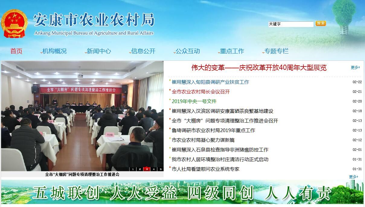 安康市农业农村局主要职责:(一)贯彻执行有关农业和农村工作的方针、政策,拟定全市种植业、畜牧业、农业机械化等农业各产业和农村经济发展政策、发展战略、中长期发展规划并指导实施。参与涉农的财税、价格、金融保险的政策制定。组织起草有关农业和农村经济的地方性法规、政府规章草案并组织实施,推进农业依法行政。(二)承担完善农村经营管理体制的责任。提出深化农村经济体制改革和稳定完善农村基本经营制度的政策建议,指导农村土地承包、耕地使用权流转和承包纠纷仲裁管理。指导、监督减轻农民负担和村民筹资筹劳管理工作,指导农村集体资产和财务管理。指导、扶持农业社会化服务体系、农村合作经济组织、农民专业合作社和农产品行业协会的建设和发展。(三)指导全市种植业、畜牧业等主要农产品生产,组织落实促进主要农产品生产发展的相关政策措施,引导农业产业结构的合理调整、农业资源的合理配置和农产品品质的改善。会同有关部门指导农业标准化、规模化生产。(四)负责提出农业固定资产投资规模和方向、政策性资金安排的意见,按市政府规定权限审批、核准全市规划内和年度计划规模内固定资产投资项目。提出扶持农业和农村经济发展的财政政策和项目建议,经批准后与相关部门共同指导实施。拟定农业开发规划并监督实施。(五)促进产前、产中、产后一体化发展。组织拟订全市农业产业化经营的发展规划与政策并组织实施。提出农业产业保护政策建议。组织拟定促进农产品加工业发展政策、规划,指导农产品加工工业结构调整、技术创新和服务体系建设。研究制定全市大宗农产品市场体系建设与发展规划,提出促进大宗农产品流通的政策和主要农产品的进出口建议。促进农业产业化发展,培育、保护和发展农产品品牌。(六)承担提升全市农产品质量安全水平的责任。依法开展农产品质量安全风险评估,发布有关农产品质量安全状况信息,负责农产品质量安全检测。提出技术性贸易措施的建议。组织落实国家农业转基因生物安全评价标准和技术规范。指导农业检验检测体系建设和机构考核;依法实施符合安全标准的农产品认证和监督管理;组织农产品质量安全的监督管理。(七)组织、协调全市农业生产资料市场体系建设。依法开展农作物种子(种苗)、草种、食用菌种、种畜禽、农药、兽药、饲料、饲料添加剂的相关许可及监督管理。监督有关农业生产资料国家标准的实施。开展兽药医疗器械和有关肥料的监督管理。(八)制定全市农业机械化发展规划并组织实施。负责全市农业机械科研和技术推广项目的管理、农机作业和维修以及农机产品质量的投诉监督管理。依法组织实施农机安全生产监督管理与事故调查处理。(九)负责动植物重大病虫害防治。起草有关动植物防疫和检疫实施办法。指导动植物防疫和检疫体系建设。组织和监督全市动植物(除森林、野生动物外)防疫检疫工作,负责疫情监测并组织扑灭,组织植物检疫性有害生物普查。组织兽医医政、兽药药政药检工作。负责执业兽医的管理。(十)承担农业防灾减灾的责任。监测、发布农业灾情,组织种子、化肥等救灾物资储备和调拨,提出生产救灾资金安排建议,组织实施紧急救灾和灾后生产恢复。(十一)管理农业和农村经济信息,监测分析农业和农村经济运行,开展相关农业统计工作。发布农业农村经济信息,负责农业信息体系建设,组织协调农业信息服务工作。(十二)拟订全市农业科研、农技推广的规划和有关政策,会同有关部门组织全市农业科技创新体系和农业产业技术体系建设,实施科教兴农战略,按分工组织实施农业科研重大专项。组织实施农业领域高新技术和应用技术的研究、农业科技成果转化和技术推广。负责农业科技成果转化和技术推广。负责农业科技成果管理。指导农技推广体系改革与建设。负责农业植物新品种保护及转基因生物安全监督管理。(十三)会同有关部门拟订全市农业农村人才队伍建设规划并组织实施,指导农业教育和农业职业技能开发工作,参与实施农村实用人才培训工程。承担农村劳动力素质提升和职业农民培育工作,会同有关部门依法实施农业农村人才专业技术资格和从业资格管理。(十四)组织全市农业资源区划工作,指导农用地、草原、宜农滩涂、宜农湿地以及农业生物物种资源的保护和管理。拟定耕地及基本农田质量保护与改良政策并指导实施,依法管理耕地质量。发展节水农业。(十五)制定并实施全市农业生态建设规划,指导农村可再生能源开发与利用,指导农业生物质产业发展和农业农村节能减排,承担指导农业面源污染治理有关工作。划定农产品禁止生产区域,指导生态农业、循环农业等的发展。牵头管理外来物种。(十六)承担市政府农业涉外有关事务,开展农业对外经济、技术、交流与合作。协助有关部门组织实施农业援外项目,承担农业援助项目的监管工作。(十七)承办市政府交办的其他事项。
