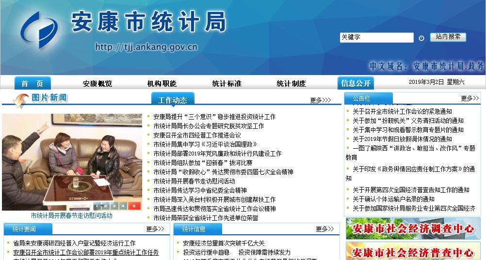 安康市统计局主要职责:(一)负责组织和协调全市统计工作;拟订全市统计政策、规划以及全市统计调查计划;监督检查统计法规和统计制度的实施情况,依法查处违反统计法规和统计制度的行为。(二)建立健全全市国民经济核算体系和统计指标体系,贯彻全国统一的基本统计制度,执行国家统计标准;核算全市国内生产总值,汇编提供国民经济核算资料,监督管理各县区国民经济核算工作。(三)组织实施国家重大国情国力普查和专项调查,组织实施全市人口、经济、农业等重大国情国力普查,以及投入产出专项调查、1%人口抽样调查等,汇总、整理和发布有关国情国力方面的统计数据。(四)组织实施农林牧渔业、规模以上工业、资质以上建筑业、限额以上批发和零售业、限额以上住宿和餐饮业、房地产开发经营业以及规模以上服务业等统计调查,收集、汇总、整理和发布有关调查的统计数据,综合整理旅游、交通运输、邮政、教育、卫生、社会保障、公用事业等全市基本统计数据。(五)组织实施能源、投资、收入、科技、人口、劳动力、社会发展基本情况等统计调查,收集、汇总、整理和发布有关调查的统计数据,综合整理资源、环境、对外经济等全市基本统计数据。(六)对全市国民经济、社会发展、科技进步、文化事业等情况进行统计分析、统计预测和统计监督,统一评估、管理、公布全市基本统计资料,定期发布全市国民经济和社会发展情况的统计信息,向市委、市政府及有关部门提供统计信息和咨询意见。(七)加强对全市各县区、各部门统计工作的指导、综合协调和统计数据发布的管理。负责对市级各有关部门和县区年度目标责任考核有关数据的审核。(八)依法审批或者备案市级各部门的统计调查项目、县区统计调查项目;指导专业统计基础工作、统计基层业务基础建设;会同有关部门组织管理全市统计专业资格考试、从业资格认定和继续教育工作;建立健全统计数据质量审核、监控和评估制度,开展对重要统计数据的审核、监控和评估,依法监督管理涉外调查活动。(九)建立健全并管理全市统计信息化系统,推进统计信息搜集、处理、传输、共享、存储技术和统计数据库体系的现代化;建立健全并管理统计数据库系统;在全市统计系统组织、应用和推广计算机、网络和应用软件技术;建立全市网络与信息安全防护监控体系及网络应急保障体系,实时监控网络、业务系统和信息的安全;积极探索大数据在全市统计工作中的运用。(十)监测市委市政府重大决策部署的落实情况,开展全市县域经济社会发展综合监测、重点示范镇、战略性新兴产业、文化产业统计监测;组织实施全市非公有制企业、事业单位、个体经营户和第一产业中的非公有制经济成份等的调查;与国家统计局安康调查队共同组织开展城乡居民收入调查和农村贫困监测调查;建立并组织实施全面建成全市小康社会统计监测,全面反映我市建设小康社会进程。(十一)开展社情民意调查,搭建各级党政领导和社会公众沟通交流的平台,为全市年度目标责任考核工作提供服务。(十二)承办市政府交办的其它事项。