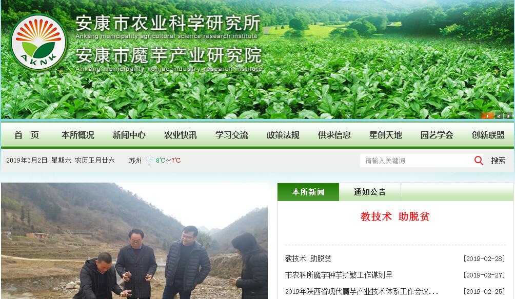 安康市农业科学研究所现在职人员60人,其中研究员2人,高级农艺师12人,农艺师14人,硕士研究生16人,享受国务院特殊津贴专家、省市突贡专家等4人,全国劳动模范1人,“陕西省现代魔芋产业技术体系”首席科学家1名,魔芋、马铃薯、茶叶、食用菌、杂粮、玉米等产业技术体系岗位专家16人,科研能力较强。单位下设薯类作物、粮油作物、茶叶、食用菌、果蔬、农产品加工等6个研究中心,极具区域特色。科研平台:有国家发改委“安康市现代农科科技服务中心”、科技部认定的国家级“安康农科星创天地”、陕西省现代魔芋产业技术体系研发中心、安康市茶叶技术研究中心、安康市马铃薯研发中心等。先后与元辰实业(集团)有限公司、安康汉阴华晔植物药业有限公司、安康市汉水韵茶叶有限公司、安康市汉滨区三条岭中旺水保有限公司、安康畅清佳生物科技公司、汉滨区尚硒园区等企业开展技术研发、科技成果转化为核心的科企合作。科研设施:有硒应用实验室、植物组培实验室、食用菌实验室、农产品加工实验室、魔芋实验室、茶叶实验室等,具有仪器150余台,其中5万元以上仪器30余台;联栋温室2栋6000㎡、日光温室7个5000㎡、玻璃智能温室800㎡、试验用地500余亩。累计取得科技成果180项,发表科技论文600余篇。