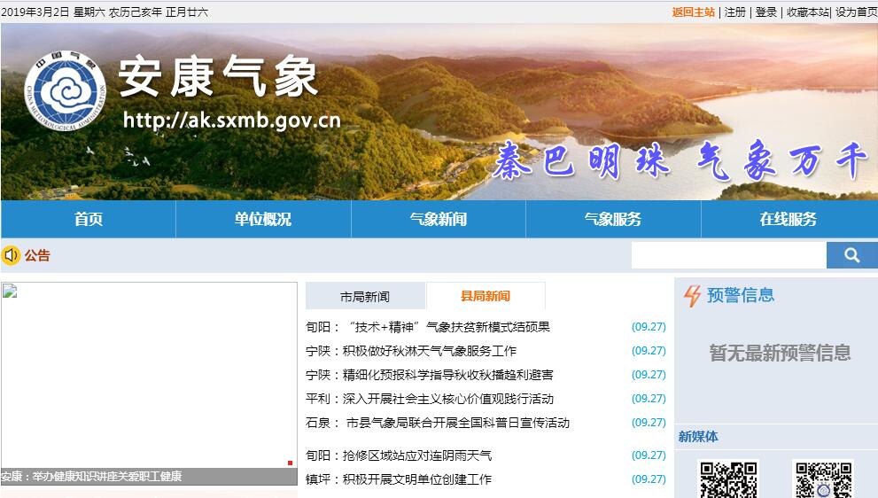 安康市气象局成立于1956年,现为正处级事业单位,内设4个科室(办公室、业务科技科、计划财务科、政策法规科),6个直属事业单位(安康市气象台、安康市气象信息技术保障中心、安康国家气候观象台、安康市气象科技服务中心、安康雷电预警防护中心、安康市气象局财务核算中心),下设9个县气象局。全市有国家基准站1个,基本站2个,一般站7个,多普勒雷达站1个,农气观测站1个,大气辐射观测站1个,酸雨观测站2个。主要进行地面观测、高空探测、农业气象、太阳辐射、酸雨、沙尘暴监测等气象业务监测,开展天气预报、气候预测、农业气象预报服务、空气质量预报、人工影响天气等气象服务工作。全局有固定职工126名。其中公务员17名,事业单位工作人员109名。专业技术人员中,高级职称4名,中级职称51名。近年来,在省气象局和安康市委、市政府的正确领导下,市局党组带领全市气象职工积极进取,开拓创新,使全市气象事业始终保持着良好的发展态势,并在各项工作取得了较好的成绩。在2008年全省气象系统目标考核中首次荣获“优秀达标”,首次在全市“创佳评差”活动中获得“最佳处局”称号,同时被省委省政府授予省级文明单位。测报业务、气象服务、科技服务等工作先后受到省局表彰和奖励。