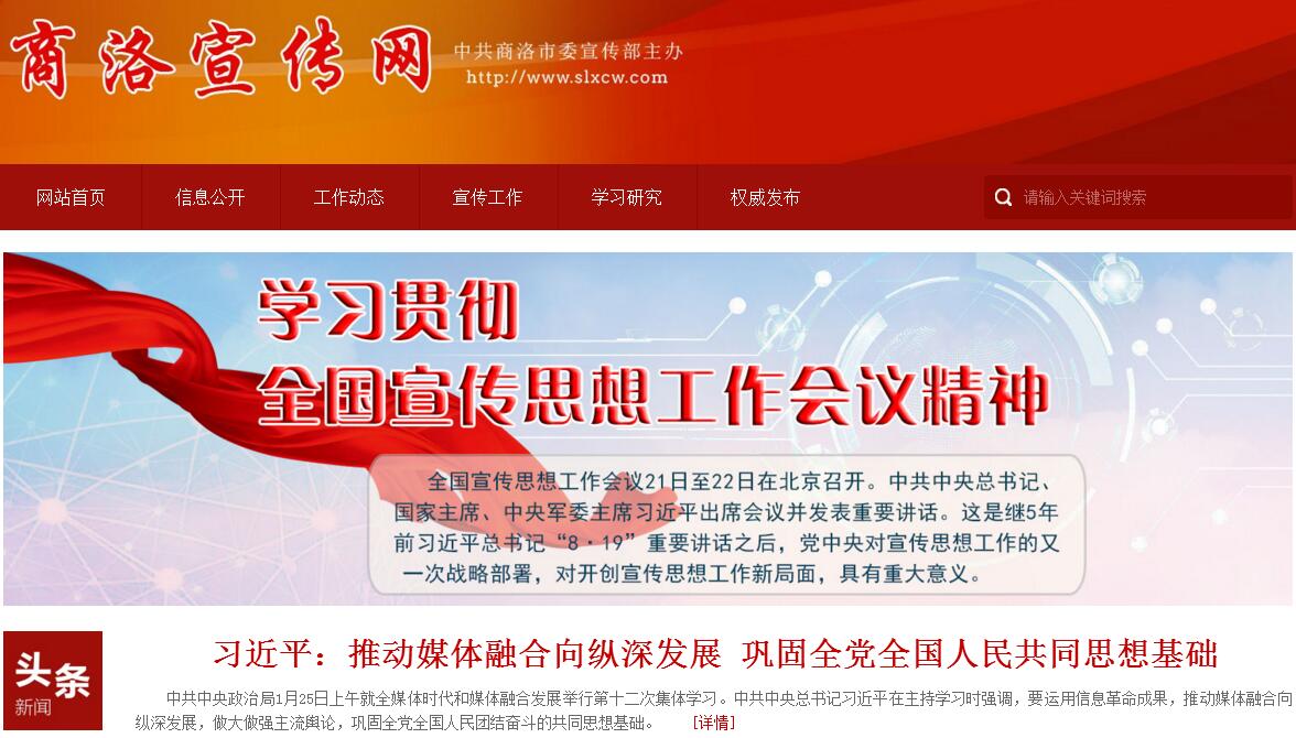 中共商洛市委宣传部(市精神文明建设指导委员会办公室) 是中共商洛市委主管意识形态工作的综合职能部门。其主要职责如下:1.根据中央、省委宣传部和市委的安排部署,围绕市委、市政府中心工作,制定实施全市宣传思想文化工作任务、政策和措施。2.指导、协调全市各级党委宣传部门和市级有关部门单位的宣传思想文化工作; 指导、协调全市新闻工作。3.指导全市理论研究、学习、宣传和队伍建设工作。4.管理文化艺术创作生产,指导、协调全市文化、新闻、出版、广播电视及文物工作。5.负责全市思想政治教育工作,培育和践行社会主义核心价值观; 负责爱国主义教育和国防教育,组织开展社会宣传;指导推动全市企业思想文化建设。6.指导协调全市精神文明建设工作,组织开展群众性精神文明创建活动;协调公民思想道德建设和志愿服务工作。7.指导、组织、协调对外宣传和对外文化交流;负责全市新闻发布工作;会同有关部门承担境外来访记者的联络工作。8.指导全市文化体制改革和文化产业发展工作;指导、协调全市文化事业发展,制定扶持文化事业发展的政策措施。9.指导、协调文学艺术界联合会、作家协会和有关新闻出版等专业性群众团体工作。10.主管全市新闻系列和企业思想政治工作干部的职称评定工作;负责全市宣传思想文化系统人才培养、培训工作;会同有关部门承担宣传文化系统知识分子工作。11.协助组织部门承担有关干部选拔任用工作。12.会同有关部门管理宣传文化发展资金、文化产业发展基金、文学艺术基金等专项资(基)金。13.完成市委和上级宣传部门交办的其他任务。