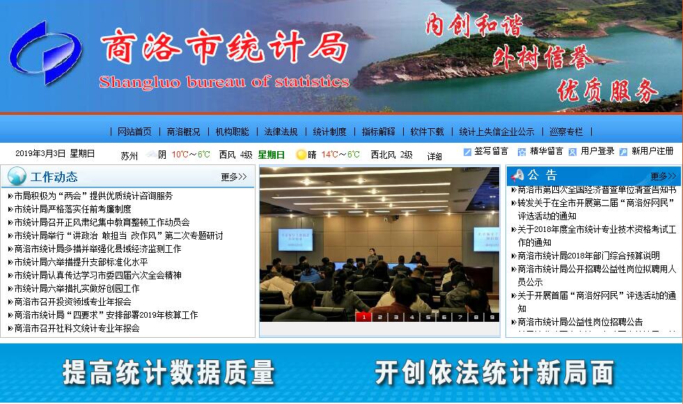 商洛市统计局主要职责:(一)承担组织领导和协调全市统计工作,确保统计数据真实、准确、及时的职责;拟定全市统计政策、规划以及全市统计调查计划;监督检查统计法规和统计制度的实施情况,依法查处违反统计法规和统计制度的行为。(二)建立健全全市国民经济核算体系和统计指标体系,贯彻全国、全省统一的基本统计制度;执行国家统计标准,完成全市投入产出调查任务;核算全市及各县区国内生产总值,汇编提供国民经济核算资料,监督管理各县区国民经济核算工作。(三)会同有关部门组织实施国家重大国情国力普查计划,负责全市人口、经济、农业等重大国情国力普查,审核、汇总、整理和提供有关国情国力方面的统计数据。(四)组织实施农业、工业、交通、商贸、能源、旅游、服务业、建筑业、房地产业、劳动工资、科技、投资、消费、价格、收入、人口、劳动力、社会发展基本情况、环境基本状况等统计调查,收集、汇总、整理和提供有关调查数据;搜集整理和提供金融、保险、财政、税务、交通运输、邮政、教育、卫生、社会保障、公用事业等全市基本统计数据。(五)组织全市各县区、各部门的经济、社会、科技和资源环境统计调查,统一核定、管理、公布全市基本统计资料,定期发布全市国民经济和社会发展情况的统计信息,组织建立服务业统计信息共享制度和发布制度。(六)对全市国民经济、社会发展、科技进步和资源环境等情况进行统计分析、统计预测和统计监督,向市委、市政府及有关部门和社会各界提供统计信息和咨询建议。(七)依法审批或者备案市级各部门的统计调查项目、地方统计调查项目;指导专业统计基础工作、统计基层业务基础建设;组织建立服务业统计信息管理制度,建立健全统计数据质量审核、监控和评估制度,开展对重要统计数据的审核、监测和评估,依法监督管理涉外调查活动。(八)按照规定的权限与责任,管理指导下属事业单位业务工作和统计事业费;指导全市统计队伍建设,会同有关部门组织管理全市统计专业资格考试、职务评聘和从业资格认定工作;监督管理各县区统计部门由国家、省、市统计局拨付的统计事业费和专项经费。(九)承办市政府交办的其他事项。