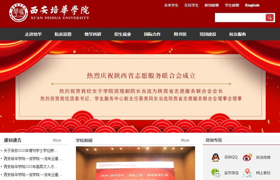 西安培华学院(www.peihua.edu.cn或者www.peihua.cn)坐落于华夏文明的发祥地古都西安,是一所经国家教育部批准的西部首家拥有学士学位授予权的民办本科高校。学校办学历史悠久,文化积淀深厚,具有女性教育和职业教育的传统和特色,学校前身可追溯到1928年由陕西女子职业教育促进会筹办、陕西省教育厅批准设立的“西安第一女子平民职业学校”。1984年经陕西省人民政府批准,国家教委备案,由著名教育家姜维之先生在恢复原“培华女子职业学校”的基础上,恢复成立了新中国首家专门招收女性学生,开展女性教育的普通高校“西安培华女子大学”。2003年经国家教育部批准升格为普通本科院校,并更名为西安培华学院(男女兼收),2007年成为西部首家拥有学士学位授予权的民办高校。学校建有高新、长安、郭杜3个校区,总占地面积130.4万平方米。学校设有10个二级学院,3家附属医院,设有本、专科专业60余个,形成了以财经、医学为主干,经济学、管理学、文学、理学、工学、艺术学、法学等多学科协调发展的办学格局。学校现有普通本专科在校生22000余人,其中本科生占学生总数的70.6%。学校现有教师 1200余人,其中高级职称教师410人,硕士以上学历教师600余人,“双师型”教师占教师总数的50%。学校图书馆建筑面积2.6万平方米,馆藏纸质图书215万册,电子图书170.7万册,电子期刊1.8万种,中外文数据库13个,数字化文献资源总存储176TB。图书馆全面实现了24小时电子借阅、阅览。建成了万兆光纤互联的校园网,建有全橡胶标准体育场、体育馆等运动场所。学校是教育部全国创新创业50强高校,陕西省应用技术型大学转型发展试点院校,陕西省示范性高等学校创新创业指导服务机构,先后和80余家企事业单位签订了校企合作协议,拥有校内实验(实训)室120个(220个分室),校外实习(实训)基地总数达到427个,校外创业实训基地2个。美国心脏协会(AHA)中国西北第一急救中心、金融会计与财务审计实务协同创新中心、中国要素市场交易实训中心、金融衍生品智能交易国际服务外包中心、会计核算全实景全真实业务实训中心等40多个教学科研机构有力促进了创新创业教育和职业人才培养。学校是新时期女性教育的研究传播中心,依托“陕西妇女/性别研究与培训基地”、“男女平等基本国策宣传培训基地”、“陕西省妇女儿童维权示范岗”“陕西省科普示范基地”等平台,女性教育既是对外交流的窗口,也为发展女性素质教育提供了高层次宽领域的主流平台,得到了中省市领导的充分肯定。学校坚持开放办学,2011年以来先后与西北大学、西安建筑科技大学、延安大学签订了共建对口帮扶协议,联合培养硕士研究生,是“西北大学—西安培华学院电子与通信工程研究生联合培养示范工作站”设站单位。学校与国内多所同类院校发起成立了“未来大学联盟”,形成优势互补、资源共享的开放式办学格局,在教学、科研、人才培养和服务地方社会经济等领域进行广泛合作。学校与中国人民解放军第四军医大学等部队院校有着密切的双拥共建关系, 与近40个国家和地区的近百所高校建立友好大学关系,积极拓展发展空间。学校坚持“以人为本、以德为先”的办学理念,先后荣获中国最具社会责任单位、中国十强民办高校、中国社会影响力民办高校、陕西省文明校园、陕西省平安校园、陕西省依法治校示范校、陕西省就业工作先进集体、陕西省创新创业示范学院等荣誉称号。