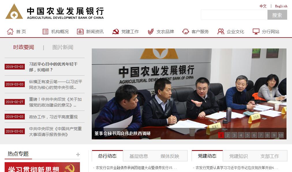 | 网站简介: 中国农业发展银行成立于1994年,注册资本570亿元,直属国务院领导,是我国唯一一家农业政策性银行。其主要任务是以国家信用为基础,以市场为依托,筹集支农资金,支持“三农”事业发展,发挥国家战略支撑作用。经营宗旨是紧紧围绕服务国家战略,建设定位明确、功能突出、业务清晰、资本充足、治理规范、内控严密、运营安全、服务良好、具备可持续发展能力的农业政策性银行。目前,全系统共有31个省级分行、339个二级分行和1816个县域营业机构,员工5万多人,服务网络遍布中国大陆地区。 |