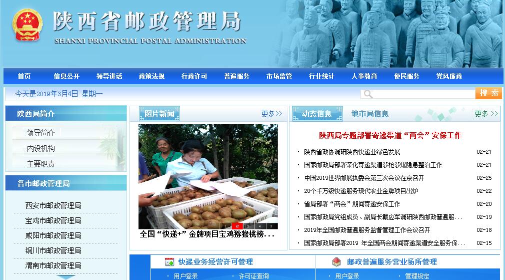 | 网站简介: 陕西省邮政管理局主要职责:(一)贯彻执行国家关于邮政业管理的法律法规、方针政策和邮政服务标准。(二)监督管理所在地区邮政市场。(三)组织协调所在地区邮政普遍服务以及机要通信、义务兵通信、党报党刊发行、盲人读物寄递等服务的实施。(四)办理国家邮政局交办的其他事项。 |