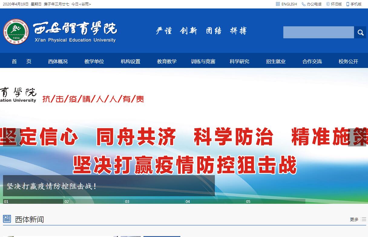 西安体育学院创建于 1954 年,坐落在古城西安小雁塔西侧,是新中国最早建立的6所体育院校之一,原隶属国家体育总局(国家体委),2001 年实行中央与地方共建,以地方管理为主,现为陕西省人民政府与国家体育总局共建院校。建院初期,贺龙元帅亲自为学院圈选校址并鼓励师生继承和发扬延安精神,艰苦创业,由此学院确立了“笃学重教、造就人才、服务体育、福佑人民”的办学宗旨。之后,国家体育总局(国家体委)历任主要领导人荣高棠、李梦华、伍绍祖、袁伟民、刘鹏等先后莅临学院指导工作,关怀和支持学院的建设与发展。经过几代西体人不懈努力和历史积淀,形成了“诚厚俭朴、勤奋刻苦、团结拼搏、求实创新、爱国荣校”的办学传统与特色,为国家培养造就了 5 万多名高素质体育人才。学院现有本部、沣峪口校区、鄠邑校区,三个校区。教职工850人,专职教师578人:其中正高级72人,副高级162人;具有硕士学位以上的教师390人,占教师总数的67.5%;具有博士学位67人,占教师总数的11.6%;具有陕西省突出贡献专家、国家体育总局优秀中青年学术技术带头人、陕西省教学名师等荣誉称号的专家学者5人;硕士生导师99人。学院面向全国招生,现有全日制在校生8819人,本科生8148人,硕士研究生689人。现有8个系(体育教育系、运动 训练系、武术系、社会体育与休闲体育系、健康科学系、体育传媒系、体育艺术系、体育经济与体育管理系), 2部(研究生部、思政部),2院(继续教育学院、足球学院), 1 校(附属竞技体育运动学校)。学院1957年开始招收体育学类专业本科生,现有 21个本科专业(体育学类专业7个,非体育学类专业11个),涵盖了经、理、教、文、管、艺 6个专业门类;拥有3个国家级特色专业建设点(体育教育、运动训练、运动人体科学),3个省级特色专业建设点(民族传统体育、表演、应用心理学),3个省级专业综合改革试点项目建设点(体育教育、运动人体科学、运动训练),陕西省一流专业建设项目(体育教育专业),陕西省一流专业培育项目(运动训练专业、运动人体科学专业);1 门国家级精品资源共享课程(田径),12门省级精品资源共享课程(篮球、足球、体操,健美操、艺术体操、散打、武术套路、运动生理学、运动生物力学、体育经济、体育概论、学校体育学),3门省级精品课程(武术散打、武术套路、体操);7个省级教学团队(田径、篮球、健美操、运动人体科学、社会体育、体操、运动康复与健康),3个省级实验教学示范中心(运动人体科学实验中心、计算机实验教学中心、运动心理学实验教学示范中心),5个省级人才培养模式创新试验区(运动康复促进、田径、体育艺术表演、武术表演(古典武艺)、体育产业)和1个省级校外实践教育基地。学院拥有一流的教学、训练场馆,设有运动人体科学实验中心、新闻实验中心、语音实验中心、计算机实验中心;图书馆是西北地区体育科学文献信息中心,总藏书72余万册。校园网设备先进,贯通两个校区,布设了8500多个信息点。学院具有国家级社会体育指导员培训基地、国家高水平体育后备人才基地、国家跆拳道训练基地、国家健美操训练基地、国家柔道中高级教练员培训中心、中国地掷球培训中心、西北地区田径高水平人才培训中心等人才培养平台,迄今在国际和国内重大体育比赛中共获金牌328枚,为国家争了光,为陕西和学院添了彩。西安体育学院自1979年开始招收硕士研究生,1986年获批硕士培养单位,现拥有2个一级学科(体育学、心理学)硕士学位授权点和10个二级学科(体育教育训练学、运动人体科学、体育人文社会学、民族传统体育学、体育管理学、体育艺术学、运动康复学、应用心理学、运动医学、课程与教学论)硕士学位授权点,1个陕西省优势特色学科(体育学)建设点,2个陕西省普通高校哲学社会科学特色学科建设项目(西部体育与区域社会发展、民族民间传统体育文化),2个专业学位硕士授权点(体育硕士、公共管理硕士);体育学学科在运动技术诊断与技能评定、运动与健康促进、体育经济与管理、体育法治理论与实践、体育教育理论与实践研究、区域公共体育服务6个研究领域形成研究特色。近几年建设成效显著。2004年开始与上海体育学院等院校合作培养博士研究生,2012年获批教育部西安体育学院与上海体育学院东西部对口支援院校。学院目前正在积极开展申请体育学博士授权单位的准备工作。近几年我院与国家体育总局体育科学研究所、青海省体育科学研究所、西安文理学院、咸阳师范学院、榆林学院、商洛学院等开展联合培养硕士研究生工作。学院现有国家体育总局体育社会科学重点研究基地、国家体育总局重点实验室-运动技术分析与技能评定、国家体育总局体育文化研究基地、陕西省高校体育法学研究基地等学科平台,在运动技术分析与技能评定、运动健康促进、体育产业及民族民间体育项目等研究领域已形成特色。近5年来,承担了国家哲学社会科学基金项目14项,国家自然科学基金项目1项,科技部软科学科研项目3项,科技部“十一五”科技支撑重点项目课题2项;省、部级课题82项,其中,社会科学基金研究课题48项,备战奥运会科研攻关课题11项,省科技厅科研攻关课题6项,自然科学研究项目17项等。学院重视对外开放办学,积极开展对外合作与交流,先后与日本、美国、俄罗斯、加拿大、澳大利亚