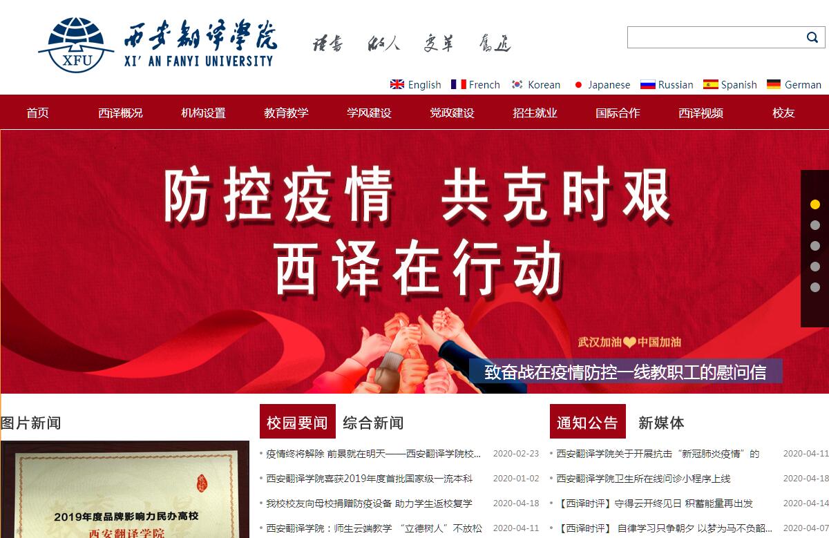 西安翻译学院由我国当代杰出教育家、民办教育拓荒者丁祖诒先生创办。学校座落在西安市南郊风景秀丽的终南山下,其前身为创建于1987年的西安翻译培训学院。2000年经陕西省人民政府批准成立西安翻译职业学院,实施全日制高等职业教育。2005年经教育部批准升格为本科高校,更名为西安翻译学院。2009年获得学士学位授予权。2013年顺利通过教育部本科教学工作合格评估。2014年接受陕西省委、省政府巡视诊断,同年被省教育厅确定为首批应用型转型试点院校。2016年获批陕西省“管办评”试点院校。2018年被陕西省教育厅评定为陕西省一流学院建设单位。经过三十年的办学实践,已发展成一所以文、商科为主,以外语为特色,多学科协调发展、具有重要影响和鲜明特色的民办大学。学校始终秉承“敢为人先、无私奉献、爱生如子、厚德敦行”的西译精神;积极践行“高尚教育”理念;坚持“不以营利为目的的社会主义公益性办学方向”;不断创新“外语+专业+现代技能”和“专业+外语+现代技能”的应用、复合型人才培养模式和“全封闭、准军事化”严格的学生管理模式,提出了在“十三五”末,建成具有地方示范作用的民办大学的阶段性发展目标。学校下设英文学院、亚欧语言学院、教育学院、商学院、文学院、艺术学院、工程技术学院、翻译研修学院、健康与运动学院、马克思主义学院、创新创业学院及继续教育学院12个二级学院、体育部和公共艺术教育中心。学院开设本科专业36个,专科专业24个,涵盖文、经、管、工、艺、法、教育、医学等八大学科门类。学校成立了陕西终南学社、翻译研究所、书画艺术研究所、电子商务运营研究中心和陕西旅游文化研究中心等十多个研究机构。现有省级一流专业5个,省级专业综合改革试点项目5个,省级重点、特色专业、重点扶持专业10个,省级精品资源共享课15门,省级教学团队6个,省级优秀教材6部,省级人才培养模式创新实验区6个,省级实验教学示范中心4个,省级虚拟仿真试验教学中心2个,省级教学成果奖5项,省级教学改革研究项目19项;现有校级专业综合改革试点项目9个,校级特色专业8个,校级精品课程39门,校级教学团队21个,校级教学名师25名,校级人才培养模式创新实验区7个,校级实验教学示范中心5个。学校始终坚持社会主义办学方向,以西译精神为支撑,以文化育人为根本,积极弘扬社会主义核心价值观,努力开展校园文化建设。学校依托终南学社,举办终南大讲堂,创办《西安翻译学院学报》和《陕西终南文化研究》等学术期刊,编辑出版《西译文丛》和《终南文库》等系列丛书。学校坚持“知识、能力、素质”三位一体的育人模式。定期举办春、秋诗会,“人文天地”文艺会演和中秋晚会、元旦晚会等。50个学生社团开展丰富多彩的校园文化活动,加强第二课堂建设,全面提高学生综合素质。通过美化校园环境,营造人文氛围,推进各类学科竞赛,强化个性培养和准军事化管理,形成了独具特色的校园文化。近年来,学生获得国家、省、市大学生科技、文体活动竞赛等各类奖励千余项。学校全面贯彻落实新修订的《民办教育促进法》,按照陕西省委提出的“三项机制”,率先打破民办教育家族化传统,构建了 “四位一体”的现代大学运行机制:举办者拥有法人财产监督管理权,董事会拥有决策权,校务会独立行使办学管理权,校党委发挥政治核心和监督保障作用,实现了民办高等教育科学规范管理的重大突破,对调动学校各方积极性,坚定不移地走内涵发展、特色发展、品牌发展、融合发展道路具有深远意义。学校从2016年初就把“一流学院、一流专业”建设纳入日程,积极开展创建工作。为提升师资层次和水平,设立了“终南学者”和“首席教授”岗位;通过完善教师评价和激励机制,大力开展“教师能力提升计划”、“中青年教师博士化工程”等,为“双一流”建设提供人才保障。学校根据自身特点及发展新常态,抓住“一带一路”战略,坚持“四合作、五共同”,深化校企合作,与陕西省贸促会、阿里巴巴集团、北京广慧金通教育科技有限公司等200多家政府、企事业单位签署深度战略合作协议或实施订单式培养,形成资源共建、全程参与、互利共赢的新型产教深度融合的合作育人模式;学校构建了“一核心、两平台、三层次、全过程”的实践教学体系,形成融“教、学、做”为一体的实践教学模式,营造全外语氛围,重点打造语言服务、教育服务、健康服务三大服务类应用专业群,建设“语言大数据智库平台”(软硬件投资约2000万元),培养服务区域经济社会发展需要的应用型高级专门人才。学校坚持开放办学,积极开展校际交流与合作。与西北大学、解放军西安通信学院、延安大学等省内大学建立帮扶关系。与美国、加拿大、日本、德国、西班牙、韩国、中国香港等十几个国家和地区的50余所高校建立了友好交流合作关系。近年来,有1000余人赴国(境)外攻读硕士学位;有百余名师生先后赴东欧及澳大利亚做访问学者和国家公派留学。学院多次组织师生参加国际青年发展峰会论坛,还聘请欧盟议会首席议员Robert George Karthus博士等多位国内外专家教授来院作报告,不断加强学术交流与合作。学校同美国地方政府建立了学生带薪赴美实习的合作关系,先后有1200余名学生赴美国实习。 学校积极贯彻落实中