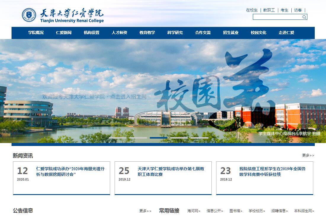 天津大学仁爱学院是经国家教育部批准,由天津大学和天津市仁爱集团有限公司合作创办的具有独立法人资格、独立办学条件、独立招生、独立颁发文凭、独立校园和独立财务核算的本科层次全日制普通高等学校。坐落于天津市团泊新城,占地1000余亩,建筑面积30余万平方米,目前全日制在校生10000余人。仁爱学院坚持“育人为本、德育为先、能力为重、全面发展”的办学思想和“实事求是、果毅力行”的校训,立足天津,融入滨海,面向环渤海区域经济建设,培养高素质、强能力、具有实事求是、创新精神的复合型、应用型高级专门人才。学校充分发挥天津大学的优质教育资源,创新办学机制,实行开放式办学、多样化培养,办学水平和人才培养质量位居同类院校前列。2010年学校被评为全国先进独立学院。2013年顺利通过教育部对独立学院的规范验收。2016年学校被授予全国民办高校创新创业教育示范学校师资队伍建设优秀奖。2017年学校被天津市学位委员会批准为2017-2020年天津市硕士学位授予单位立项建设高校。仁爱学院以天津大学优势学科为基础,依据现代高新科技发展和市场需求,开设了机械设计制造及其自动化、产品设计、自动化、电气工程及其自动化、通信工程、电子信息工程、物联网工程、计算机科学与技术、软件工程、建筑学、环境设计、土木工程、给排水科学与工程、水利水电工程、港口航道与海岸工程、船舶与海洋工程、化学工程与工艺、过程装备与控制工程、财务管理、金融工程、物流工程、信息管理与信息系统、工程管理、英语、商务英语、法学、动画等27个专业,形成了以工为主、经管、文法、艺术相互支撑、协调发展的学科专业布局。天津大学仁爱学院以培养学生创新精神和实践能力为核心,不断提高专业建设水平和教学质量,逐步构建现代大学办学体制和运行机制,努力建设成为特色鲜明、学科结构合理、应用型人才培养质量高的国内一流现代应用型大学。