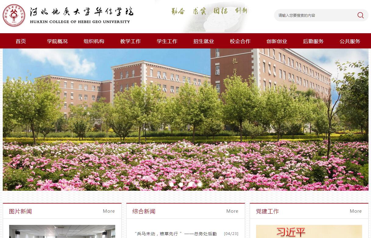 河北地质大学华信学院(原石家庄经济学院华信学院)成立于2001年,是经教育部和河北省人民政府批准设立,由河北地质大学(原石家庄经济学院)与石家庄开发区恒达工贸中心合作,按新机制新模式创办的独立设置的全日制普通本科高等学校,办学类型为独立学院,现有在校本科生10364人。学院位于石家庄市空港工业园区,毗邻石家庄正定国际机场及机场高铁站、石家庄综合保税区、京港澳高速公路。校园规划占地面积1350亩,其中一期工程占地面积506亩,建筑面积25万平方米。学院采用欧式建筑风格,校园环境优雅,配备国内领先的教学、公寓等设施,办学条件齐备,公共服务体系健全,具备良好的学习和生活环境。河北地质大学是原地质矿产部(现国土资源部)专门培养经管类、地质类人才的一所部属高校。2000年,学校管理体制由国土资源部管理转隶为中央与地方共建,以河北省管理为主,2013年学校确定为国土资源部与河北省人民政府共建院校。河北地质大学华信学院依托河北地质大学教育教学的优势资源,从河北地质大学选聘任课教师和管理干部,采用新型管理体制和运行机制,并继承和发扬“勤奋、求实、团结、创新”的优良校风。学院倡导以学生为主体、以教师为主导,以提高教学质量为目标,打造全程实践教学体系。学院重视教育教学改革工作,大力加强学科建设,实施考试改革、课程改革、教材改革等一系列教学改革。学院能够根据独立学院的学生特点,以及应用型人才培养目标定位,大胆实施个别科目“一年多考”等创新教改项目。学院注重因材施教,实施互动、启发式教学等新型实用教学方法,大胆尝试项目教学、仿真教学等专项教学模式。学院提倡快乐学习,大力提升学生的“软实力”,满足学生个性化与多样化的需求,着重培养学生的应用能力、创新能力,以培养肯吃苦、善动手、会管理、能创新的品学兼优的适应全球经济一体化和信息化社会需求的应用型人才为目标。学院始终坚持特色应用型本科教育的办学理念和“以人为本,紧贴市场,突出特色、强化就业”的办学思路。设有地调院、水勘院实训基地、邢台临城、鹿泉黄壁庄、秦皇岛石门寨、井陉县张河湾等30余个专业野外实训基地;与河北医科大学附属第一医院、白求恩国际和平医院、石家庄市妇产医院、石家庄市中医院等三甲以上实习医院以及会计手工、基础护理、ERP沙盘模拟实验室、3D打印实验室、工程实训中心等40余个实验实习中心、专业实验室,进一步强化学生的实践能力。学院重视就业创业工作,不断完善大学生职业生涯辅导体系,毕业生就业率连续三年均在97%以上。部分专业采取校企合作培养模式,深化产教融合,现与慧科教育科技集团、道恒软件、中航天使教育科技集团、新迈尔(北京)科技有限公司等二十余家企业进行深度合作,采用“订单式”培养,努力培养符合社会需要的高素质、高技能专业人才,学生毕业前即可高质量就业。学院大力发展创新创业教育,逐步形成促进学生个性化发展的创新人才培养体系,并与小麦公社、海尔集团等机构合作开展创新创业教育。学院建立了国际交流与合作的开放办学体系,与韩国又石大学等国外知名大学开展“3.5+0.5+2”等多种形式的人才培养方式及研究生教育。学院设有国家奖学金、国家励志奖学金、国家助学金、优秀学生奖学金等奖助项目。学院注重学生思想政治教育,坚持德育为先,智育为本,大力开展大学生素质教育,努力活跃学生第二课堂。严格的管理,一流的服务,学生的整体综合素质不断提高,在国内举办的各类赛事中,我院学生都有突出的表现。2012级环境工程专业唐建哲同学被评为“2012中国大学生年度人物”,并受到国家领导人的亲切接见。《中国教育报》曾对我院开展的“寸草春晖,感恩父母”感恩教育活动进行了专题报道。近年来,我院学生参加北京奥运会、上海世博会、华西急诊高峰论坛、世界种子大会、北京国际女子半程马拉松比赛等国际会议的服务工作,他们都是近年来我院毕业生的杰出代表。学院设有经济系、管理系、会计系、电子信息系、资源环境系、文法系、护理系等7个系。学院重视师资队伍建设,实施“人才强校”战略,始终把建设高素质的师资队伍作为学院的战略性、先导性工作,拥有一支结构合理、学术精湛、锐意创新、爱岗敬业的师资队伍。学院同时拥有一支由专业培训师、企业技术专家组成的社会师资队伍,利用他们技术经验丰富、实践指导能力强的特点推进学院实用型复合人才培养模式改革的步伐。学院现有专任教师577人,其中具有高级专业技术职务的教师223人,教师教学及科研水平稳步提高。学院坚持以习近平新时代中国特色社会主义思想为指导,深入贯彻党的十九大、十九届二中、三中全会以及省委九届六次、七次全会精神,以为地方经济建设培养应用型、复合型创新人才为目标,为在新时代全面建设“经济强省,美丽河北”、“实现中华民族伟大复兴中国梦”提供智力支撑和人才保障。十七年来,学院的办学成绩得到了教育行业及社会各界的广泛认可,综合实力显著增强。展望未来,学院的办学目标是建成一所拥有16000余名全日制本科生规模,适应经济全球化、现代化发展的需要,有较高办学水平、现代化办学设施和鲜明办学特色的一流综合性高等学校。
