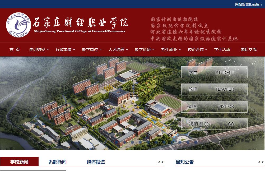 石家庄财经职业学院创办于1999年,前身为石家庄知行专修学院,2002年更名为石家庄外经贸职业学院,正式纳入国家统招计划,2011年更名为石家庄财经职业学院。是经河北省人民政府批准、教育部备案、具有独立颁发高等教育学历证书资格的省属全日制普通高等院校。建院20年来,在各级领导、社会各界的关怀鼓励下,石家庄财经职业学院一路披荆斩棘,阔步前行,目前已发展成为占地700余亩,在校生近万人,教职工500余人,教学楼、实训楼、图书馆、塑胶跑道、灯光球场、餐饮中心,教育教学设置一应俱全,100 Mbps光纤校园网络全面入校,实现了以有线为主无线为辅的全校网络全覆盖格局;学校设有10个教学单位,40个招生专业,校内实训室70个、校外实习实训基地129个,涵盖所有专业。为社会培育了数万名优秀毕业生,毕业生平均就业率达98%。学校建校以来,在各级领导和社会各界的关心和帮助下,快速发展,形成了以会计、金融、管理等财经、商贸类专业为主,建筑、汽车等工科类专业群协同发展的专业格局,开设了会计、审计、财务管理、国际经济与贸易、市场营销、电子商务、物流管理、工商企业管理、城市轨道交通运营管理、工程造价、建筑工程管理、建筑工程技术、移动通信技术、软件技术、汽车检测与维修技术、汽车营销与服务、机电一体化技术、药物制剂技术、护理等40个专业。其中财务会计类专业是省内高职院校中在校生人数最多、实训条件最好的专业之一,近年来全院会计证通过率名列省内前茅。“学会计 到财经”已经成为有志于从事会计专业工作青年学子的择校共识。学校教育教学水平、办学能力和社会影响力不断提升,赢得了各界的良好口碑。石家庄财经职业学院是河北省教育厅授权的单独考试招生改革试点院校、河北省首批“依法诚信办学”示范院校和依法办学优秀单位,是河北省第一批教学诊改试点单位和第二批现代学徒制试点单位,是我省唯一一所连续四年获得年检优秀称号的高职院校。在中国科学评价研究中心与武汉大学联合推出的《中国大学及学科专业评价报告》中,连续多年进入全国高职院校600强,且一直居于省内同类高职院校前列。学校不断优化人才培养,创新教学、管理方式,2015年,全面实施教学质量提升工程,形成了“教、学、做一体化教学模式。在课程建设与改革过程中,与职业标准、岗位规范对接,津贴岗位实际工作流程,优化课程结构和课程内容。鼓励教师采用多样化的教学方式,普及推广项目教学、案例教学、情景教学、工作过程导向教学等,探索翻转课堂、“微课”、线上线下混合式教学等教学新模式;通过课证融合、技能大赛等推进课程改革,将专业课程与技能大赛紧密结合,形成了“以赛促学,以赛促教”的教学模式。在国家、省市各级比赛中屡获大奖,成果丰硕。学校产教融合、校企合作成果突出。校内建有61个实训室,其中物流实训基地、大唐移动公司支持的移动通信实训室、与河北顺捷公司合作成立的会计实训室为特色品牌实训室。学校与河北顺捷公司的深度校企合作模式得到了教育部全国财政职业委员会的高度认可,“双课堂、双情景、校企联动、学做合一”的实践教学模式在全国具有一定影响力。2015年11月,教育部财政职业教育教学指导委员会对学校进行了专题调研,在给教育部提交的调研报告中将学校的校企合作模式概括了四句话:“企业文化进教室”、“典型案例进教材”、“业务骨干进课堂”、“人才培养进企业”,为制定全国财经类专业教学标准提供了依据。为响应 “双创”号召,学校紧跟时代脉搏,着手建设创新创业体系,成立创新创业学院、设计建造了创新思维空间展室、组建了创客训练营、打造的3000平米的“蚂蚁工厂”众创空间被评为石家庄市级众创空间,为创新创业发展提供强有力的智力支持与环境保障。学校坚持把立德树人作为中心环节,以培养学生健全的人格为目标,不断创新和探索育人新模式。通过构建展室文化、实行新生导师制、学长制、德育学分制、无烟校园等方式,不断优化育人过程,构建了协同育人工作体系,实现全过程、全方位、全员育人,形成了良好的校风、学风,得到了社会的高度评价。学校注重师资队伍建设,在教师实践能力方面制定了严格标准,每年安排专业教师到企业顶岗实践,积累实践工作经验,提高实践教学能力,同时还大量聘请来自行业、企业的专业人才到学校担任兼任教师。形成了一支以教授副教授、双师型教师为中坚力量,500多名的教师队伍。为加强专业建设,学校邀请行业、企事业单位知名专家,生产一线的高级技术人员和管理人员,成立了专业指导委员会,对专业设置、人才培养方案进行研讨,对专业建设把脉护航。学校秉持“始于用人单位需求,终于用人单位满意”的就业工作理念,建立了完善的就业服务体系,通过职业生涯规划大赛、创业大赛、成功企业家进校园、优秀校友汇报会、组织各种综合类和专业类的招聘会等多种形式加强对学生的就业指导,为学生广拓就业渠道,学校还与百余家国际国内知名企业建立了长期合作关系,确保学生就业率达98%以上。建校以来,学校为社会培养万余名高素质技能型专门人才,培养出来的大批优秀毕业生活跃在各行各业,为推动区域经济和社会发展,做出了卓越的贡献。站在新的历史起点,石家
