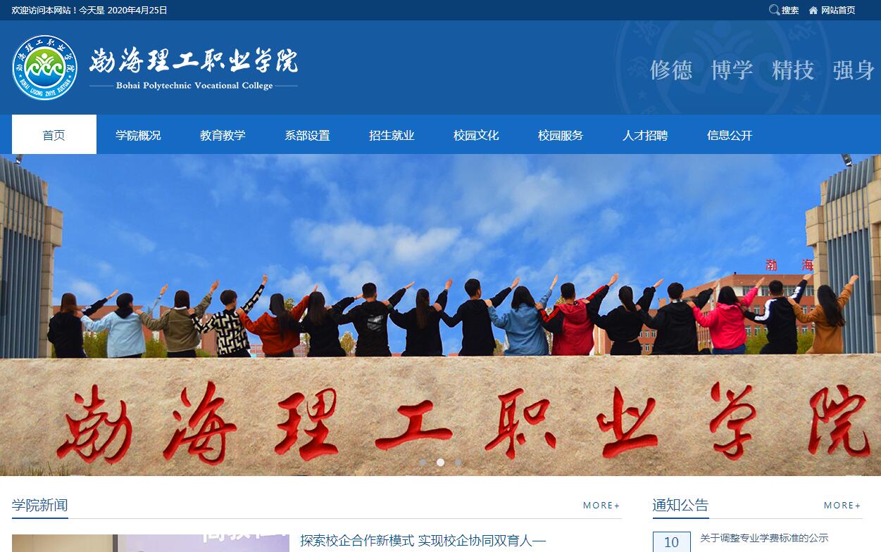 渤海理工职业学院(学院国标代码:14472)是2013年经河北省人民政府批准、国家教育部备案、面向全国招生的全日制普通高等院校。学院位于“环渤海、环京津”美丽的海滨城市河北省黄骅市,占地800亩,建筑面积13.17万平方米,学院环境优美,教学、生活服务设施完备。学院在河北省教育厅2014、2015、2016年度民办学校办学情况检查中连续三年获得“优秀”;2015年被教育部遴选为首批100所“现代学徒制试点”高职院校;被中国石化联合会授予“中国石油和化学工业院校文化建设先进单位”;学院是中国石油和化学工业联合会教育工作委员会委员单位、中国化工教育协会副会长单位、河北省民办教育协会副会长单位;获黄骅市“支持地方发展特殊贡献奖”;院团委获得沧州市、黄骅市“五四红旗团委”等荣誉称号。学院秉承“德技双修、厚德尚能、立德树人、修德精技”的办学理念,依托河北众诚企业集团办学优势,主动适应区域经济发展方式和产业结构调整,依据社会和行业对人才的需求,探索人才培养模式的改革,推行“工学结合、产教融合、双主体育人”以及“现代学徒制”等人才培养模式,学院以培养学生专业技能和职业素养为中心,采取培养目标学年化“三层递进”、分层教学滚动式管理、顶岗实习分段跟进、 校企联合订单培养等模式,取得了良好的教学成果,人才培养质量得到全面提升。2016年承接“河北省高等职业教育创新发展行动计划(2015-2018)实施方案”9个项目。学院目前设有四系一部,即建筑工程系、机电工程系、经贸管理系、信息工程系、基础部。开设有汽车营销与服务(服务销售方向)、电气自动化技术、电子信息工程技术、工程造价、会计、休闲服务与管理、电子商务、汽车检测与维修技术、汽车车身维修技术、房地产经营与管理、建筑材料工程技术、酒店管理、高尔夫球运动与管理、商务管理、物流管理、机电一体化技术、建筑工程技术、物业管理、市场营销、人力资源管理、影视多媒体技术、计算机网络技术、应用化工技术、机械制造与自动化、新能源汽车技术、建筑室内设计、老年服务与管理、移动互联应用技术 、药品生产技术、智能控制技术专业智能制造技术方向、工业机器人技术、城市轨道交通机电技术、城市轨道交通运营管理、旅游管理、城市轨道交通工程技术、高速铁路客运乘务、大数据技术与应用等37个专业,在省内外建有实训基地82个。学院注重学生综合素质培养,德育为先,创新思想政治教育和管理的方式方法,采取准职业人管理模式,致力于培养学生综合素质和职业素养。 学院积极搭建“科技、文化、体育、实践、创新创业”校园活动平台,形成了具有渤海理工特色校园文化活动品牌。近年来,学生在各级各类比赛中取得优异成绩,获得国家、省级多项大奖。学院努力打造优质就业服务平台,建立了覆盖京、津、冀地区的名优企业信息库,与多家企业合作实现订单就业,同时推进创新创业教育,引导学生自主创业,首届毕业生一次就业率99.09%。学院积极发挥人才和资源优势,面向社会开展职业技能鉴定和专业培训,学院与国务院国资委所属职业经理研究中心合作成立“河北省职业经理人培训学院”,为社会提供职业经理人培训服务。学院坚持社会主义办学方向,紧密围绕“质量立校、人才强校、特色兴校”的发展战略,未来将建设成为“特色鲜明、质量优异、社会声誉好、全国一流”的精品特色院校。