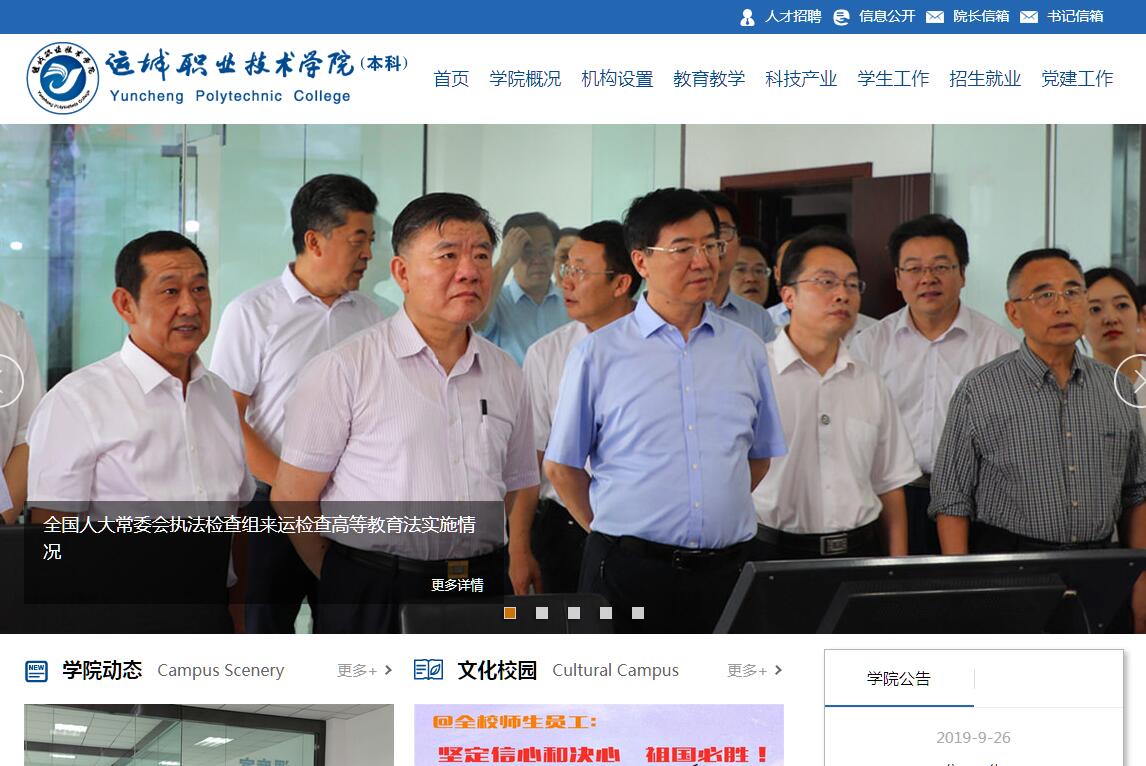 运城职业技术学院是经山西省人民政府批准成立教育部备案的全日制普通高等职业技术学校。在省、市各级领导的高度重视和大力支持下,学院得快速发展,2006年建校,2009年招收首批大专生,2015年获得山西省高职高专院校人才培养质量水平评估“优秀”等级,2018年被省教育厅、省财政厅列为“山西省优质高等职业院校建设单位”。学院由蒲县宏源煤业集团有限公司出资建设,总占地面积3130亩(含湿地1530亩),累计投入资金12.67亿元,已经完成万人大学所需的教学、生活、实验实训及各种活动功能设施建设。目前在校生近5324人,校舍总建筑面积22.48万平方米,教科研仪器设备总值12099.12万元。纸质图书581216万册。设有12个教学系部,开设有煤矿开采技术、机械制造与自动化、汽车检测与维修技术、建筑工程技术、印刷媒体技术、财务管理、物流管理等41个专业。围绕专业群建有95个实验实训室和2个大型生产性实习实训基地。现有专任教师370人,其中具有硕士及以上学位教师184人,占专任教师总数的49.7%;副高以上专业技术职务教师133人,占专任教师总数35.9 %,来自行业、企业的专业技术人员、管理人员和高技能人才114人担任兼职教师,占专任教师总数的30.8%。学院注重校企合作和对外交流工作,与70余家企业建立了紧密合作关系,与台湾圣约翰科技大学、建国科技大学等院校建立了长期合作关系,为学生实训、实习、就业创造了良好条件。建校十余年来,累计培养了1万余名社会急需的应用型技术技能人才,近三年毕业生平均就业率在96.5%以上。学院秉承“做学合一,厚实融通”的校训精神,坚持“以学生未来为本,以教育品质为根,以人格素养为重,以技术传创为主”的办学理念,实施人文、职业、技能“三大素养”培育体系,培养高素质技术技能型人才。,近五年获得省级以上各类奖项216个,其中国家级奖项30个。学院重视提高教师的科研能力,近年来,教师承担省级以上课题50项;获得专利84项,获省级以上教学科研成果奖9项;出版教材102部,发表论文694篇,其中SCI收录1篇,EI收录3篇,核心刊物发表36篇。学院紧紧围绕运城产业结构调整和黄河金三角区域经济发展实际需求,专业设置以工科为主,同时面向新兴战略产业发展培育新专业,在优化煤矿及装备制造类专业群的同时,重点打造健康及老年管理类、文化及旅游服务类两大专业群,与运城学院错位发展。在认真办好学历教育的同时,大力开展各类社会培训,近3年开展国家煤监局师资、山西省煤炭厂矿长工段长安检人员等培训累计74513人次。投巨资建设的集教学、科研与培训为一体的现代化教学矿井被上海大世界基尼斯总部认定为“中国之最”,教学矿井与西安煤科院、常州煤科院、中国矿业大学、西安科技大学、河南理工大学等高等学校和科研院所开展教学科研项目合作,同时也为省外煤炭类院校提供实习服务,运行四年来共接收省内外9所院校师生井下实习4万余人次,校内学生井下实习12万余人次。目前,学院是运城市先进制造业职教集团牵头单位,被认定为国家级煤矿安全培训基地、国家级职业教育师资培训基地、国家级技能大赛赛务基地,全国现代学徒制试点单位,清华大学“积极心理学中国职业教育实践基地”、清华大学“中国职业教育与精准扶贫研究中心”共建单位。学院在不断探索民办高职院校改革与发展的过程中,坚持公益性、非营利性原则,“十三五”期间计划再投入5亿元,用于基础设施建设和学科、专业建设,努力建成一所特色鲜明的高水平应用技术大学,为区域社会发展提供有力的人才和技术支持。