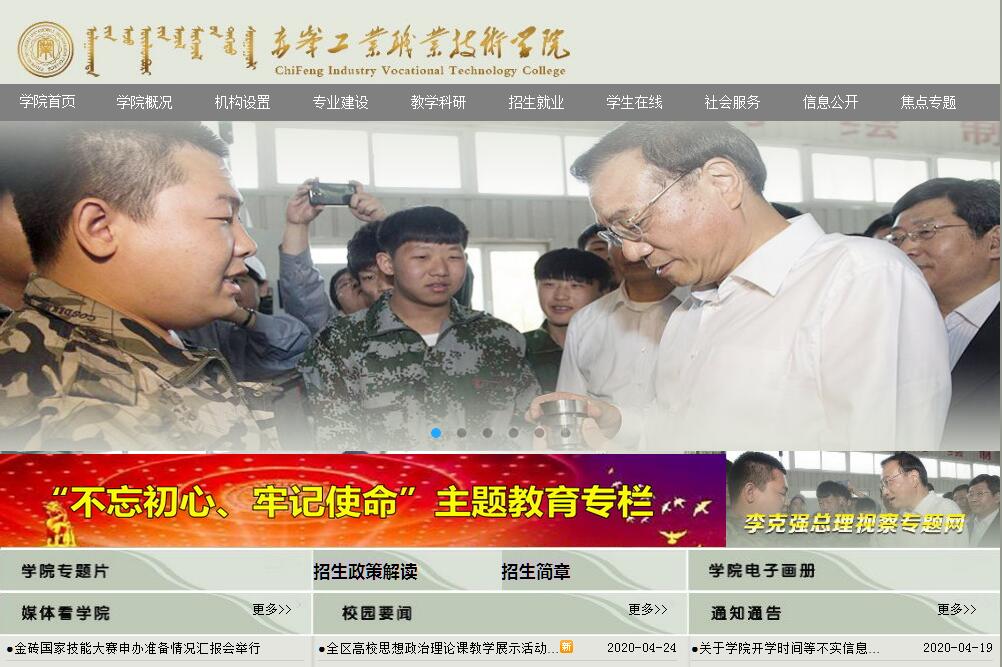 赤峰工业职业技术学院,前身是1958年建立的昭乌达盟农牧机械化学校。1988年,改建为“内蒙古纺织工业学校”, 2004—2005年,将赤峰市粮食职工中等专业学校、赤峰财经学校、赤峰民族技工学校、赤峰黄金技工学校并入学校,2010年经自治区政府批准晋升为赤峰工业职业技术学院,2014年6月,挂牌成立内蒙古民族工业技师学院。学院位于赤峰市新城区,占地503亩,建筑面积约13万平方米,在校生近8000人,教职工510名。学院以全日制高等职业技术教育为主,中等职业教育和技工教育为辅,同时开展继续教育、职业培训和技能鉴定。学院是国家级高技能人才培训基地,是赤峰工业职业教育集团牵头单位;2015年,学院以中科院院士闻邦椿教授为专家建立院士工作站。是国家职业技能鉴定所,是赤峰市特殊工种培训鉴定机构,是赤峰市科技局推进赤峰地区产学研用结合合作校,是赤峰市12个旗县区工业园区人才培训基地、赤峰市农村劳动力输出培训基地。目前,学院设有机械与自动化系等八个教学系部,共开设25个高职专业,40多个中职专业。通过多年的努力,已形成以机械、电力、冶金、矿山、能源、化工、建筑、财经为主体的专业体系。拥有大型实习实训车间13个、实验室59个、校外实习基地40多个,实训教学面积约3万平方米。其中斥资600多万元购置的4台五轴联动数控加工中心,是自治区高校中最先进的数控实训设备。学院建有标准草坪运动场和综合体育馆,拥有藏书和电子图书近40万册,职业教育视频资源近千集。