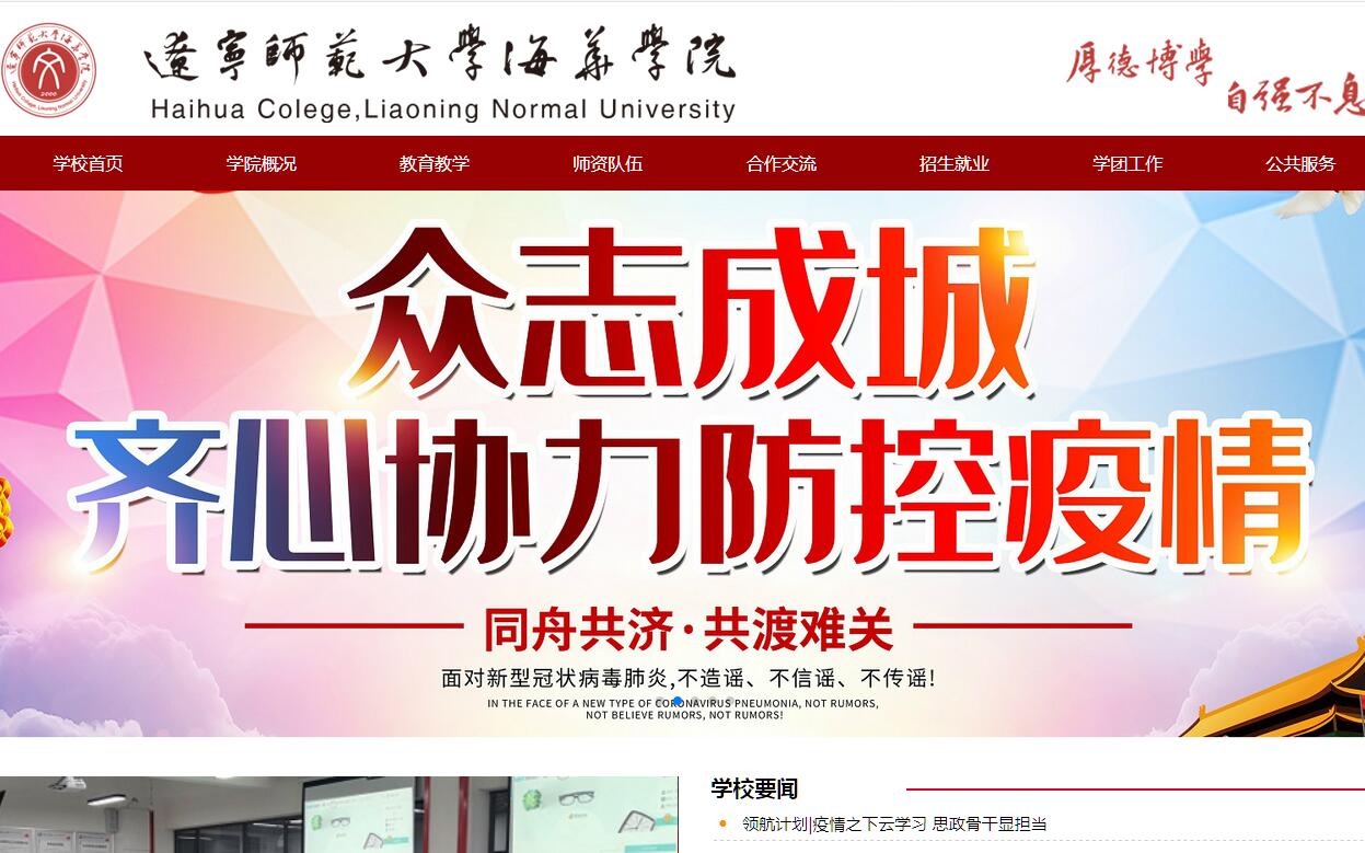 辽宁师范大学是一所省属重点大学,坐落在中国美丽的海滨城市——大连,是辽宁省“双一流”建设国内高水平大学重点建设高校。辽宁师范大学海华学院是2000年7月经辽宁省教育厅批准成立、2003年12月教育部首批确认由辽宁师范大学按新机制和新模式举办的全日制普通高等院校(独立学院),在校生7400多人,教学科研仪器设备总值2519.3万元。图书馆藏书40.0万册;专任教师380人,其中正、副教授占30.16%、硕士学位以上教师占76.7%。近年来,教师队伍科研成果丰硕,先后获辽宁省社科基金项目等省、市级科研、教研项目158项,院级课题52项,出版教材、专著80余部,发表学术论文740余篇,获得国家知识产权局实用新型专利授权3项,实现科技成果转化2项。学院设有法学、文学、工学、管理学、艺术学等5个学科门类,开设14个本科专业;在全国18个省、自治区招生。学院特色办学、创新发展、优势明显。学院传承辽宁师范大学优良传统,秉承“厚德博学、自强不息”的校训,坚持与时俱进、不断创新,以“十九大”精神和习近平新时代中国特色社会主义思想为指导,以立德树人为根本任务,以培育和践行社会主义核心价值观为主线,以服务国家经济发展为重点,以培养全面发展的高素质应用型人才为目标,深化教育教学改革,加快向应用型院校转变,不断提高人才培养质量。把培养学生科学精神和人文精神相融合,突出学生实践动手能力的培养,校企合作,聘请行业知名专家任教,创建2000多平米的创新创业孵化基地,加强学生创新创业教育和实践,向创业项目成熟的团队免费提供场地。近两年学生获得各类职业资格证书2398个,发表学术论文805篇,参加各种创新创业竞赛活动获省级以上奖励90多人次。学院坐落于美丽的滨海旅游名城大连市庄河,有著名的冰峪沟国家4A级旅游度假区和天门山、步云山国家森林公园;风景秀美,气候宜人,交通便利;校区建筑新颖,时尚典雅,外海内湖,荷塘月色,宁静安全,是莘莘学子求学的理想选择。学院教学、文体、生活设施完善配套,有一流的图书馆、教学楼、多媒体教室、计算机教室、语音室、专业实训室、模拟法庭;有能够承办甲A联赛的足球场和大型国际赛事的田径场、体育馆、大学生活动中心、礼堂等文体活动场所;生活区内餐饮、洗浴、健身、超市、快递一应俱全,学生公寓电视、空调、网络、淋浴等设施齐全。学院实行弹性学制,在校应征入伍、创业的学生按国家政策给予保留学籍;学生第一学年符合相关规定可申请转专业;学院设立了多种奖、助学金和勤工俭学岗位。学院设有就业指导中心,与北京、沈阳、大连等经济发达地区的100多家企、事业单位以及国外教育机构建立就业实习基地,为学生提供广泛的就业渠道和发展机会。近两年毕业生有300人考取硕士研究生;毕业生就业率连年达90%以上。学院积极构建国际交流与合作平台,与日本、韩国、泰国、美国等国家的多所大学、科研机构建立了交流合作关系,学生可以选择到国外教学实践就业基地实习,也可以选择到交流合作的大学攻读硕士研究生。