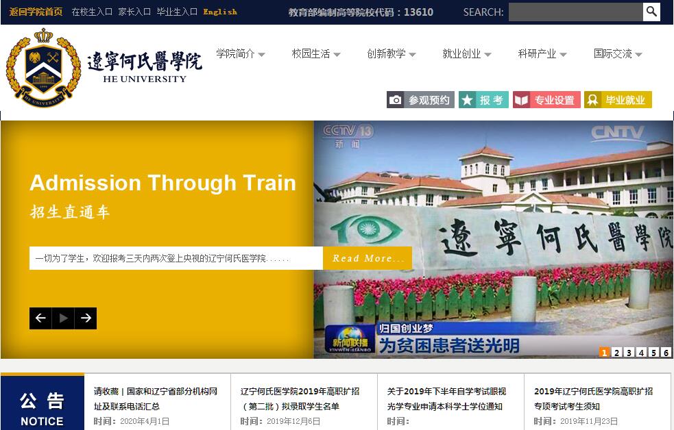 辽宁何氏医学院是经教育部批准设置的普通本科高校,位于沈阳市浑南新区。学校设有生命科学学部、精准医学学部、视觉艺术学部开展本科生教育,设有卫生职业学院开展专科生教育,设有国际教育学院开展留学生教育,设有继续教育学院开展自考、成人考试等继续教育,并与大连医科大学等联合培养临床医学硕士研究生。学校开设临床医学、护理学、医学影像学、医学影像技术、听力与言语康复学、应用心理学、眼视光医学、眼视光学、食品卫生与营养学、医学信息工程、生物医学工程、药学、制药工程、药事管理、公共事业管理、视觉传达设计、公共艺术、环境设计、产品设计等22个本科专业,医学美容技术、康复治疗技术、助产、眼视光技术、护理等6个高职专业。现有全日制在校生8000余人,面向全国23个省市招生。学校紧密围绕国家健康医疗服务业及区域经济社会主导产业战略需求,坚持科教融合的产学研一体化办学特色,实现专业与产业的无缝对接,重点打造视觉科学特色学科专业群,深入推进本科教学质量工程建设,扎实开展通识教育、PBL教学法、拔尖创新人才培养等教学改革探索,开设英语班、日语班、卓越人才班、华大基因创新班等,逐步完善以培养学生创新精神与实践能力为导向的研究性课程与教学体系,实行全程、全员创新创业教育制度,成立了全国首家以大学生为股东的创业公司——大学生创业梦工场,旨在培养“厚基础、宽口径、重实践、显个性”的高素质应用型人才。曾荣获全国民办高校创新创业示范校、沈阳高校创新创业工作先进集体、沈阳市高校毕业生就业创业工作先进单位、沈阳市促进高校毕业生就业突出贡献企业、辽宁省大学生创新创业示范校、辽宁省创新创业实践教育基地等称号。学校聘任了近百位两院院士和国际知名学者为客座教授、名誉教授、名誉院长,组建了一支学术坚实、结构合理、具有较大学术影响的学术团队。现拥16家专科教学医院(眼科)、60余家眼视光中心以及多家综合性临床教学实习医院,创建了中国眼产业基地、国家基因库眼基因库,牵头成立了包含60余家理事单位的辽宁省眼产业校企联盟。先后获批了国家防盲治盲培训基地、国家药物临床试验管理规范实验室、国际科技合作基地、国家地方联合实验室、中欧眼脑医学中心、眼科干细胞临床应用研究中心、院士工作站、博士后创新实践基地、海归创业者学院、全球硅谷创业者学院、等高水平科研与教学、创新创业教育平台,是国际眼科理事会(ICO)顾问委员会成员单位 、国家卫计委防盲技术指导组副组长单位。与法国里昂第一大学、日本国立九州大学、荷兰埃因霍温科技大学、马来西亚南方大学学院、韩国乙支大学、中科院上海药物研究所、清华大学等多家高水平科研院所建立学术合作与交流友好关系,互派师生学术交流开展国际合作研究。学院以“梦想、感恩、学问、坚毅、结果”为院训,坚持“一切为了学生”的宗旨,发挥“医、教、产、学、研一体化”平台优势,培养理性思想、独立人格、自由精神、知行合一的民族复兴人。