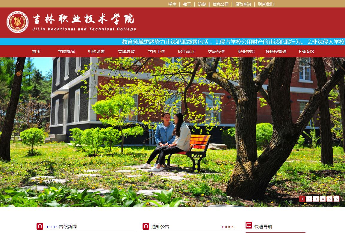 吉林职业技术学院是经吉林省人民政府批准、教育部备案的全日制普通高等职业院校,地处有“全国民族团结进步模范自治州”、“中国十佳冰雪旅游城市”美誉的延边朝鲜族自治州,位于长吉图战略发展核心地带,山环水绕、物华天宝,拥有亚洲最大的苹果梨基地;民俗文化独特、底蕴深厚;交通便捷、四通发达,拥有国际国内航线、高速铁路、高速公路,到省会长春乘坐动车仅需两小时;设有国家重要边境口岸和商品进出口基地;毗邻俄朝两国、日本海,具有突出的区位优势、良好的基础设施、较强的产业和科技支撑。吉林职业技术学院西邻国家级4A级景区琵岩山风景区,南望两岸稻花香的海兰江,校区内松杉叠翠、环境优雅,教学、生活、服务功能区兼备,拥有高素质的师资队伍和先进配套的教学设施,建有先进的图书馆、实习实训基地、数字化校园网络、体育设施等,为学生提供优质的学习条件和优美的生活环境。立足延边、面向吉林、辐射全国、为长吉图开发开放先导区及地方经济社会发展服务,坚持培养具有较强职业技能、实践动手能力和创新创业精神的高素质技术技能型人才的人才培养目标定位。吉林职业技术学院立足于服务地方经济建设,着眼于学生终身可持续发展,学院现开设32个专业,涵盖10个专业大类,主要对接现代服务业,培养生产服务第一线的技术技能型人才。学院坚持实施人才强校战略。启动“内培外引”的人才工程,建立了一支以专业带头人为骨干、以中青年教师为中坚、专兼结合、结构合理的高水平“双师型”教师队伍。我校在读学生及毕业生可以通过国际合作交流平台进行十多种形式的长短期交流,学生亦可选择赴境外攻读本科学位、硕士研究生、博士研究生。