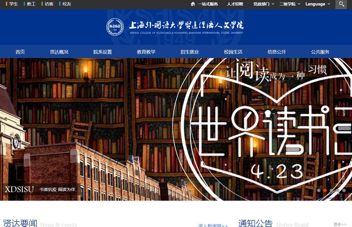 上海外国语大学贤达经济人文学院系国家教育部2004年批准的上海首批全日制本科独立学院,由上海外国语大学和上海贤达投资有限公司合作举办。学校现有虹口、崇明两个校区,虹口校区地处市区东北部,毗邻上海外国语大学;崇明校区地处崇明区陈家镇,托斯卡纳风格的优美建筑与特有的生态环境相得益彰。学校依托上海外国语大学雄厚的师资力量以及外语教学与研究等方面的优势,构建以语言、经济类学科为重点、其他学科(专业+英语)协调发展的学科专业体系。目前开设涉及文学、法学、经济学、管理学、教育学和艺术学6大门类23个本科专业,现有全日制本科在校生7000余人。学校坚持以服务学生发展为己任,以传授人文与经济相融合的知识为特色,积极开展教育教学改革。2018年起,学校实施“英才培养实验计划”,配备高层次导师队伍,为品学兼优、具备发展潜质的学生脱颖而出提供给更优越的成长条件和更广阔的发展空间。学校尊重学生的学习差异,实施全英语、双语分班教学,有针对性地提高学生的外语能力;同时,尊重学生的学习愿望,参与东北片(复旦大学、上海财经大学等)高校合作办学,为学生辅修、选修课程创造条件。学校注重实践教学,强化学生应用能力培养,先后与东方国际集团、现代建筑设计集团、锦江旅游集团、用友新道、尚清实业、日本伊藤忠物流、松下电器、携程国际旅行社等知名企业建立校企合作关系,开展专业实习实训,培养高素质的复合型、应用型人才。学校坚持开放办学、走国际化教育之路,积极引进国内、外优秀高等院校的先进教育理念和管理模式,先后与美、英、法、德、西、瑞士、澳、日、韩、埃及、新加坡、中国香港、台湾等13个国家和地区的40余所知名高校建立了稳固的友好合作关系。学校通过学分互认、带薪实习、公费交流生项目、政府奖学金项目、双学士学位和本硕连读等项目为学生提供多种出国学习多元文化和锻炼的机会,拓宽国际视野,提高跨文化交流沟通能力。近5年来,平均每年有15%左右的学生前往美国加州大学伯克利分校、纽约大学、英国剑桥大学、伦敦大学等国外知名大学就读研究生。目前学校正以其崭新的办学模式、灵活的办学机制、丰富的办学资源和内在的发展潜力,立足上海、面向全国,积极创建有特色、高水平应用技术型大学。