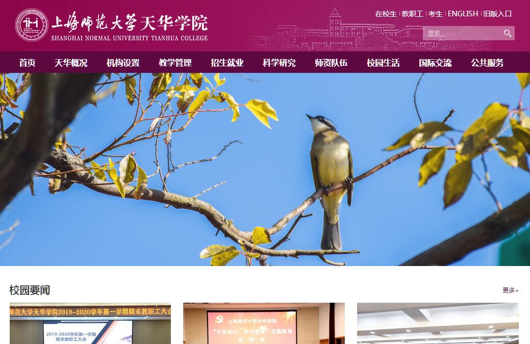 上海师范大学天华学院(Shanghai Normal University TIANHUA College)于2005年4月经国家教育部批准建校,是一所全日制本科院校,独立招生,独立颁发毕业文凭,符合要求的学生按国家有关规定颁发学士学位。学校位于上海、江苏和浙江三省交界之处——上海市嘉定区,与上海市区有地铁11号线相通,随着城际高速铁路的建成,学校与长三角及全国的大中型城市的交通十分便捷。学校占地500亩,建筑面积21万平方米,教学设施先进,运动场地宽敞,校园环境优美,四周天然河道环绕,绿化面积达10万平方米,常年绿树掩映,花草芬芳,是大学生理想的学习场所。学校设有工学、管理学、文学、教育学、理学、艺术学、经济学7个学科,目前有机械设计制造及自动化、汽车服务工程、交通运输、电子信息工程、计算机科学与技术、通信工程、网络工程、机械电子工程、旅游管理、国际商务、物流管理、财务管理、金融数学、互联网金融、英语、日语、德语、环境设计、视觉传达设计、数字媒体艺术、学前教育、小学教育、艺术教育、应用心理学、汉语国际教育、汉语言文学、康复治疗学等27个专业,截止2018年9月底在校全日制本科学生9650人。天华学院是上海市文明单位、上海市花园单位、上海市平安单位、上海市综合治理先进集体,荣获教育部高校校园文化优秀成果奖、中国民办高等教育优秀院校;学院党组织先后被评为教卫党委系统先进党组织,市委组织部授予“两新组织五好党组织”。2012年,学院党委被评为上海市创先争优先进基层党组织,上海市先进社会组织。2014年,被评为上海市5A级社会组织。2016年,学校获评上海市语言文字工作先进集体、上海市征兵工作先进单位,党委获评上海市教卫党委系统先进基层党组织。天华学院的发展定位为:建设以教育类、工科类和健康类专业为主体、文理和经管为两翼、多学科协调发展的国内一流、特色鲜明的应用技术型民办本科院校,坚持走文化立校的育人之路,形成鲜明教育国际化特色,培养“专、通、雅”协调发展,富有竞争能力的应用型人才,适应上海及长三角地区的初等教育、先进制造业和现代服务业发展对人才的需求。基于未来的目标定位,又经历十年探索之路,学校逐渐形成自身的发展理念:建设文化天华、特色天华、责任天华、活力天华。
