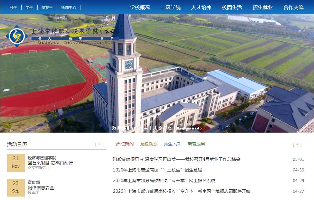 上海中侨职业技术学院(Shanghai Zhongqiao College),位于上海市,创建于1993年,是经上海市教育委员会批准筹建的一所现代化、规范化、国际化的全日制民办高等院校。2002年4月,经上海市人民政府批准,国家教育部备案,在中侨学院基础上成立了“中侨职业技术学院”,经教育部批准纳入国家统一招生计划,并具备独立颁发文凭的资格。2015年入选国家首批现代学徒制试点单位。学院坐落在上海金山张堰镇,规划占地500余亩,全欧式建筑,软硬件设施齐全,绿化覆盖37%以上,适宜6000余名师生在校学习生活。学院投资方为全国民营百强企业上海致达科技集团有限公司,集团董事长严健军兼任中侨学院董事长,新任院长由原金山区教育局局长蒋志明教授担任。中侨学院紧紧围绕着“特色”做文章,具体概括为“特色中侨”。由经济与管理学院、信息与机电学院、建筑工程学院、外国语学院、食品学院、艺术学院等6个二级学院,加上原有的护理与健康学院、基础部(思想理论课教学部),全校形成由7个二级学院和1个教学部组成的教学单位新格局。前期,五系已初步形成各具特色的文化,即外语系的“精致文化”、艺术系的“创新文化”、技术系的“笃实文化”、管理系的“细节文化”、经济系的“博弈文化”。学院已逐步形成“勤学好问、博览多思”的学风及“踏踏实实教学,勤勤恳恳育人”的教风。校区已整体搬迁至上海金山张堰镇,力争三年把部分专业试办成本科,五年内建成本科高职院校。