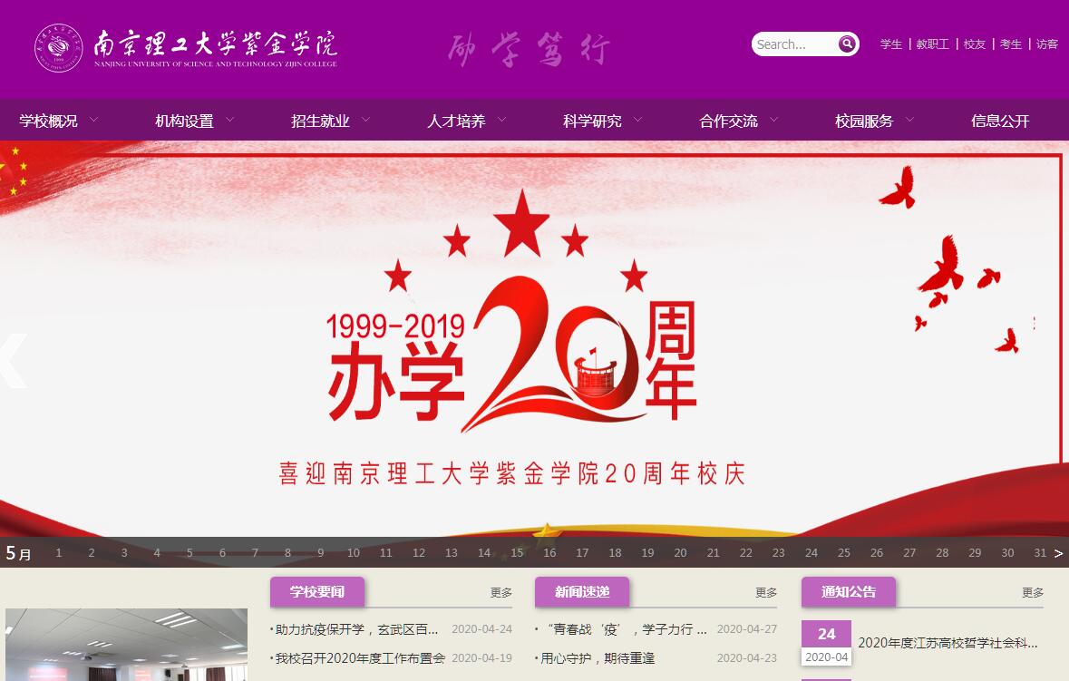 南京理工大学紫金学院成立于1999年,2004年经国家教育部批准改制为本科层次的独立学院,由南京理工大学联合社会力量举办。南京理工大学隶属于国家工业和信息化部,是一所治学严谨,师资力量雄厚,以工为主,理、工、文、经、管、法、教等多学科综合配套、协调发展,国家首批“211工程”和“985工程优势学科创新平台”建设学校,建有研究生院的全国重点大学。南京理工大学负责指导学校各专业教学计划的制定和实施,负责选派、推荐和审定各专业核心课程教师并负责教学质量监控。学校充分依托南京理工大学的优质教育资源和办学优势,致力于培养“基础扎实、知识面宽、实践能力强,具有创新意识和创新精神、人文精神与科技素养相结合”的应用型、复合型、高素质专门人才。学校坐落于南京城东紫金山麓仙林科技城,这里汇聚了南京大学、南京师范大学、南京邮电大学、南京财经大学、南京中医药大学等12所高校,人文氛围深厚,自然风光秀丽,距离市中心十多公里。学校每天有班车往返于本校和南京理工大学之间,单程仅需二十分钟。地铁二号线缩短了学校和举办校、市中心的物理距离,仙林科技城内开通了微循环巴士,学校优越的区位优势和便捷的交通条件,使得学生的学习生活大环境更加舒适。学校校园占地613亩,按照高起点、高水平目标,科学规划,规范建设,目前已建成教学生活用房20多万平米,教学生活设施一应俱全,为学生学习发展、健康成长提供优良的条件。学校现设有机械工程学院、电子工程与光电技术学院、计算机学院、经济管理学院、人文与社会科学学院等五个二级学院,28个本科专业,在校生万余人。学校聘请南京理工大学知名教授作为学科专业带头人和骨干教师,引进培养具有博士、硕士以上学位的专职教师,聘请行业、企业专家担任校外专业导师,建成了一支专兼职相结合、教学水平高的优质师资队伍。围绕高级应用型人才培养目标,学校积极探索改革创新之路,深化产学研结合与校企合作,建成的基础、专业教学实验设备先进,工、经、管、文、法各类实验室功能齐全,在充分依托南京理工大学优质教育资源的同时,先后与思科、德州仪器、飞思卡尔等国内外知名企业联合建立实验室,在中电五十五所、南汽集团、南京汽轮电机集团等企业建立起一大批校外实习基地,开展生产实习、企业课题研究,开发大学生创新实践项目等合作。学校在大学生科技创新创业活动中,屡次获得江苏省大学生创新创业“最具潜力项目”等殊荣;在各类国家、省级学科专业竞赛与科技创新大赛中成绩优异,全国特等奖、一等奖等高层次奖项屡见不鲜,近五年来共获得国家级奖项70余项,省级奖项90余项,获奖总人数超过千人;毕业生就业率、考研率、出国深造率均在同类院校中名列前茅。学校重视国际交流与合作,视之为应用型人才培养改革和提升教育质量的重要途径。学校先后与美、英、德、加、日、澳等国及台湾地区近30所高校建立了国际友好交流与合作关系,在学分互换、奖学金留学、交换生及学生暑期交流等方面开展多层次的交流和合作。近年来,学校办学成果显著,社会影响力不断增强。2006年学校获得江苏省“十佳独立学院”荣誉称号,2010年获得“全国先进独立学院”荣誉称号,2014年被新华网评为“中国影响力独立学院”,2017年被腾讯网授予“2017年综合实力独立学院”佳誉。展望未来,南京理工大学紫金学院将秉承 “励学笃行”的校训,发扬“诚信勤奋、求是创新”的优良校风,在人才培养、科学研究、服务社会、文化引领等方面大胆探索、积极改革、着意创新,全体紫金人将同心协力,为把南京理工大学紫金学院创办成一所办学特色鲜明、教育教学质量优良的国内一流应用型本科大学而努力奋斗。