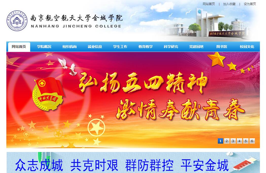 南京航空航天大学金城学院是南京航空航天大学联合社会力量于1999年经原中国航空工业总公司和江苏省教育委员会批准成立的公有民办二级学院,2004年经教育部批准,学校改制为独立学院。学校所依托的南京航空航天大学是一所具有航空、航天、民航特色,以工为主,工、管、理、经、文、法、艺等多学科协调发展,国家“211工程”建设和建有研究生院的全国重点大学。南京航空航天大学对金城学院的教学质量负责,对学校的办学方向、学科专业建设、师资队伍建设、学生教育管理进行指导和帮助。学校坐落于南京市江宁经济开发区,距离南京禄口国际机场约3公里,毗邻正在建设的地铁6号线。学校基本建设规划科学,各种设施配套齐全。校园占地856亩,总建筑面积超30万平方米,在校生13000余人。学校拥有技术先进、设施一流的25000多平方米实验室,实验设备6300台(套)。新建成28700平方米功能完善、藏书丰富、智能化、现代化的图书馆,能够容纳6000名学生同时阅读和学习。学校设有机电工程与自动化学院、信息工程学院、航空运输与工程学院、国际商学院、艺术与传媒学院、基础教学部6个教学单位,30个本科专业及专业方向。学校师资力量雄厚,聘请南京航空航天大学及国内外著名高校的教授作为学科专业带头人,引进培养一批专职教师,建立一支以南京航空航天大学教师为骨干,专兼职相结合、教学水平高的优秀师资队伍。学校基础与专业教学实验设备先进,工、经、管、文各类实验室功能齐全,各专业依托南航,办学基础雄厚。学校重视国际学术交流和教学合作,与美国、英国及澳大利亚等国家的大学长期开展校际交流。学校以区域发展和行业发展需求为导向,创新育人模式,强化实践教学环节,推动教学改革,培养高素质应用型人才。实施因材施教、分层次(机类、电类工科基础强化班、高等数学和大学英语分级教学)、多渠道的人才培养模式,为学生丰富知识、培养才干、锻炼能力提供充分的空间和舞台。学校教育教学质量高,针对优秀生的各种培养措施得力,学生在各类国家、省级学科专业竞赛与创新制作大赛中成绩优秀,获奖人数和奖项等级,以及毕业生的就业率、考研率、出国深造率均在同类院校中名列前茅,在社会上享有良好声誉。我校毕业生年终就业率连续三年超过98%,2017届毕业生就业率为98.65%,协议就业率98.56%。学校的办学成果也得到了社会的认可:2010年,南航金城学院获得全国“首届中国创新榜样”荣誉称号和全国“先进独立学院”荣誉称号。2011年11月,南航金城学院获得江苏省“最受欢迎的独立学院”荣誉称号。2012年4月,作为江苏26所独立学院的杰出代表,中国民办教育研究院江苏分院落户南航金城学院。2015年2月,南航金城学院获得江苏省江苏省民政厅授予的“5A级社会组织”,是唯一一家获得5A级的全省性民办非企业单位,也是全省第一所获此殊荣的独立学院。2015年5月,南航金城学院被授予“江苏省五一劳动奖状”,这也是迄今为止江苏省第一所被授予此殊荣的独立学院。2017年11月,2017新华教育论坛暨新华网第八届“大国教育之声”颁奖盛典上荣获“2017年度社会影响力独立学院”。