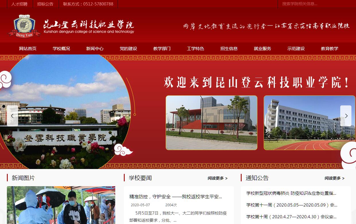 昆山登云科技职业学院是江苏省人民政府批准,由台湾知名人士热忱投资举办的全日制普通高校。学院秉承“诚正、弘毅、奋进、创新”的校训,崇尚“德育为先、能力为重、全面发展”的教育思想,先后荣获“江苏省高等教育综合改革自主试点学校”、“江苏省平安校园”、“中央财政支持实训基地”、“江苏省电子商务人才培训基地”、“苏州市职业教育先进单位”、“江苏省民办高校党建考核优秀单位”、“江苏省示范性高职院校建设单位”、“江苏省“十三五”高等职业教育产教深度融合(汽车工程)实训平台立项建设单位”、“江苏省高水平骨干专业(机电一体化)建设单位”、“全省百佳学生资助工作典型单位”、“江苏省平安校园建设示范高校”等殊荣。学院位于全国百强县之首的昆山市,与昆山高新集团实施混合所有制合作办学,占地面积696亩。东接上海,西邻苏州,地处中国经济最发达的长江三角洲核心地带,区位优势明显,交通十分便捷。区域内拥有台资企业4600多家。“苏南国家自主创新示范区”和“昆山深化两岸产业合作试验区”全面实施产业转型升级,人才需求极为旺盛,为学院的可持续发展和学生就业创业提供了得天独厚的条件。学院现有教职工330多人,全日制在校生近7000人。根据社会需求和服务地方经济的需要,构建了“以应用学科为主体,多学科协调发展”的专业结构。设有机电工程系、汽车工程系、信息技术系、建筑与艺术系、商务管理系、服务产业系等6个系43个专业,实现了学院专业群与地区产业链的深度对接,形成了多方参与,多层次、多形式办学格局。机电一体化技术专业、酒店管理专业、汽车检测与维修技术等一批省级示范高职院重点专业特色鲜明,社会美誉度较高。学院积极实施师资队伍建设工程,不断加大高层次人才引进力度。引入台湾高校、科研机构及知名企业的优秀师资、科研人才,聘用企业工程技术人员兼职任教,创造尊师重教的环境,凝聚广大教师投身教育事业、科学研究和社会服务,提升教学水平、科研能力和人才培养质量。学院现有专兼职教师400余人,其中专任教师227人,“双师型”教师达80%,形成了“师德高尚、业务精湛、专兼结合、校企互通”的教学科研团队。学院创建独具特色的“工学结合专班、校企双主体育人”人才培养模式,成为台商企业技术骨干的摇篮。先后与300多家企业建立了合作关系,与苹果公司和纬创资通合作实施APPLE+雏鹰计划;与通力电梯、友达光电、立讯精密工业、兰博基尼、亨通集团、皇冠集团、沃尔玛、洽兴包装工业(中国)等70多家知名大型企业集团共建教学实训基地;与昆山高新集团深度合作共建(两岸)科教创新基地,培育战略性新兴产业,培养精英高技能人才,促进教育、科技与产业发展;与东南大学成贤学院合作开展高职与普通本科“3+2”分段培养合作项目,为学生搭建了专本无缝对接的人才培养直通立交桥。每年有数百名学子通过“专转本”、“专接本”、“专升本”等方式进入本科院校继续深造。学院融合两岸职业教育先进理念,充分利用台湾教育优势资源,与台湾成功大学、东南大学等高校,台湾中卫发展中心、昆山工研院等科研机构以及两岸众多知名企业,共同构建了两岸产学研协同创新服务平台;与台湾知名高校、两岸台资企业成立“登云两岸产学合作联盟”,辅导产业转型升级,促进“互联网+”等产业技术创新和先进制造业、现代服务业发展,实现了两岸教育链、人才链与产业创新链的衔接,形成了多方参与协同育人的发展格局。利用校内外实训基地,积极开展技术培训、技能鉴定、技能大赛等活动,为大学生和企业职工提供了良好的技术培训服务,实现企业、高校、科研院所等多方共赢,推进两岸教育界、产业界交流合作,共同培养高素质创新人才和技术技能人才。学院建立了一套比较完整的就创业服务体系和就创业指导站,实施学历证书和职业资格证书“双证制”,满足学生学业和就业发展需求,提升创业就业能力。与企业深度合作共建就创业基地126家,不断提高毕业生就业创业竞争力,就业率98%以上,工作半年后岗位晋升率达54%,毕业生对就业工作满意度达96.65%。为国家培养了一大批高技能应用型人才,涌现了一批就业创业能手。学院紧扣时代主旋律,夯实教书育人主阵地,创新文化育人多渠道。做好“人文素养”讲座和非常零距离访谈,做美《登云学工》杂志和《朗读者》栏目,做强专业技能大赛和大学生文化艺术节,大学生的文化生活丰富多彩;心理健康教育和资助育人服务体系完善;大学生活动中心和学生公寓设施齐全,校园环境幽静美丽,学习生活便利温馨。学生的人文素养和职业情操得到全面、系统、多层次发展。围绕国家经济社会发展需要,确立“立足昆山,服务台企,面向江苏、辐射长三角”的办学定位和“公益性、国际化、应用型”的办学方针;坚持“以人为本、学生优先”,“按照教育教学规律和市场经济规律办学”,“服务地方、服务企业、服务发展”的办学理念;实现“优秀办学条件、优秀师资队伍、优秀管理水平、优秀教学质量”的奋斗目标;实施“人才强校”、“政行企校合作”、“特色品牌”、“科研兴校”、“开放式与国际化”的发展战略,把学院建设成为助推区域经济社会发展和“强富美高”新江苏建设,服务国家