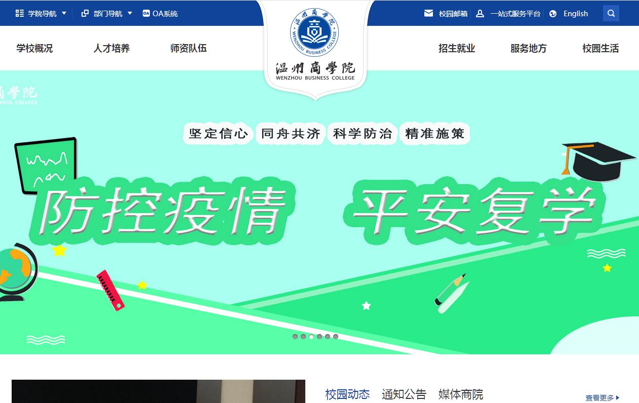 温州商学院是目前浙南地区唯一一所商科类本科院校,前身是被誉为中国高水平独立学院的温州大学城市学院。现任校长为中国社科院原副院长、国家金融与发展实验室理事长李扬;名誉校长为原中共中央委员、中国社会科学院原常务副院长、国家商务部政策咨询委员会主任王洛林教授。温州商学院是国家教育体制改革试点院校,已获批列入浙江省新增硕士学位授予立项建设单位,现正与中南财经政法大学合作培养硕士研究生。温州商学院以商科为办学定位,构建以经济学、管理学为主,工学、文学、艺术学等协调发展的学科专业体系。23个本科专业和5个专科专业充分考虑学生就业需求,紧密对接温州国家金融综合改革试验区浙南现代服务业与港口物流中心和温州时尚化发展战略培养社会所需人才,近三年毕业生平均就业率达95.42%。学校拥有一支:结构合理、精干高效、素质优良、专兼结合的师资队伍。专任教师中副高以上专业技术职务占30%;研究生学历占64%。构建三百引智工程,柔性引进100名著名学者、100名企业家和100名业界专家担任学校特聘教授、兼职教授、客座教授,为学生提供最专业的学科知识技能和最前沿的学科信息动态。学校建有经济管理、信息工程、艺术设计、英语及基础5个实验教学中心共49个专业实验室、11个基础实验室。其中经济管理实验教学中心被列为温州市高校实践教学示范中心,经济管理、信息工程实验教学中心为省级合格实验教学中心。建有72个校企合作实践教育基地,开设期货订单班、浦发银行班、阿里巴巴特色班等校企合作定向实践班。学校紧紧围绕国家深化高校创新创业教育和推进应用技术型高校建设的战略部署实施建设,设有国家金融与发展实验室温州研究基地、温州乡学院、温州“两个健康”研究院、“一带一路”温商研究中心、浙江省汽摩配技术创新服务中心、温州新金融研究院等15个科研机构,以区域经济、民间金融、中小企业发展、创业教育为主要研究方向。学校将职业生涯发展教育、创新创业教学体系和浙商孵化园创业实践平台融于一体,设立创业学院,全方位培养学生创新创业能力。通过各学院创业工作室-学校浙商孵化园-社会创业平台三级孵化机制,助推学生创新创业。我校学生在第十四届挑战杯全国大学生学术科技竞赛中荣获一等奖,并多次获浙江省挑战杯一等奖、职业生涯规划大赛一等奖,毕业生创业率高达8.06%,位居全省本科院校第2名,走出众多优秀创业校友。学校注重爱心教育、责任教育,鼓励学生多元化发展。素质教育平台爱心专列号足迹遍布省内外,援助 5000余人次。拥有浙江省十佳社团绿豆环保组织、汉歌行协会、跆拳道协会。学生志愿者更是连续三年为全省90条母亲河做体检,使全省水质得到显著改善,此举获得时任浙江省委书记夏宝龙的亲笔来信肯定。国际化是商学院未来办学定位与特色之一。学校以国际化视角,创新学校人才培养模式,更新教学观念,改革教学方法。学生通过体验式学习,在享受优质国际化教学资源的同时,将中外学术交流、专业提升、思维碰撞,实现思维创新与专业素养的进一步提升。学校设有国际学院,携手国际大学联盟进行合作办学,已与三十多所海内外知名院校,如墨尔本大学、悉尼大学、伦敦大学、约克大学、爱丁堡大学等建立合作关系。中外联合培养项目,如国外短期学习、带薪实习,毕业生出国深造等项目的开展,使受益学生逐年增加,每年通过校际互访、师生交流、海外短期学习或带薪实习的开展,不断促进学校的国际化办学水平。学生可以通过4+1、3+1+1、2+2本硕连读国际班,无缝对接,进入世界名校继续深造,目前在读人数500多人。