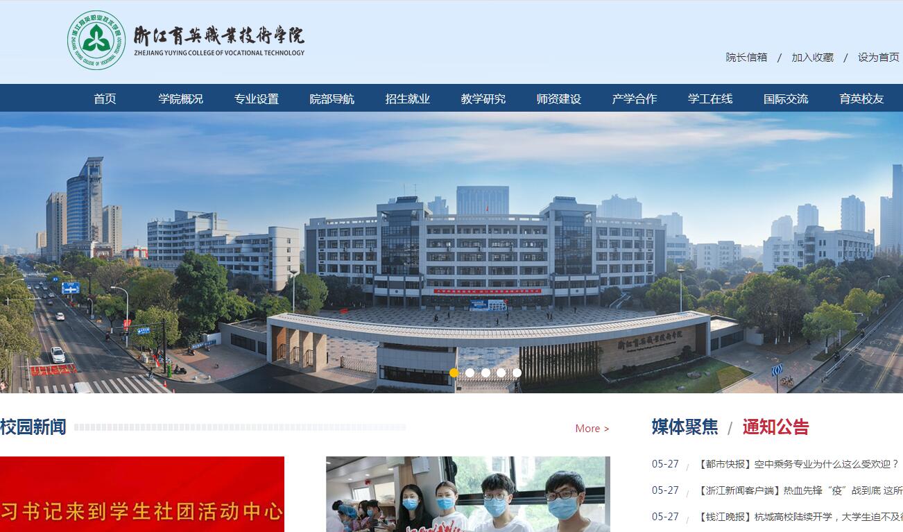 浙江育英职业技术学院经浙江省人民政府批准,创办于1998年,是第一所进驻下沙的高校。学院地处钱塘江畔、国家级经济技术开发区和下沙高教园区,区域环境得天独厚,现有民航交通、信息技术、商务贸易、经济管理、创意设计、继续教育6个分院,社科部、体艺部2个部。学院以“厚德载物,自强不息”为校训,立足下沙、大江东,融入杭州都市经济圈,面向浙江全省,为现代服务业培养全面发展的具有优势品质与技能的高素质应用型职业人,开设了空中乘务、直升机驾驶技术、轨道交通管理、计算机应用、电子商务(含跨境电商)、国际经济与贸易、酒店管理、广告艺术设计、会展策划与管理等25个专业,在校学生7000余人,累计为国家和社会培养合格毕业生25000余人。学院坚持以高素质应用型人才培养为核心,围绕“职业人”优势职业品质与技能,设计人才培养方案,主动适应市场需求,不断深化高校与政府、企业、社区全方位合作,以技术服务产业持续发展,以培训服务公民终身学习,以文化服务社会文明进步,积极推进教育国际化,加强与发达国家(地区)高校交流合作,不断提高人才培养质量,朝着“人文、精致、开放、活力”特质的建设目标不断奋进,逐渐形成专业建设、人文教育、体育运动、社会服务和党的建设等优势特色,办学整体水平不断提升。学院获得全国先进社会组织、全国民办非企业单位自律诚信建设先进单位、全国民办教育先进集体、浙江省文明单位、浙江省社会治安综合治理先进集体、浙江省先进基层党组织、浙江省5A级社会组织、浙江省高校平安校园、浙江省无偿献血促进奖、浙江省优秀志愿服务集体等90余项荣誉。学生获得的主要成绩有:第九届中国青少年科技创新奖、“挑战杯”全省高职高专学生创业创新大赛特等奖和最佳风采奖、浙江省大学生程序设计竞赛大专组特等奖、浙江省大学生职业生涯规划大赛一等奖、浙江省大学生运动会总团体冠军、全国大学生全明星篮球团体赛亚军、浙江省大学生运动会田径比赛团体第一、武术比赛团体第一、网球比赛团体第一,舞蹈比赛一等奖等。