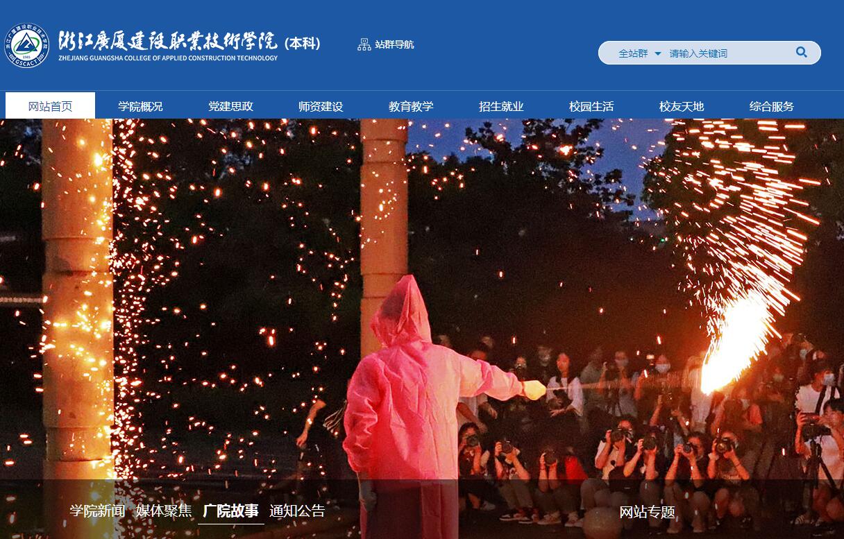 浙江广厦建设职业技术学院(本科)是在原金华城乡建设学校和浙江广播电视大学东阳学院基础上组建,2003年4月经浙江省政府批准,教育部备案正式建校。为贯彻落实《国家职业教育改革实施方案》,优化浙江省高校布局和职业教育结构,满足建筑行业对高层次技术技能人才的迫切需求,2019年12月26日,经浙江省政府推荐,教育部批准,学院升格为本科层次职业学校,开展本科层次职业教育试点。学院是全国第二批,浙江省第1所,也是唯一1所的全日制职业本科院校。学院地处浙中金义都市区,坐落在素有“教育之乡、建筑之乡、工艺美术之乡”美誉的省级历史文化名城东阳市。现下设6个二级学院,在校生8000余名,现有教授32名、副教授149名。学院环境优美、设施一流,建有现代化的教学楼、实验实训室、篮球馆、田径场、文体中心、图书馆和各类生活设施,校园信息化条件优良。办学以来,习近平、张德江、夏宝龙等领导同志先后视察学院。学院获全国职工教育培训优秀示范点、全国特色教育示范单位、中国社会组织评估等级5A单位、浙江省文明单位、浙江省平安校园、浙江省教科研先进集体及浙江省高校实验工作先进集体等荣誉称号,同时被教育部和建设部列为建设行业技能型紧缺人才示范性培养培训基地,并设有建设行业特有工种国家职业技能鉴定所。学院坚守“服务区域发展,培育一流技术人才”的办学使命,秉承“自强不息、执着攀登”的精神,坚持“学生为本、育人为要、质量至上、特色为重”的办学理念。紧密依托学院投资方和区域产业的优势,形成了以土木建筑大类专业为龙头,先进装备制造、电子信息类、财经商贸及文化艺术大类等专业协调发展的专业格局。现开设专业30个,其中建筑工程技术、工程造价为国家级骨干专业、省十三五优势专业;建设工程监理、建筑经济管理、机电一体化技术、国际经济与贸易、雕刻艺术设计为省十三五特色专业。拥有全国职业院校民族文化传承与创新示范专业点1个,省级非物质文化遗产传承教学基地1个、省级精品课程7门,省级精品在线开放课程5门,获国家级教学成果奖二等奖1项,浙江省教学成果奖一等奖2项。获教育部规划基金项目2项、省科技进步一等奖1项。学院始终贯彻落实党的教育方针,以立德树人为根本任务,遵循职业教育发展宗旨和规律,强化素质教育和实践能力培养,积极推进产教融合校企合作,推行现代学徒制。与“中国BIM技术研发应用的领航者”上海鲁班软件有限公司合作成立“鲁班学院”,并开设“鲁班BIM精英班“,与广州汽车集团乘用车(杭州)有限公司合作开办“广汽传祺高端班”,以及其它28个特色班。联合顺丰速运、义乌国际品牌联盟、言几又文创品牌等5家企业打造浙江省内首个“店长商学院”。与杭州新中大科技股份有限公司、深圳国泰安教育技术有限公司等企业共建“财税信息化实验室”“虚拟现实协同创新中心”等具有行业前瞻性的产学研中心。2011-2018年,学院获得各类专利数达653项。学院拥有国家级生产实训基地3个,国家级大师工作室1个,中央财政支持实训基地1个、高等职业教育省级示范性实训基地建设项目4个、省级非物质文化遗产传承教学基地1个,专业工作室20个,以及各类校内外实训基地242个。学院开设有多样的创业创新课程,每年组织院级“互联网+”创新创业大赛、职业生涯规划大赛和“挑战杯”课外学术科技作品竞赛等。并在校内设有学生创业园,为学生提供创业实践平台,充分发挥孵化和扶持功能。学生在国家级和省部级技能竞赛中获奖1000多项。其中,电子商务专业获全国职业院校技能竞赛一等奖1项,建筑室内设计专业获全国职业院校技能竞赛三等奖1项,工程造价专业连续5年获得浙江省职业院校技能竞赛一等奖。学院坚持内涵提升,特色发展,整体推进国际化发展战略,全力争取国际优质教育资源,加快国际化办学进程,打造国际化办学品牌,开创国际交流与合作新局面。先后与英国、西班牙、爱尔兰、韩国等知名大学建立了国际合作办学关系。2018年10月,学院刚果(布)留学生项目正式实施,刚果(布)首批21名留学生来院进行为期4年的木雕学习。学院以培养合格建设者、可靠接班人为指引,注重培养学生的综合素质,严格落实从严治校方针,坚持人性化管理与从严治学相结合,开展全员育人、全程育人、全方位育人。通过开展“始业教育”“四想四对照”等形式多样的思想政治活动,激发学生内在情感和动力,强化学生道德观念,培养学生感恩意识、责任意识。注重学生行为习惯养成教育,从学习、生活的各个细节入手,培育“工匠精神”。鼓励学生刻苦学习、奋发向上,促进其德智体美劳全方位发展,我院每年设立600多万元的奖助学金,用于奖励、资助品学兼优和经济困难学生。奖学助学形式有:国家奖学金(8000元/学年)、浙江省政府奖学金(6000元/学年)、国家励志奖学金(5000元/学年)、国家助学金(浙江省:一档4000元/学年,二档2500元/学年),以及院级各类奖学金。学院注重营造良好的校园文化氛围,开展“崇学大讲堂”“鲁班文化节”“读书节”“公寓文化节”“社团文化节”等丰富多彩的文化主题活动。现有“蛋雕社”“绿军社”等50余个学生社团,各类活动精彩纷呈。组织多个学生志愿服务队积极参加“五水共治”“剿灭劣Ⅴ类水”志愿服务和“青春奉