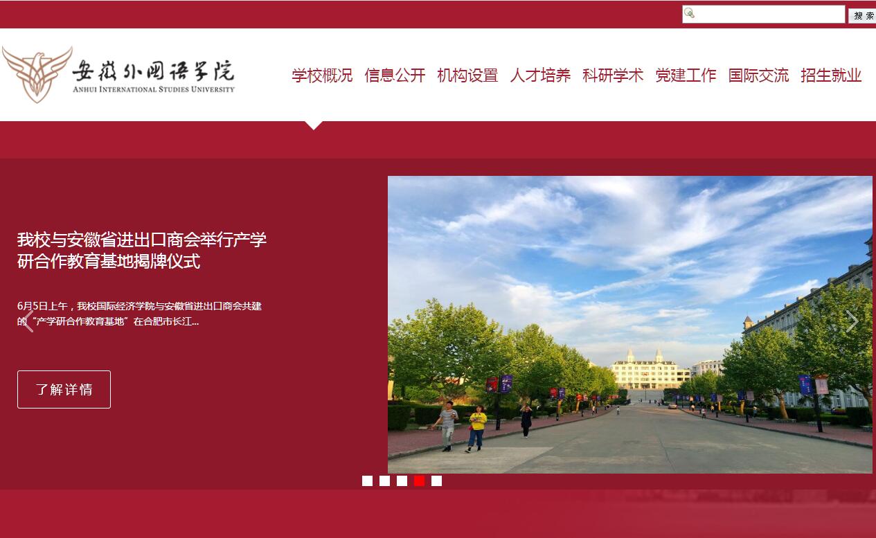 安徽外国语学院是经国家教育部批准设立的全日制普通本科高校,是全国十三所独立设置的本科外国语学院之一,中部地区唯一一所本科外国语学院。学校始创于2002年,2011年经国家教育部批准升格为本科高校,现已发展为一所以涉外经济类、管理类和外国语言类教育为特色的全日制本科高校。学校坐落在风景秀丽的合肥市紫蓬山旅游风景区,占地面积50万平方米,校园内依山临水的自然气息与欧式风情的建筑风格相融合,凸显环境与人文的统一,是一所现代化的花园式学校。学校目前有全日制在校生13000余人。设有国际经济学院、国际商务学院、国际旅游学院、东方语言学院、西方语言学院、艺术与传媒学院、国际教育学院、马克思主义学院、公共外语教学部、公共基础课教学部和信息技术教学与研究部等11个二级教学单位。开设有32个本科专业,中外合作办学专业3个,涵盖文学、经济学、管理学、艺术学4个学科门类,开设有英语、德语、法语、俄语、西班牙语、日语、朝鲜语、阿拉伯语、泰语9个外语语种,是目前安徽省开设外语语种最多的高校,在小语种外语人才培养上具有丰富的办学资源和品牌优势。学校坚持“以师立校,人才强校”战略,现有教职工近900人,其中专任教师中具有硕士、博士学位的教师占比79%,高级职称教师占比约32%,自有专任教师中具有海外学习、工作经历占比21%。学校正在实施“4+1”高层次人才引进计划、“中青年骨干教师培养计划”、教师国(境)外研修计划、应用型教师企事业挂职锻炼培养计划等,为教师发展搭建多维度、多层次的平台,努力为学生的成长成才和学校的建设发展提供强有力的人才保障。目前拥有来自美国、英国、阿拉伯、韩国、日本等国家的外籍教师25名。建校以来,学校致力于探索与实践外向型应用型人才培养体系,全面实施“外语+专业+综合素质”和“专业+外语+综合素质”的人才培养模式,让外语专业的学生具备扎实外语专业知识的同时,比较系统地掌握商务、经济、工商管理和旅游管理等方面的知识;非外语类专业的学生在学好本专业的同时,比较全面地掌握外语应用能力,以满足经济社会发展对多样化复合型应用型人才的需求。建校十五年来,安徽外国语学院累计为社会培养了近二万名优秀的毕业生,毕业生凭借思想品德好,精通外语、听说能力强,懂专业,懂管理,懂礼仪,综合素质高等优势得到用人单位的广泛欢迎,许多毕业生已成为所在单位的骨干力量,其中也不乏创业成功的佼佼者。近几年毕业生就业率始终保持在省内高校前列。学校连续多年被安徽省教育厅授予“安徽省普通高校毕业生就业工作先进集体”称号。学校教学设备先进完备,建有1个省级实验教学中心,配备有同声翻译实验室、语言实验室、语言训练与考试中心、英语自主学习中心、计算机自主学习中心、物流实验实训中心、股票(期货)模拟交易大厅(同步显示全球主要股票与期货市场行情,并能模拟投资)、会计与金融跨专业综合实验室、国际经济与贸易专业实验室、工商管理专业实验室、旅游管理实验室和艺术设计专业实验室等校内实验实训教学场所;还拥有省内一流的多功能学术报告厅,建有大学生创新创业校内孵化基地,同时大力拓展校外教学实习实训基地,为实践教学创造了完备的条件。学校坚持“育无国界”的教育理念,积极推进国际化办学,不断加强对外交流与合作,先后与美国、英国、德国、澳大利亚、俄罗斯、日本和韩国等国家的知名高校签订国际交流合作协议。与澳大利亚拉筹伯大学、日本千叶科学大学、韩国白石大学联合实施的中澳、中日、中韩合作项目的招生纳入国家统招计划。同时,学校积极响应落实国家“一带一路”战略号召,充分利用外语、商务、贸易、经济、旅游和管理等专业教学优势和特色,向社会输出大量“外语水平高,综合能力强,富有敬业精神和创新能力”的应用型人才,特别是德、韩、俄、法、西班牙语等小语种专业人才炙手可热,不少涉外中小微企业提前向学校预定学生。此外,学校还与美国地方政府建立了学生赴美带薪实习的合作关系,先后有数百名学生赴美国实习。学校高度重视创新创业教育,将创新创业系列课程纳入培养方案,将创新创业教育与专业教育相融合,邀请校内外创新创业导师开设创新创业讲座,举办创新创业教育培训班,举办“创新创业活动月”系列活动,在2018年第五届“创新创业活动月”活动中,特别邀请了英雄互娱科技股份有限公司董事、执行副总裁,桔子酒店管理(中国)有限公司华东区发展总经理,杰克缝纫机股份有限公司中央研究院院长等知名企业家来校授业演讲,分享他们的创业成功经验,并担任我校学子创业导师。学校先后被评为“省级大学生创业孵化基地”、“市级大学生创业孵化基地”、“省大学生创新创业示范校”,同时获得“全国民办高校创新创业教育文化建设奖”。学校将一如既往地秉承“以德为先、以生为本、以师立校、面向市场、国际接轨”的办学理念,弘扬“务实求真,思辨尚新”的大学精神和“学兼中外,知行合一”的校训传统,充分发挥体制机制的创新优势,努力将安徽外国语学院建成特色鲜明综合实力强的高水平应用型大学。