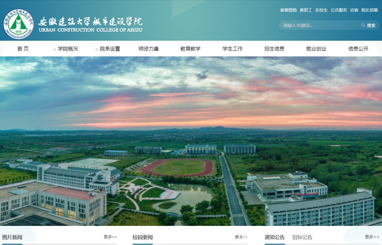 安徽建筑大学城市建设学院是教育部2003年批准成立的本科层次全日制独立学院(批准文号:教发函{2003}541号)。学院新校区位于“大湖名城”——合肥市黄麓科教园区,环巢湖旅游景观大道旁,占地规划面积990亩。校园内典型的徽派建筑与小桥流水融为一体,校园外天高云淡与碧波荡漾交相呼应。学院荣获“合肥市文明单位”荣誉称号。学院设有土木工程系、建筑与艺术系、机械与电气工程系、管理工程系以及基础部等四系一部共22个本科专业,涵盖工、管、艺三大学科门类。现有全日制本科在校生7000余人,教职工300余人。其中,具有副高级以上专业技术职称的占36.5%、硕士及以上学位教师占92.6%,拥有省级教学名师3人,省学术与技术带头人10余人。学院现有结构实验室、环境工程实验室、土力学实验室、建筑模型实验室、建筑材料实验室、测试实验室、电路实验室、数模电实验室、信号系统实验室、金工实验室、材料力学实验室、工程热力学实验室、大学物理实验室、暖通空调实验室、EDA技术实验室、智能建筑实验室等30多个教学实验室。教学科研仪器设备资产总值2745.39万元,图书馆纸质图书与电子图书180万册。学院以“土建”类学科为办学特色,以培养高级应用型人才为目标,面向市场,独立办学,突出特色,注重质量。遵循“以人为本”的教育思想,实施“名师”、“优师”工程,坚持“以培养学生为根本”,把教书育人、管理育人、服务育人落实到学院的各项工作之中。学生在全国大学生金融精英挑战赛、大学生金融虚拟仿真投资大赛、“挑战杯”大赛、大学生职业规划设计大赛、大学生校园文学原创新星大赛等比赛中荣获众多表彰和奖励。学院对学业期满且成绩合格的学生,颁发安徽建筑大学城市建设学院本科毕业证书,对符合条件的学生颁发学士学位证书。目前,学院紧抓高等教育的发展机遇,深化改革,提高质量,加快发展,努力将安徽建筑大学城市建设学院建设成一所特色鲜明、规模适度、结构合理、质量优良的应用型本科院校,为国家经济建设培养具有创新精神和实践能力的高级应用型人才。
