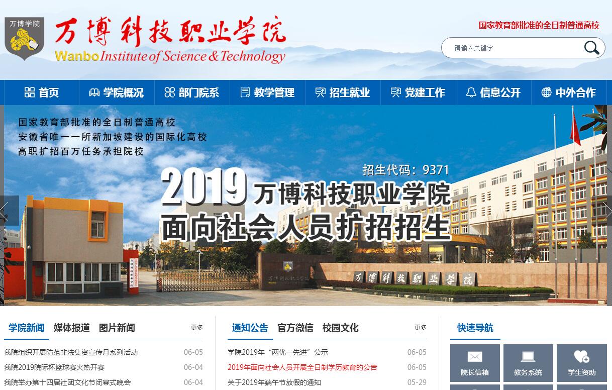 万博科技职业学院始建于2000年6月,是经安徽省人民政府批准、国家教育部核准的面向全国招生的全日制普通高校。学院坐落于安徽省省会合肥,拥有本部校区和新桥校区两大校区,交通便利,环境优越,总占地面积近800亩,总建筑面积超58万平方米。将逐步形成“一校两区”新格局,新桥校区建成后,可容纳在校生超2万人,为学院升格为本科层次普通高校奠定坚实基础。学院在办学历程中,坚持“万众一心,博采众长”的校训精神,以广阔的胸襟,以国际化的视角,开辟出一条特色办学之路,并取得了丰硕成果。2005年12月,安徽首家通过“高职高专院校人才培养工作水平评估”并取得“优良”成绩;2008年,新加坡莱佛士教育集团投资举办,学院引入国际化教育资源;2012年12月,批准成为安徽省自主招生改革试点高校之一;2013年3月,经安徽省教育厅批准,与新加坡莱佛士高等教育学院正式开展中外合作办学项目;2017年11月,学院新桥校区开工建设,“一校两区”新格局日渐成熟。学院下辖管理分院、财经分院、理工分院、艺术分院、国际合作办学项目、继续教育部等教学单位,是以经贸类、管理类为主,经、管、理工、教、文化、艺术等相互渗透协调发展的学科专业体系,涵盖48个国家计划统招专业。现拥有各类在校生5000余人,教学实验室38个,实习实训基地26个,图书馆纸质、电子图书80.5万册。学院坚持以地方经济建设和社会发展需要为导向,以技能型、创新型复合人才培养为主线,不断调整和优化专业结构,拓宽专业口径,深化学科专业内涵建设,现有企业品牌与形象设计、Visual Basic 程序设计等省级精品课程,人才培养质量不断提高,办学特色进一步凸显。学院高度重视师资队伍建设,夯实基础,励精图治。现任院长王士明,曾任安徽建筑大学专任教师、纪委书记、党委副书记,有着近40年丰富的高等院校的教育教学管理经验。学院汇聚了来自中国科技大学、合肥工业大学、华东师范大学、安徽大学、安徽师范大学、合肥师范学院、中科院合肥分院等一批资深教授、骨干教师以及新加坡莱佛士教育集团的国际师资队伍,组成了一支以中青年为核心骨干力量的教学和管理队伍,形成了一套完备的、国际化的教学质量管理体系。与此同时,学院高度重视仪器设备、图书资料、校园环境等硬件设施的投入,并不断创新人才培养和就业推荐模式,产教融合,开展高层次的校企合作,与世界500 强企业或知名企业加强合作与交流,为学生提供更高的学习和就业平台,使学院就业形势一直保持良好态势,历届毕业生受到用人单位的欢迎,多年来就业率均达到95% 以上。自新加坡莱佛士教育集团投资举办以来,依托集团的优质教育资源,万博科技职业学院积极实施“品牌战略”、“国际化战略”、“差异化战略”,继续在教育管理、课程体系、人才培养模式等方面不断创新,国际化办学进程不断加快,不断凝练办学特色,力图以国际化的视野,全面提升人才培养质量和教育品牌形象,着力培养综合素质高,具有国际视野、创新创业能力强的应用型人才。18年栉风沐雨,18年春华秋实,万博科技职业学院在努力提高社会影响力和知名度的同时,全力推进教育国际化转变的进程,矢志不渝地书写教育事业更加辉煌灿烂的明天!