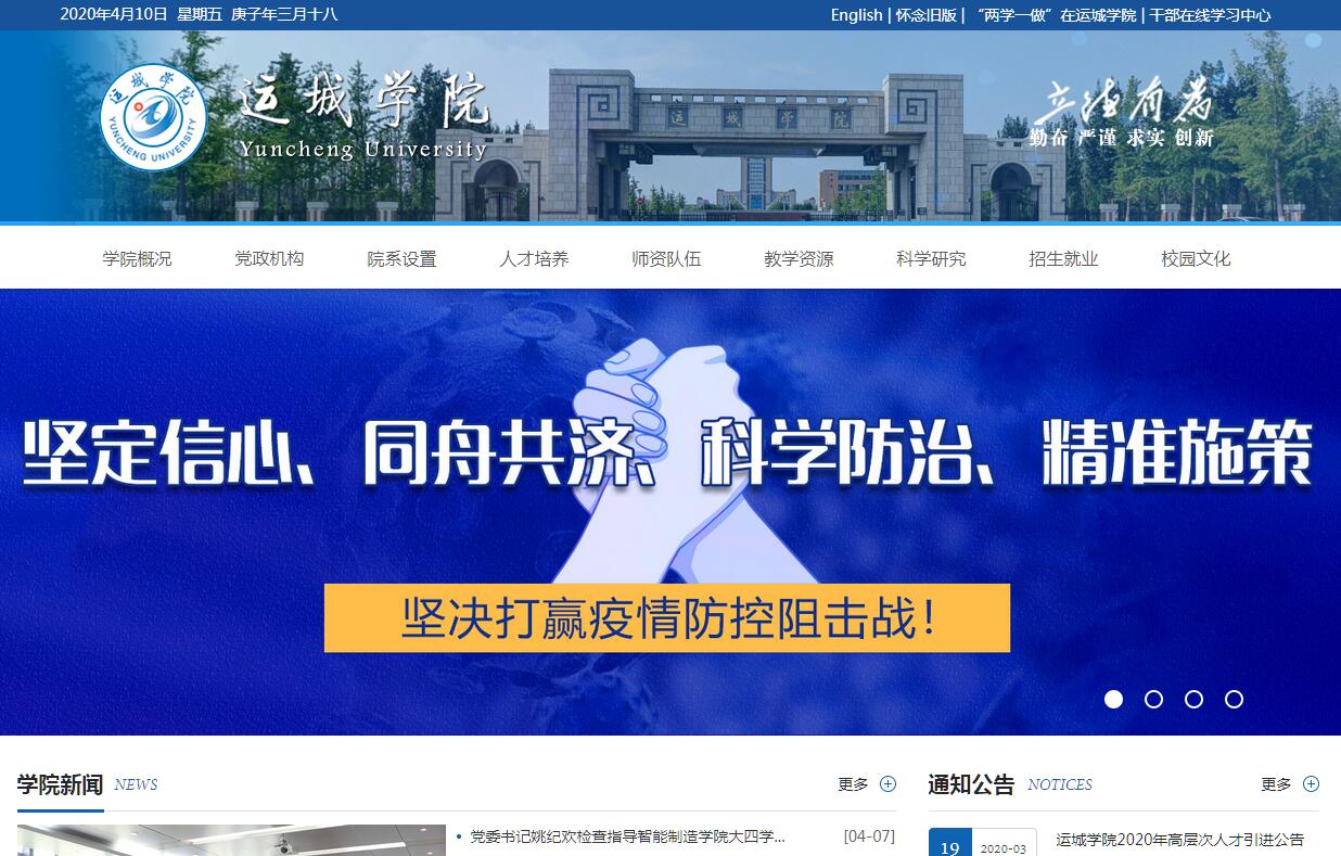 运城学院坐落于中华文明重要发祥地---山西省运城市,前身为始建于1978年的运城师范专科学校。1989年12月,经国家教委批准,山西省人民政府决定,由运城师范专科学校、运城教育学院、河东大学三校合并组建运城高等专科学校。2002年2月经国家教育部正式批准成立运城学院。春风化雨、润物无声,建校以来始终秉承“立德有为”校训,大力弘扬自强不息、艰苦奋斗、精益求精、追求卓越的精神,为地方经济社会发展做出了重要贡献。学校现设有17个教学科研单位,52个本科专业,涉及经济学、法学、教育学、文学、历史学、理学、工学、农学、管理学、艺术学等10大学科门类,拥有2个国家级特色专业建设点,1个教育部地方高校本科专业综合改革试点专业,5个省级特色专业建设点,2个省级优势专业建设点,1个省级人文社科重点研究基地,1个山西省“1331工程”重点学科建设计划优势特色学科,1个省级重点扶持学科,1个山西省高校重点实验室。学校占地面积3089亩,建筑面积60.34万平米,固定资产总值11.4亿元,教学仪器设备总值1.7亿余元,馆藏纸质图书168.3万册,电子图书44.5万册。现有全日制普通本科在校生20900余人。学校现有教职工1189人,其中专任教师917人,具有博士学位教师127人,具有硕士学位教师577人;有正高级职称41人,副高级职称247人,博士、硕士研究生导师47人。有全国优秀教师1人,享受国务院特殊津贴专家1人,山西省教学名师8人,山西省学术技术带头人3人,山西省高等学校优秀青年学术带头人4人,山西省高等学校“131”领军人才优秀中青年拔尖创新人才9人,山西省优秀教师6人,山西省模范教师4人。先后聘请山西省高等学校“131”领军人才特聘教授10人,其中中国工程院院士1名、具有国内领先水平的知名学者、学术带头人8人、优秀中青年拔尖创新人才1人;山西省“百人计划”特聘专家1人,外聘学科专业带头人22人。工商管理教学研究创新团队入选了“1331工程”重点创新团队建设计划。物理与电子技术实验实践教研室荣获“山西省普通高校优秀教学团队”称号。学校坚持以教学为中心,不断深化教学改革,人才培养质量稳步提升。近年来,学生在全国大学生数学建模竞赛、计算机设计大赛、广告艺术设计大赛、机械创新设计大赛、机器人大赛等赛事中获得国家级奖励280余项。教师承担纵向省级及以上科研项目407项,其中国家自然科学基金23项,国家社科基金5项,教育部人文社科项目9项。学校不断拓宽开放办学之路,先后与美国、德国、英国、俄罗斯、澳大利亚、韩国的24所高校签订合作协议,与波兰、韩国、马来西亚、俄罗斯的6所大学开展交换生项目,在泰国建立汉语实习基地,与韩国高水平大学联合培养硕士。与中国电子电路行业协会共建“电子电路技术学院”,与山西亚宝药业合作举办“特殊医用食品班”,与运城制版集团等90多家行业企业积极开展产学研合作。近年来,校党委和行政带领广大师生,抢抓机遇,深化改革,开拓前进,先后荣获“暑期社会实践活动全国先进单位”、“山西省党建和思想政治工作先进高校”、 “山西省大学生思想政治工作先进集体”、“山西省模范单位”、“山西省文明学校”、“山西省创新创业教育试点校”、“省级园林单位”等荣誉称号,赢得了良好的社会声誉。展望未来,运城学院将以党的十九大精神和习近平新时代中国特色社会主义思想为指引,进一步贯彻落实省委省政府、省高校工委、省教育厅安排部署和我校二次党代会精神,以服务地方经济社会发展为基本导向,以应用型人才培养为根本任务,坚持“一个方向,两手抓”办学治校总方略,坚持“三步跨越、四方针”改革发展新理念,坚持“五个布局、六计划”贯彻落实新举措,突出彰显河东文化特色,重点发展理工产教融合和特色师范教育,锐意进取、苦干实干,为建设特色鲜明的高水平应用型地方本科院校而努力奋斗!运城学院正以崭新的姿态,昂首迈向更加辉煌的明天!