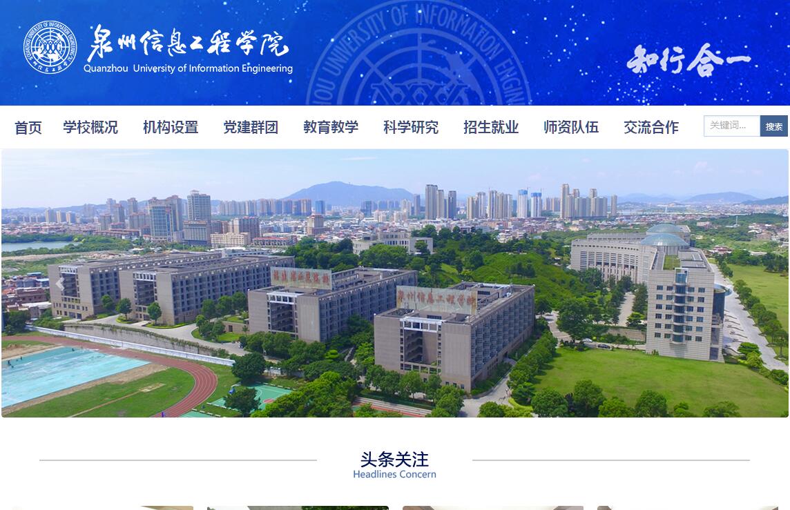 泉州信息工程学院是在2002年创办的泉州信息职业技术学院的基础上、2014年经国家教育部批准建立的全日制应用型本科院校。学校地处国家首批历史文化名城、东亚文化之都、海上丝绸之路起点—泉州市市区,与风景秀丽的国家5A级清源山景区、中国闽台缘博物馆、泉州博物馆、西湖公园相隔咫尺。学校建设园林式校园,四季飘香,开窗即景,古树名木随处可见,校园绿化率70%以上,是“泉州市最美单位庭院绿化”。学校占地面积894.2亩,建筑面积29.33万平方米。学校坚持“面向产业、服务地方”,“以工为主、工贸结合”,以工学为主体,以先进制造、电子信息、软件工程为特色,工学、管理学、经济学、艺术学各学科协调发展;工科类专业占比70%;下设电子与通信工程学院、机械与电气工程学院、软件学院、创意设计学院、土木工程学院、经济与管理学院、马克思主义学院等7个学院及通识教育中心。学校坚持非营利性办学宗旨,秉承“知行合一”校训,坚持“立德树人、质量立校”,着力构筑四轴联动、产教融合的应用型创新人才培养平台,将创新创业教育融入人才培养全过程,致力于培养“实基础、强能力、能创新、高素质”的应用型人才。学校在校内建设了省级高校重点实验室3个、省高校研究中心3个等科技创新平台以及包括中央财政、省财政支持和与企业共建的11个实训基地(其中中央财政支持的实训基地4个、省财政支持的实训基地2个、省财政支持的生产性实训基地4个)、95间实验实训室(区),仪器设备价值近1亿元人民币;与德国博世力士乐(中国)公司、中兴通讯股份有限公司、南威软件股份有限公司、嘉泰数控科技股份公司、北京建工新型建材有限责任公司等118家企业共建校内外实习实训基地,牵头组建了泉州信息、机械2个职教集团;在泉州江南高新技术产业园、厦门软件园等科技园区自主建设研发(实训)基地。此外,还建有近万平方米的大学生创新创业(孵化)基地,构筑“校中厂”、“厂中校”、“园中校”和“孵化器”四轴联动的应用型、技术技能型创新人才培养平台。近几年学生参加全国、全省各类大赛共754人次获282个奖项。学校教育教学成绩显著,学校目前建成六个专业群,其中省级示范性应用型专业群2个;拥有高校服务产业特色专业3个,省级创新创业教育改革试点专业5个,福建省应用型学科3个。学校先后取得国家教育学成果二等奖一项、福建省教学成果特等奖2项、一等奖1项与二等奖3项,福建省高等教学团队、福建省精品专业、精品课程、福建省服务产业特色专业、创新创业教育改革试点专业、精品资源共享课程等一批教学质量与教学改革工程成果。学校获得“福建省毕业生就业工作先进集体”荣誉称号,人才培养质量得到社会赞誉和用人单位广泛好评,毕业生就业率近8年均保持在98%以上。用人单位普遍认为我校毕业生转换角色快,工作岗位适应性强,善于将所学的知识应用到实际工作中;具有较强的实践动手能力、自主学习能力、创新创业能力和良好的发展潜力。学校坚持开放式办学,重视学科专业国际化和人才培养国际化,确立国际化应用型办学定位。目前已与多个国家和地区的30多所高校建立了合作交流关系,实现高层互访、师资共享、升学读研、师生访学、短期交换、学术科研合作等多方面、多层次、多形式、多领域的对外合作交流,引进和共享优质的国际教育教学资源。与美国、德国、乌克兰、台湾等地区多所知名高校开展“4+0”“3+1”“2+2”及“3+2”等联合培养模式,选拔本科毕业生赴境外攻读专业硕士学位,实现“本硕连读”。泉州信息工程学院成长在泉州的文化沃土上,洋溢着泉州的蓬勃朝气,承载着区域经济的发展使命。学院将以建设高水平应用技术大学为目标,全面提升办学水平,努力开创更加辉煌灿烂的明天。