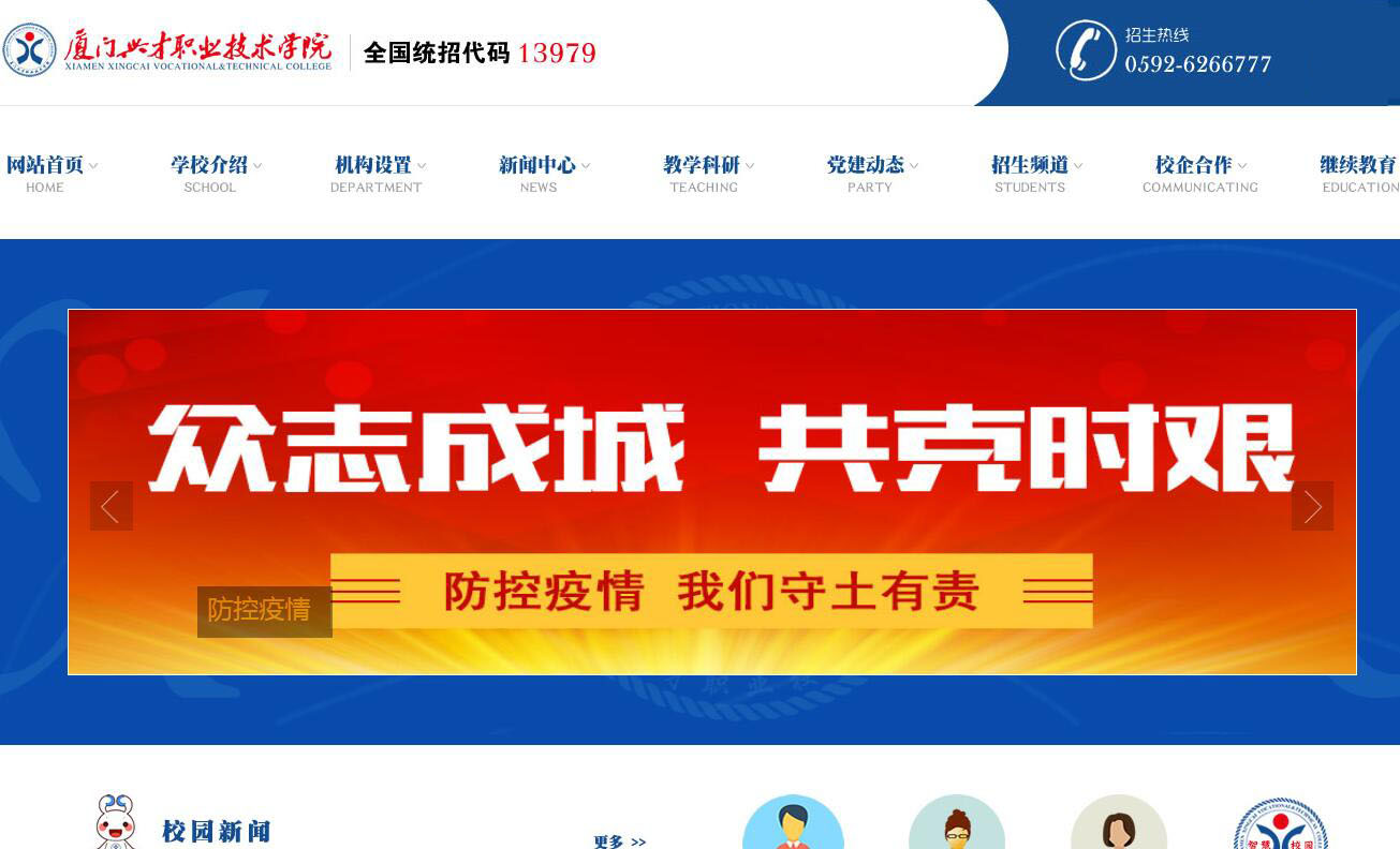 厦门兴才职业技术学院创始于1983年,是经福建省人民政府批准、教育部备案,纳入全国高考统一招生计划,具有独立颁发国家学历文凭资格的全日制普通高等学校。2018年4月顺利通过“高等职业院校人才培养工作二轮评估”,并得到评估专家充分肯定和较高评价。学校先后获得“全国民办教育百强学校”、“社会力量办学先进单位”、“社会满意单位”,被厦门市授予“平安先行学校”、“综治安全目标管理先进单位”、“2017年市民最喜爱的厦门职业院校”。学校地处厦门市集美文教区(厦门软件园三期核心区域),毗邻厦门高铁北站,与集美大学、华侨大学厦门校区、厦门理工学院等多所高校比邻而居。学校以全日制高等职业教育为主,学历教育与非学历教育相结合、全日制教育与继续教育相结合、国内培养与境外联合培养相结合。同时,面向社会积极开展各种类型的职业技能培训和职业资格鉴定,开展多种形式的职业技术教育。学校面向全国招生,招收高考统招、闽台教育交流、自考、成考、合作办学等各类别考生(均为全日制),现有全日制在校生6000多人,教职工300多人。教师中拥有省级教学名师和省重点大学教学名师,高级职称者占30%,多数教师具有硕士及以上学位,“双师素质”者占80.6%。学校目前下设经贸学院、工学院(含信息学院)、艺术与建筑学院、教育学院和思政教研部、基础教学部等六个教学单位,开设学前教育、软件技术、通信技术、数控技术、会计、酒店管理、建设工程管理、建筑室内设计等25个适应海西和厦门市社会经济发展需要、与产业对接、市场紧缺的热门专业,形成了软件信息类、建筑工程类、经管商贸类、艺术设计类等专业群。同时设置与福建师范大学、华侨大学、集美大学联办的9个专本同读专业。学校建有数控实训中心、PLC与单片机实验室、电子商务实训室、会计电算化实训室、企业经营管理沙盘模拟实训中心等100个实训室和校内生产性实训基地。学校始终坚持“以德为先、以生为本、特色兴校、质量强校”的办学理念,现有中央财政支持实训基地2个、省教学成果一等奖1个,省教学成果二等奖2个,省财政支持实训基地1个、省级高职示范专业2个、省级服务产业特色专业群1个,省教育改革试点项目3个、省高等学校教学改革研究项目2个、省级创新创业教育改革试点专业4个、省级科研项目63个、市级重点专业3个、市教学改革综合试验项目1个、市级科研项目12个。近几年在福建省教育评估中心发布的全省高职院校发展潜力报告中,学校在“发展质量”一级指标的得分位居全省高职院校前列。学生职业技能显著增强,2015、2016、2017、2018连续四年在全省高职技能大赛中获佳绩,位列全省民办高职院校前茅。其中国家级奖3项,省级一等奖9项,二等奖33项,三等奖59项,市级一等奖16项,二等奖18项,三等奖28项。在2018年厦门市高职院校技能竞赛中,我校荣获团体一等奖,并获得5个一等奖,8个二等奖、8个三等奖。同时,我校还成功承办了其中的“市场营销”、“计算机网络应用”和“建筑工程识图”三个赛项。学校学生综合素质高,校校企合作、就业服务工作到位,兴才历届学子都具有较高的社会认可度和较强的就业竞争力,近5年来毕业生就业率均高达98%。学校始终坚持以“立德树人”为根本的育人理念,以时代精神和社会主义核心价值观引领大学生思想政治教育工作,把思想政治工作贯彻教育教学全过程,力求把学生培养成“有理想、有本领、有担当”的时代新人,具体形成了——“以‘大学生文明修身’为主线,以孝亲感恩教育活动、大学生导师制、‘快乐学习·快乐生活’团日活动和青年志愿者服务为四大载体”的“大学生文明修身工程”育人体系。近年来,我们的文化育人成效显著,获得了社会广泛一致好评。其中“‘亲情账·两地书·话人生’孝亲感恩主题教育活动”获首批省大学生思想政治教育创新示范项目、省高校校园文化建设优秀成果三等奖、省高校思想政治教育研究会年会三等奖;“‘厦门兴才学院-新村小学’青工子女服务站”项目入选厦门市“一团一品一特色”十佳项目和省高校校园文化建设优秀成果三等奖;《践行社会主义核心价值观,构建“大学生文明修身工程”育人新体系》荣获福建省2018年职业教育省级教学成果奖二等奖。“十三五”以来,学校实施了“引企入校”行动计划。引入“厦门精佳工贸有限公司”整体进驻,校企共建“机电一体化”和“数控技术”专业;与著名科技创新型龙头企业“中兴通讯”签署校企深度合作战略协议,双方共建二级学院“兴才学院--中兴通讯信息学院”并设立“通信技术”专业;“厦门中国青年旅行社”在学校设立分支营业机构“畅途旅游工作室”,校企共建“酒店管理”专业; “九牧厨卫股份有限公司”在学校设立客户服务中心,校企共建“电子商务”和“市场营销”专业;“厦门泛钛室内设计有限公司”在学校设立工作室,校企共建“建筑室内设计”专业。“引企入校”的新进展,有力地推动了学校产教融合、校企合作进入一个更深更高的层次,使专业融入产业,课程对接岗位,教学贴进生产,校企协同育人真正得以实现。以学校和中兴通讯共建“通信技术”专业为例:校企双方共同制定专业人才培养方案,共同开发课程和教学资源库,重点构建以工作岗位实际